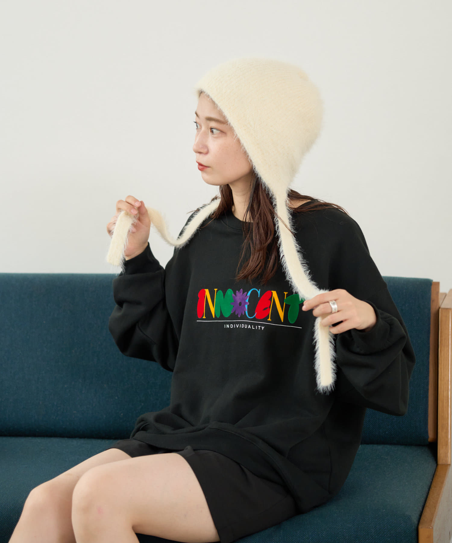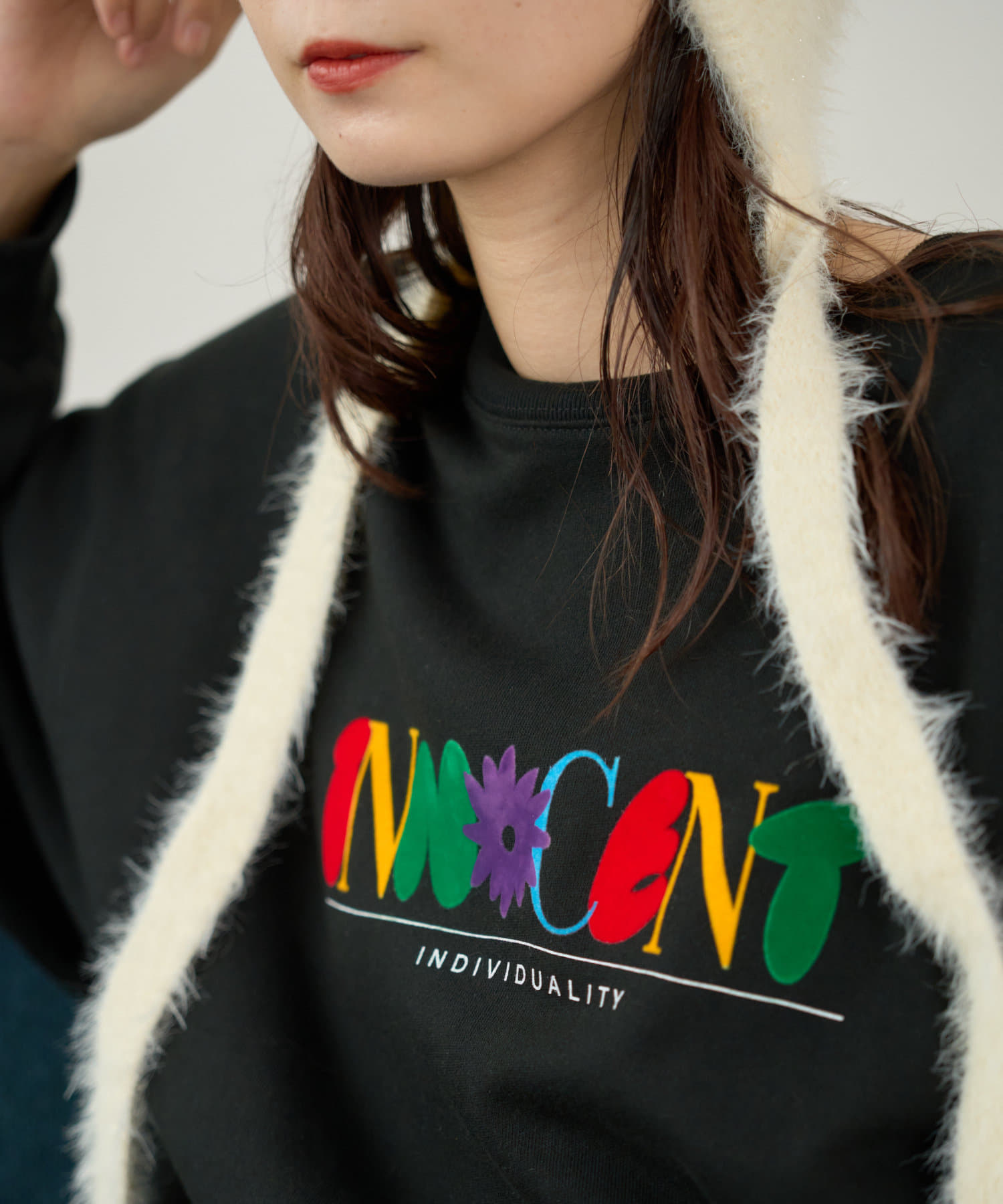 「INNOCENT INDIVIDUALITY」がグラフィックになったスウェット。