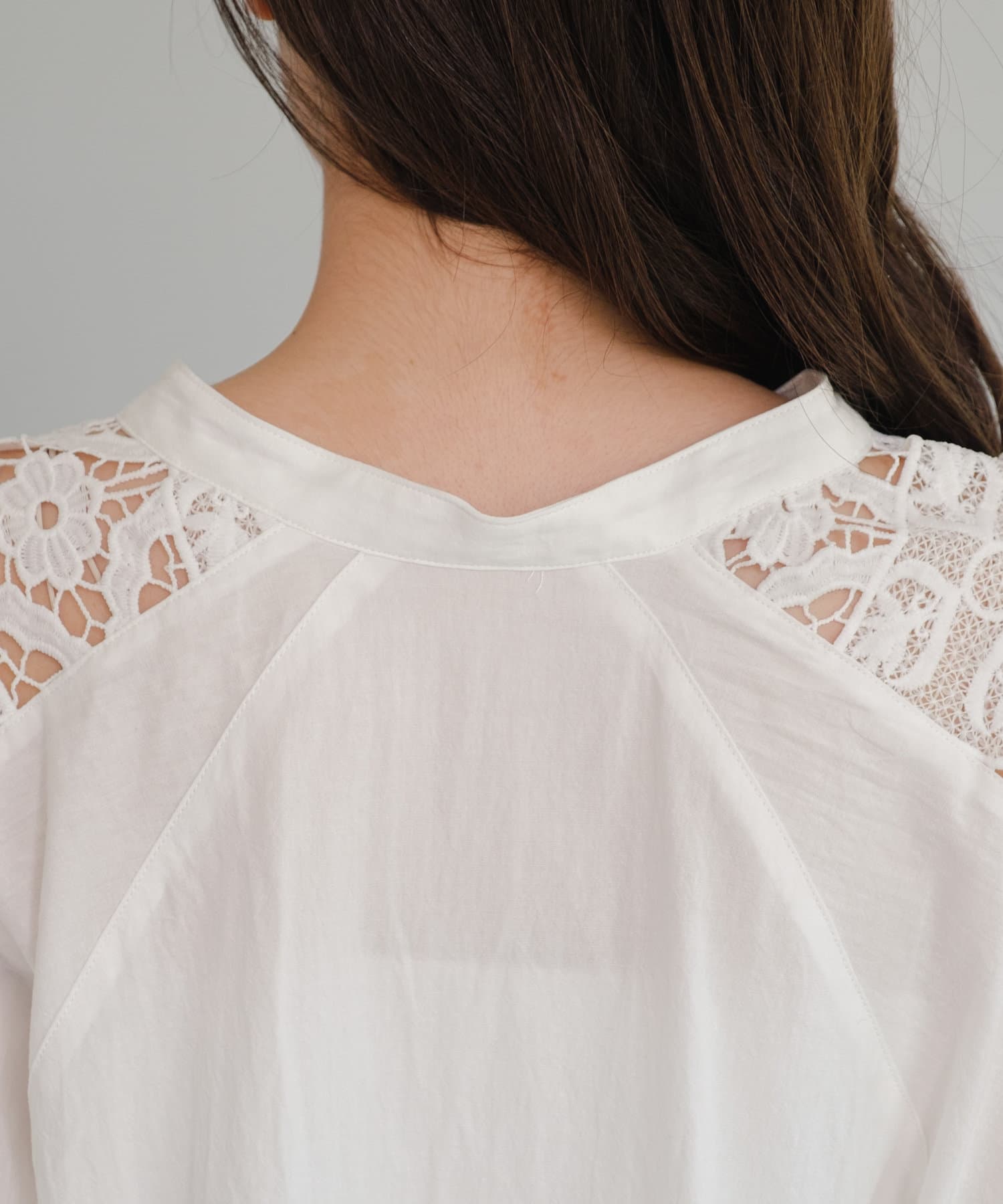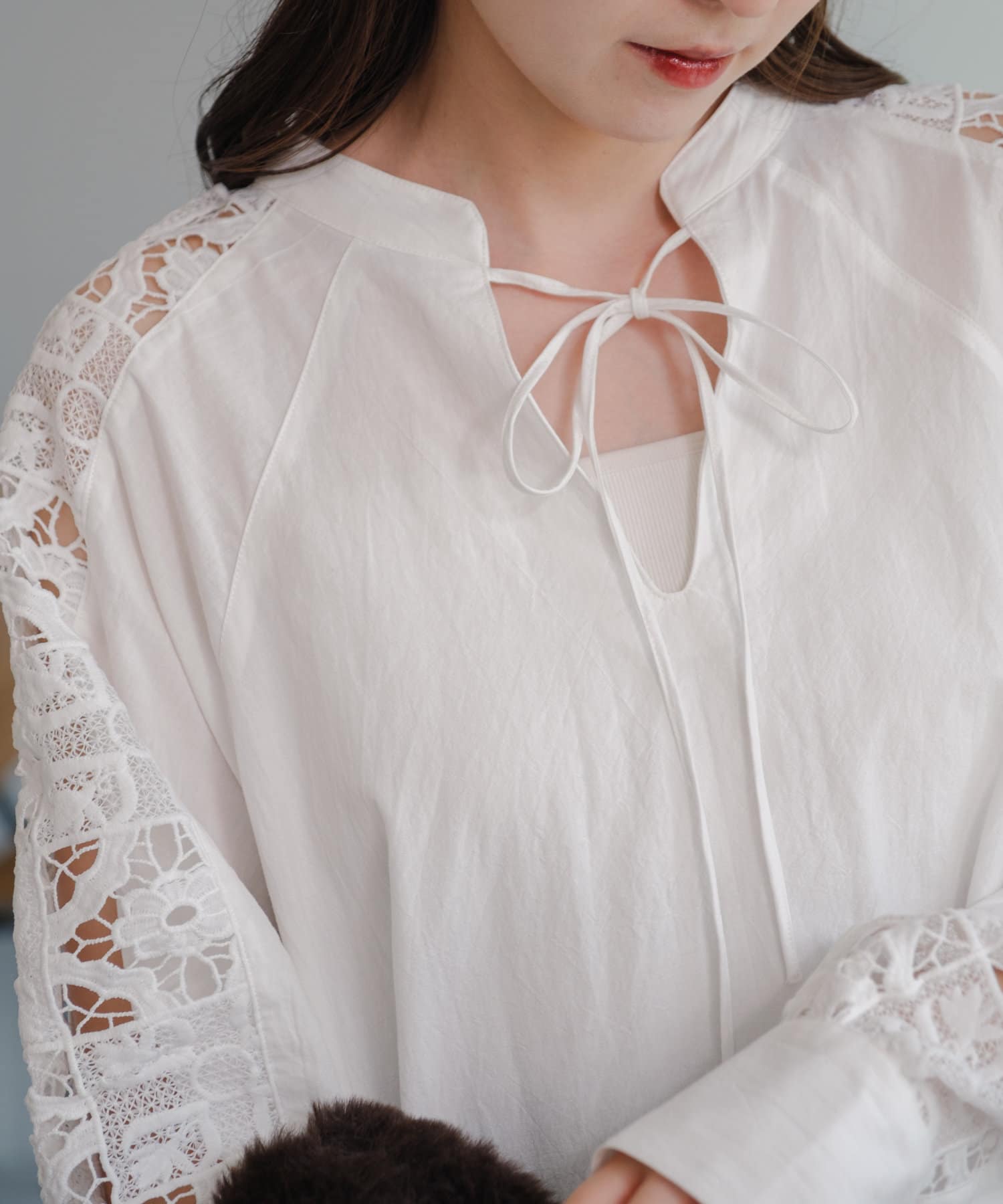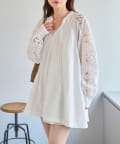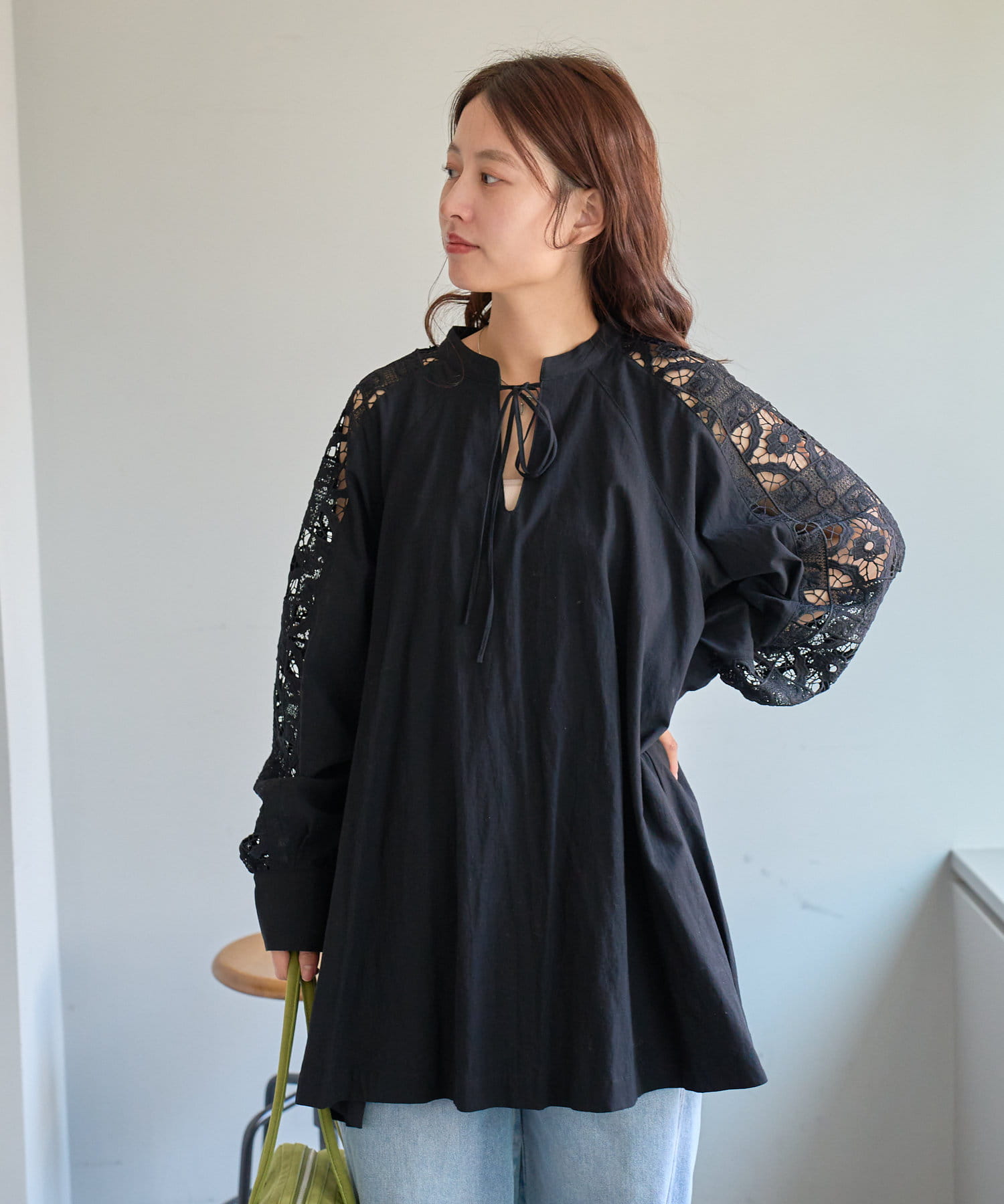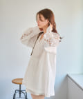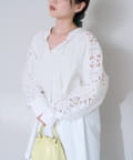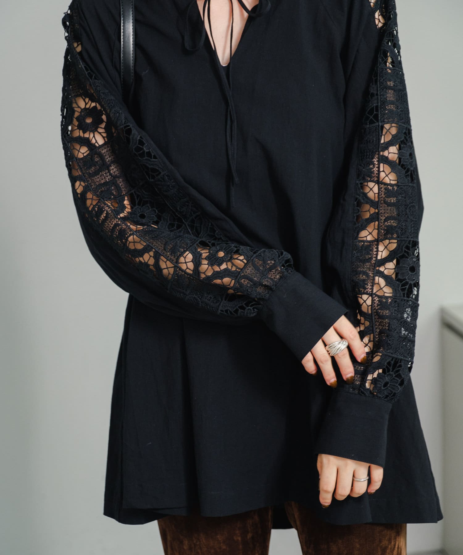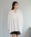肩から袖にかけてのレースが印象的なチュニック。