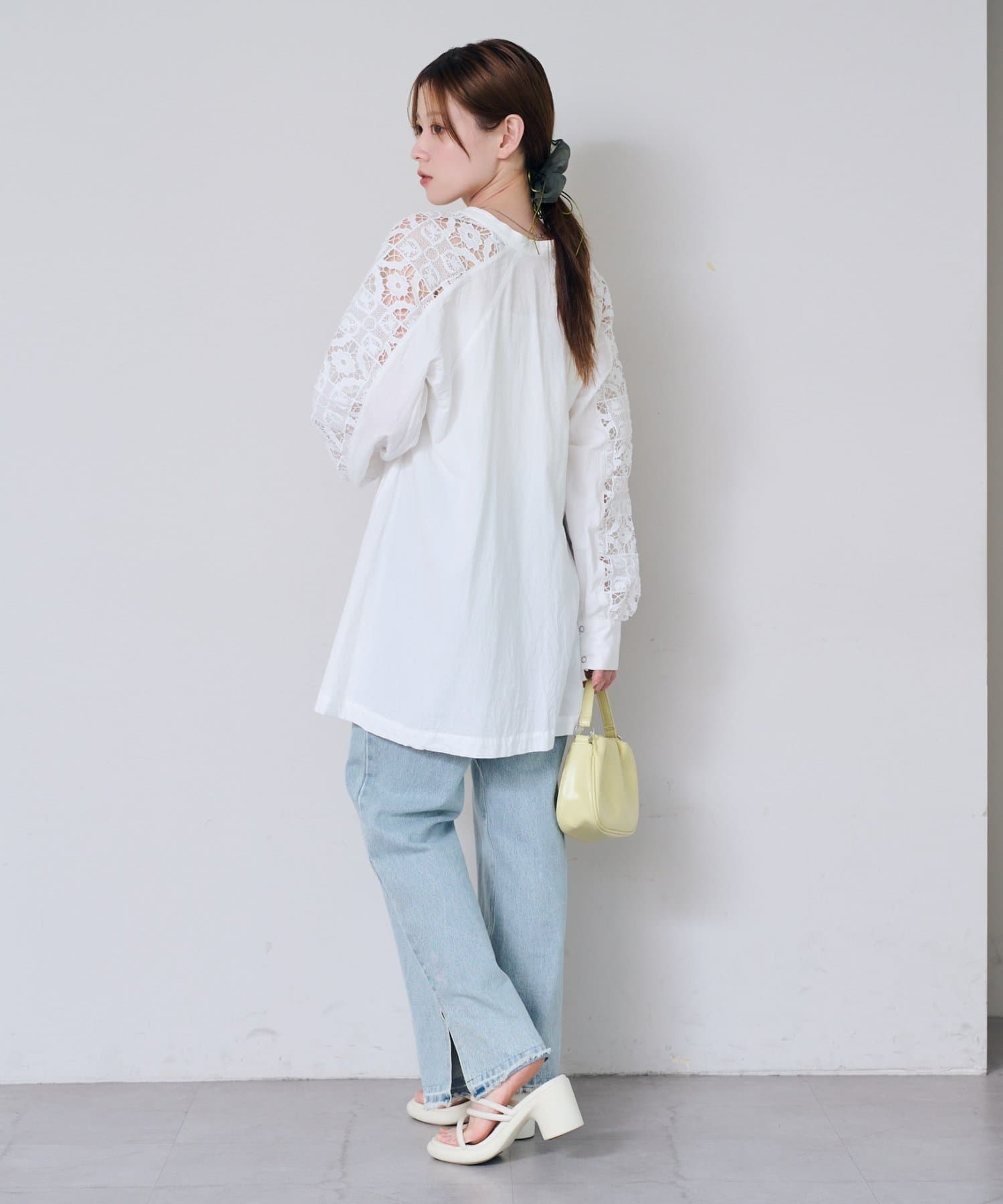 袖レースクロップドシャツ