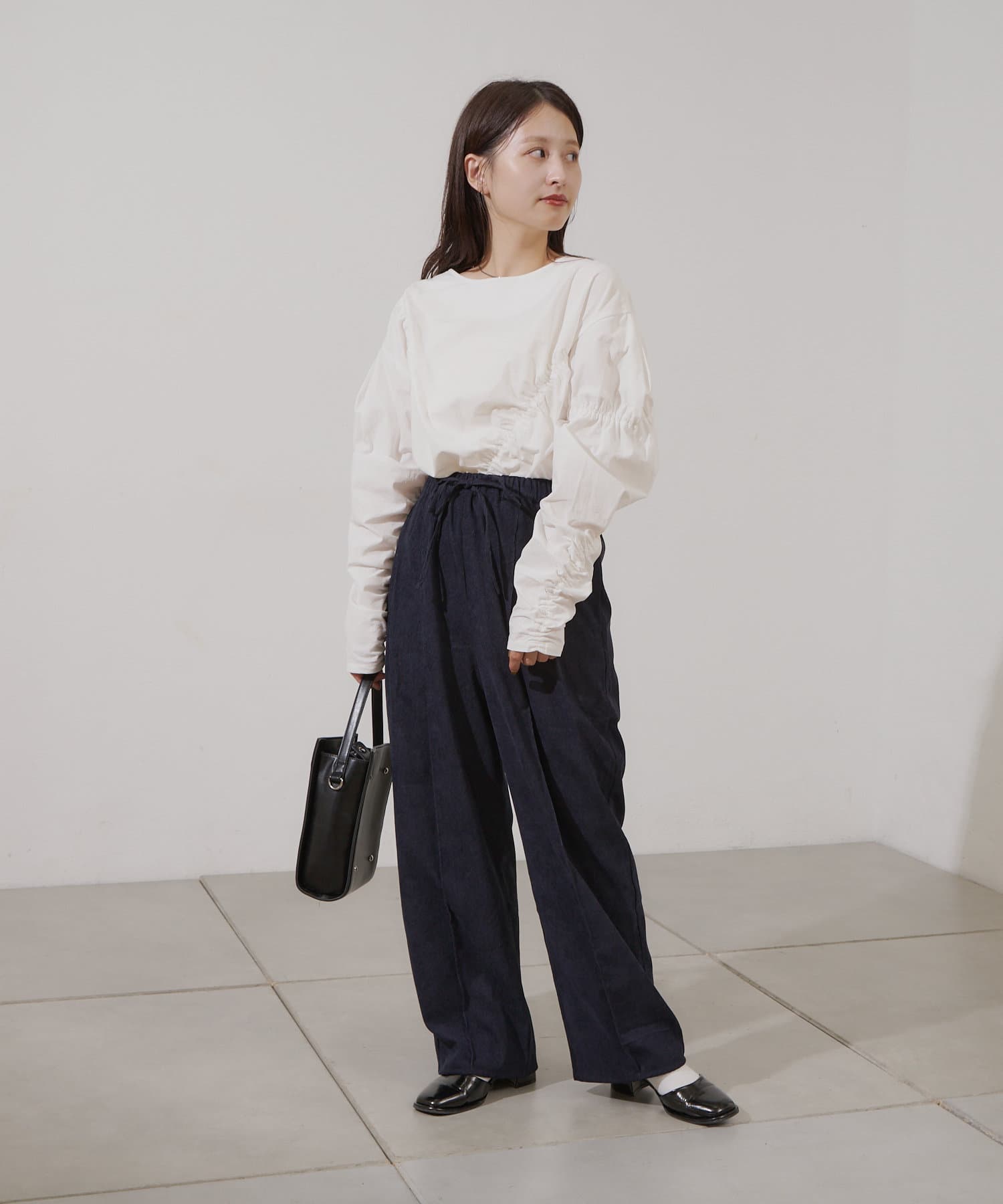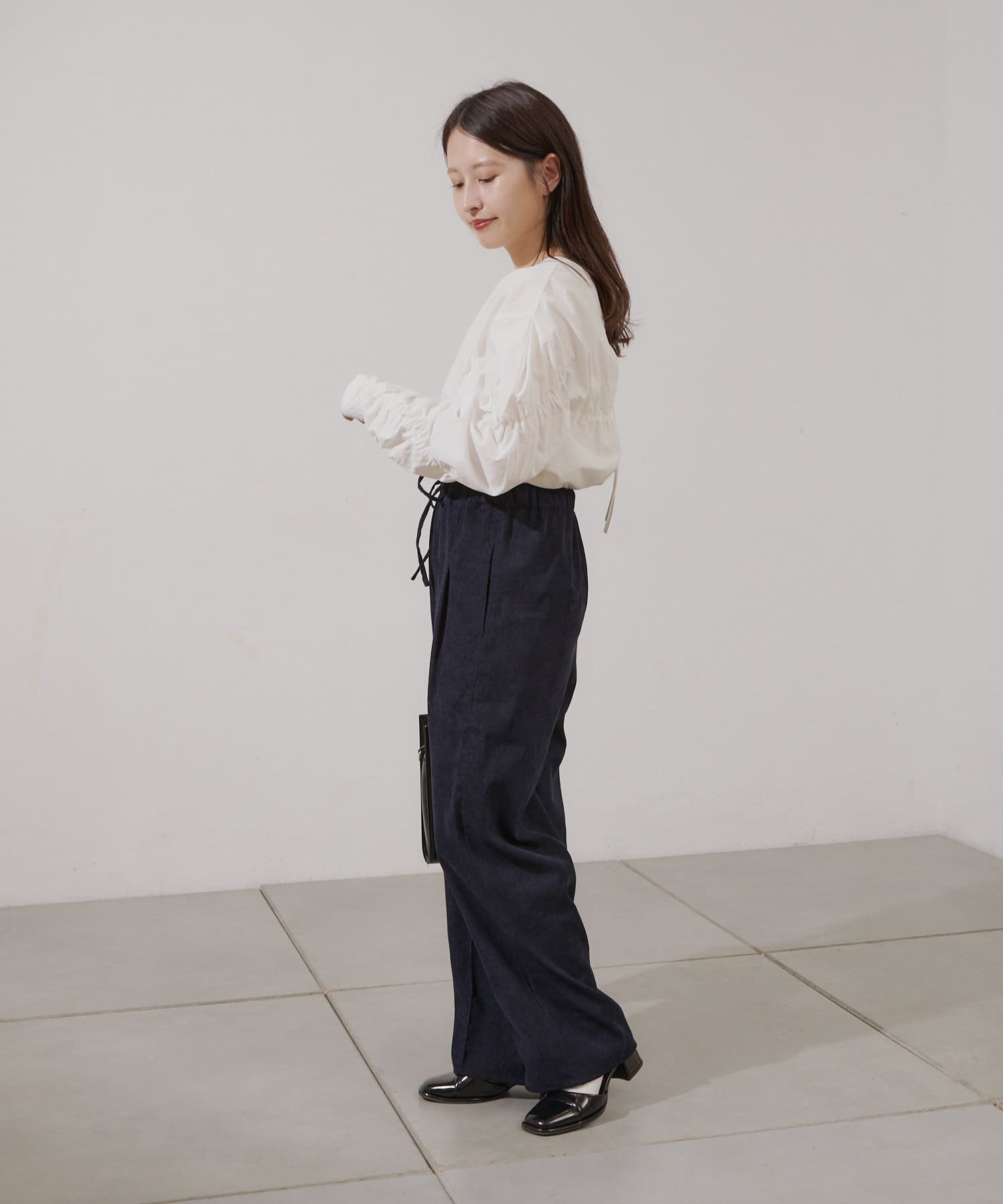 太めのパンツですが、ストンとしたシルエットなのですっきり見えます。
