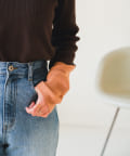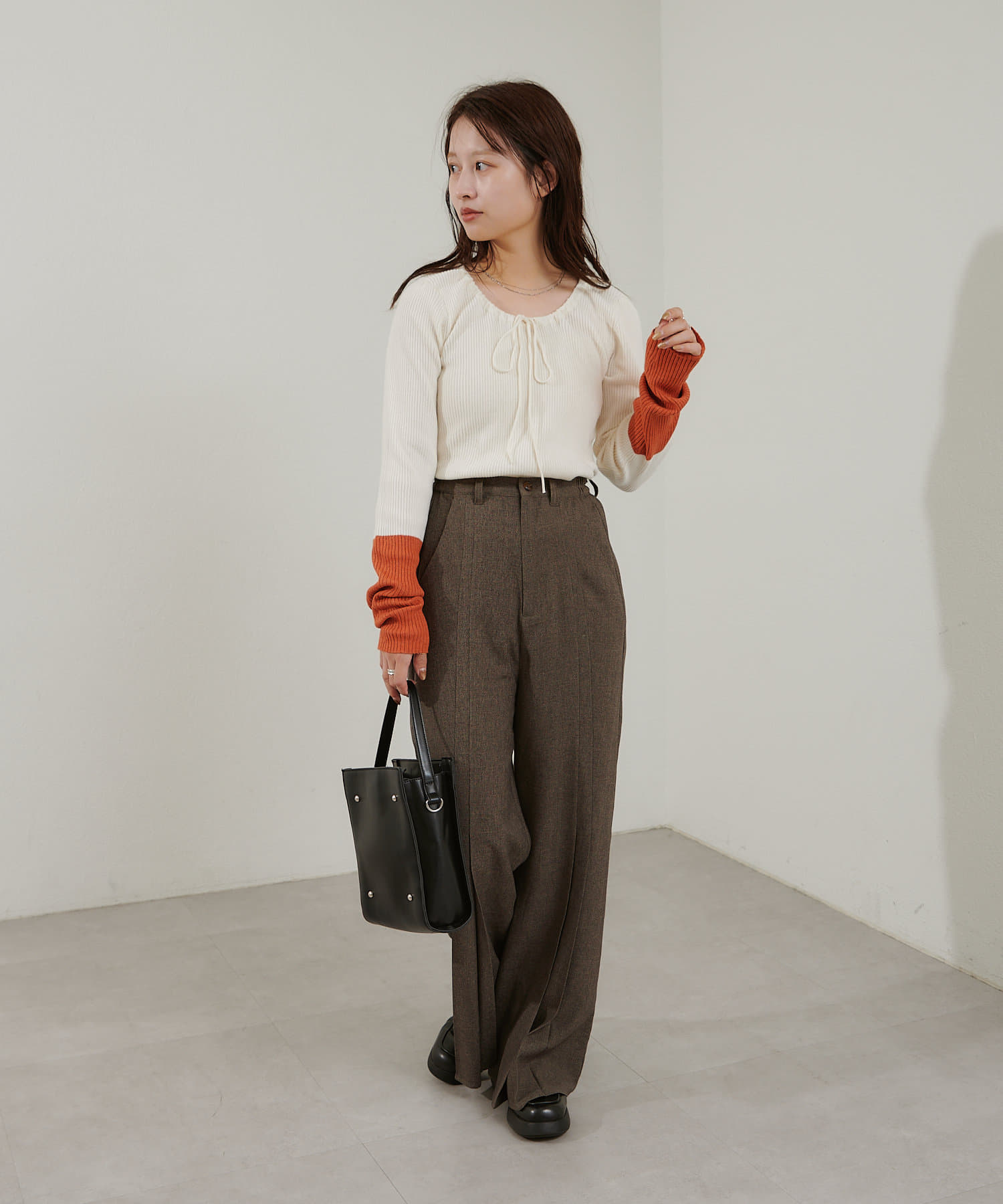 アウターやカーディガンから袖口の配色を少し見せて着用するのがオススメ。