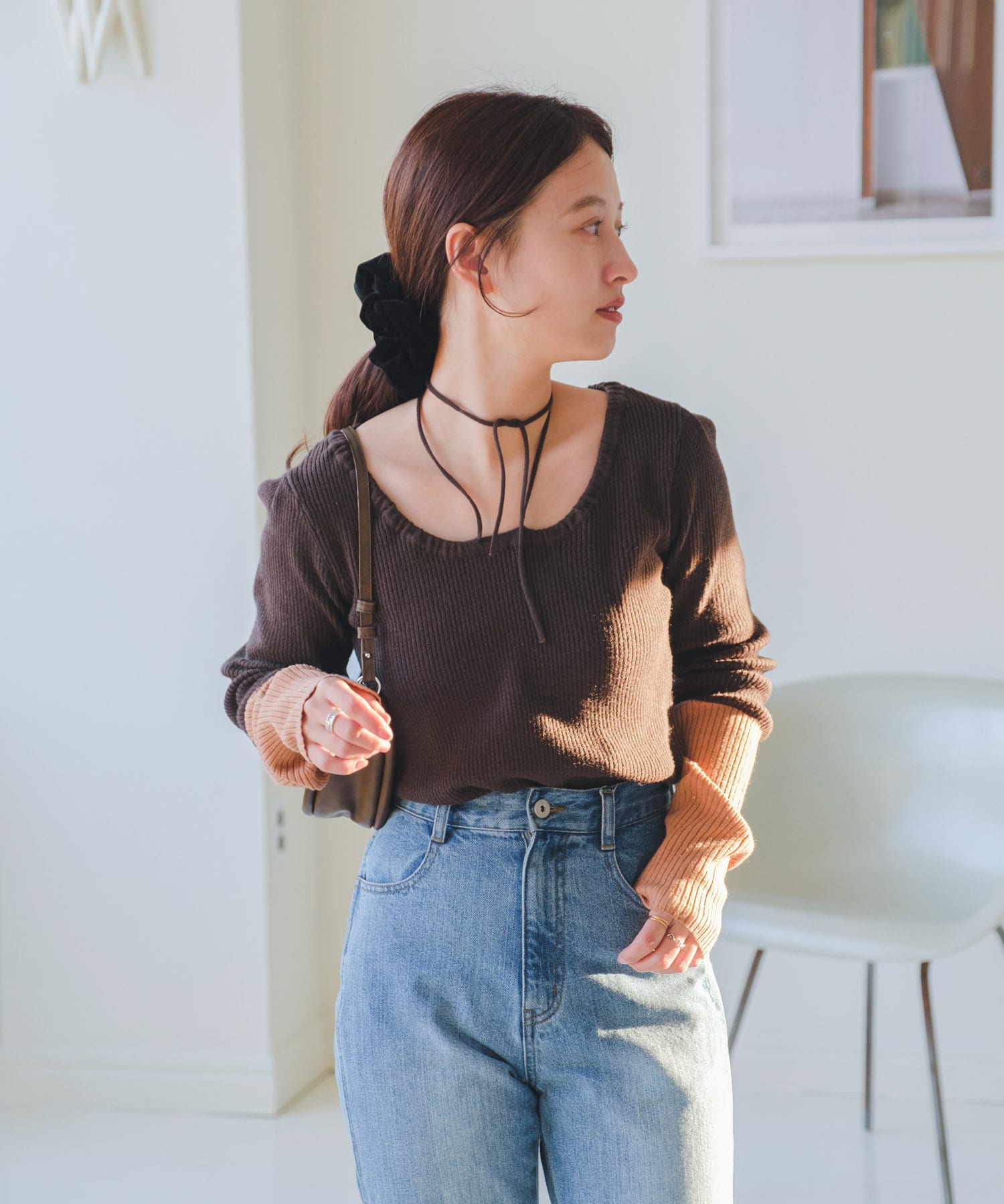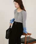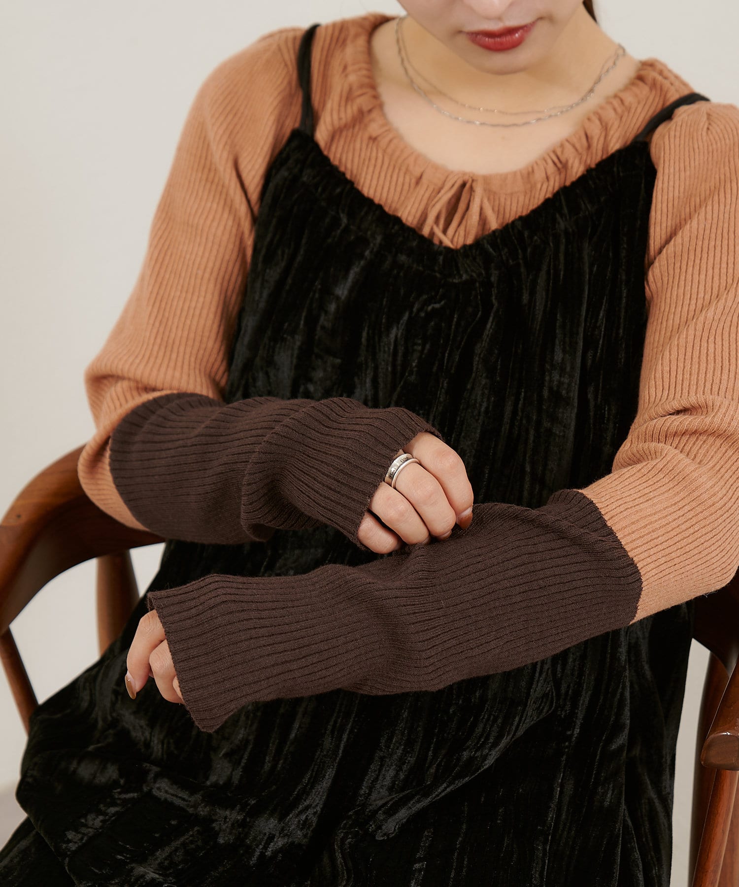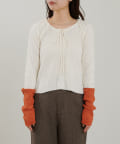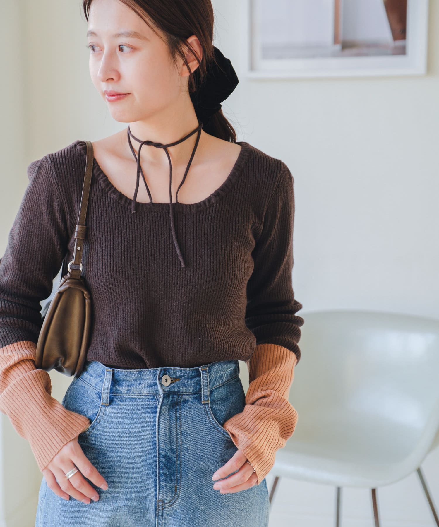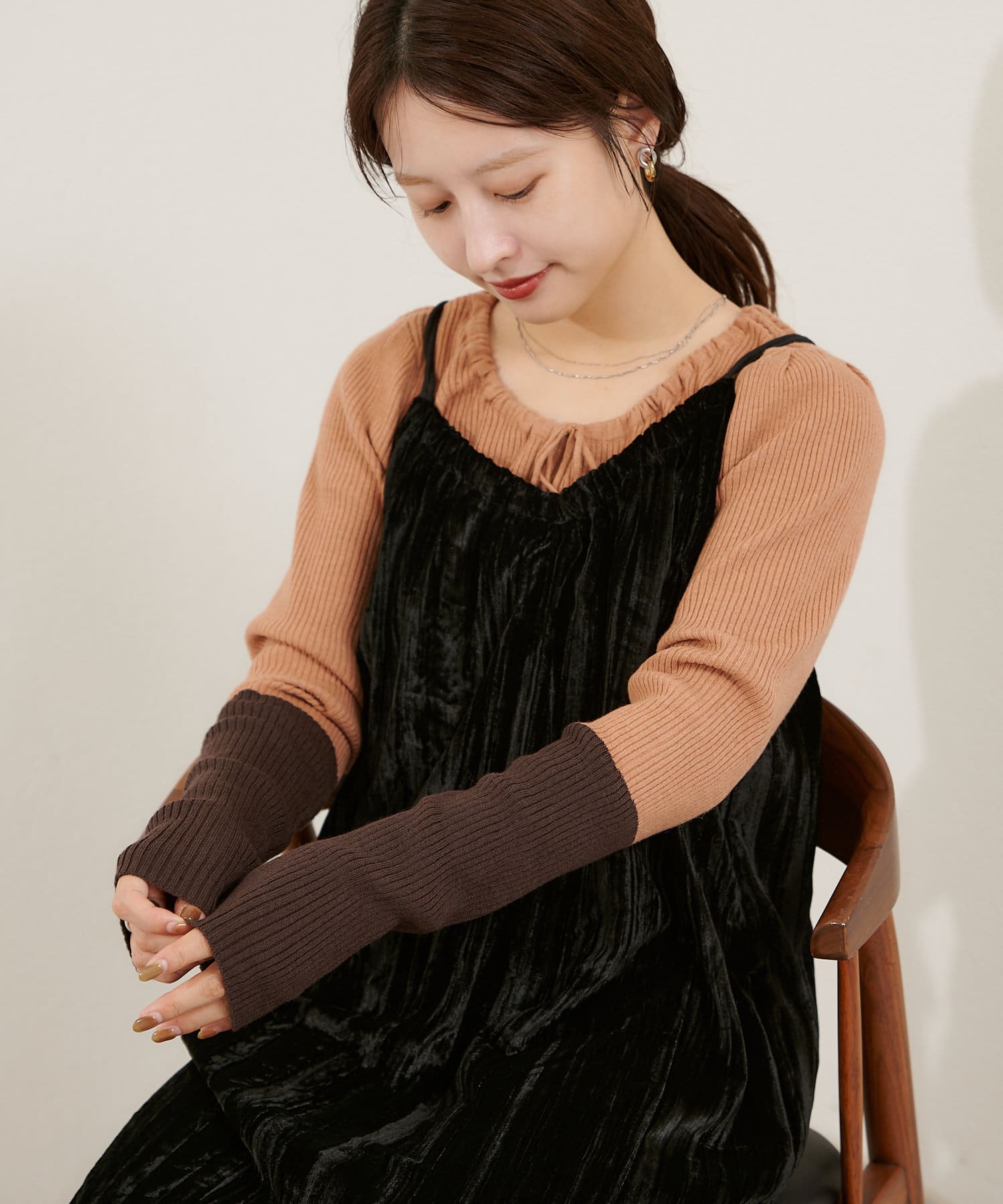 【新色追加/6色展開】B 袖配色ギャザーリブニットプルオーバー