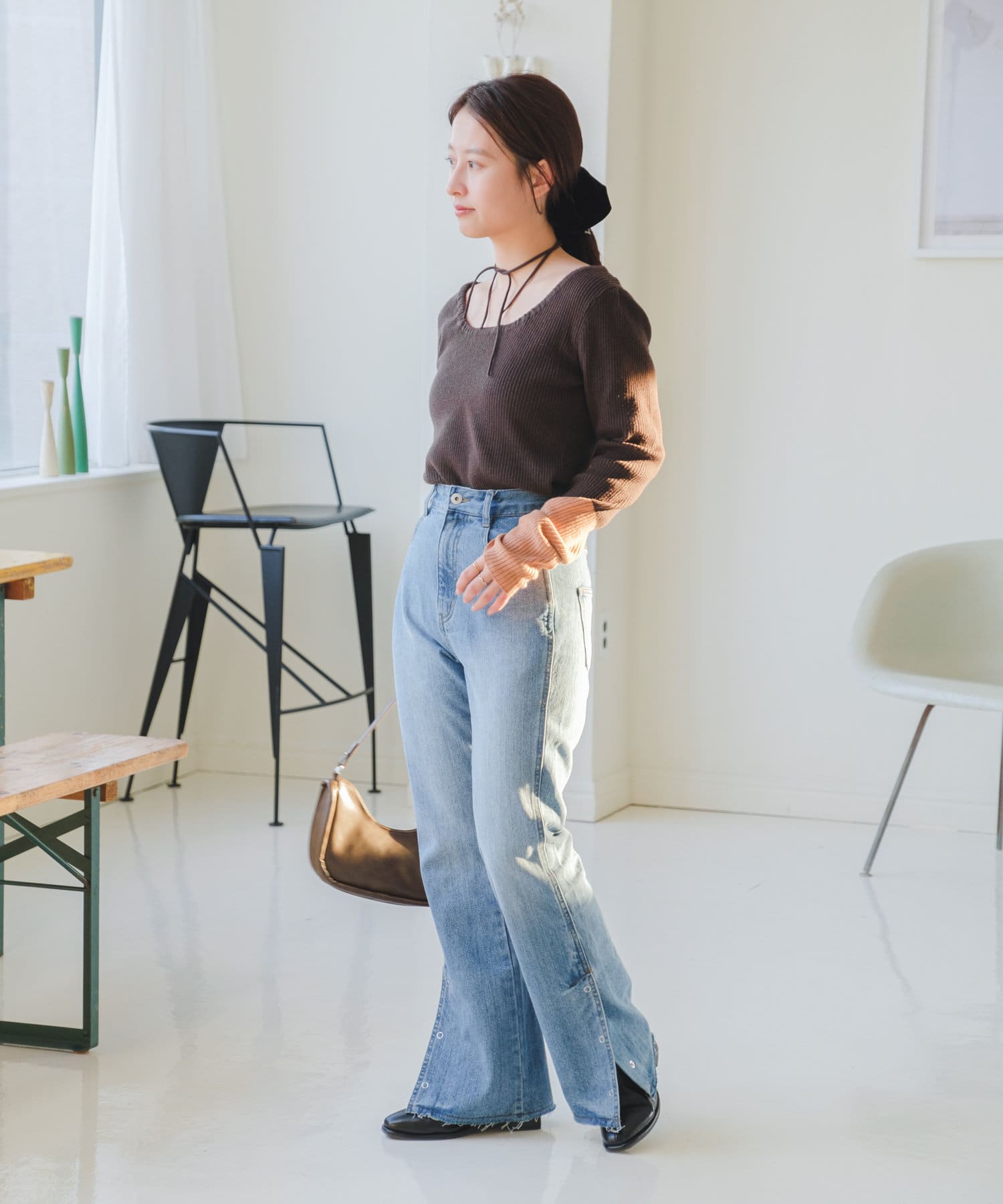 程よく開いたラウンドネックなので顔周りをすっきりと見せてくれます。