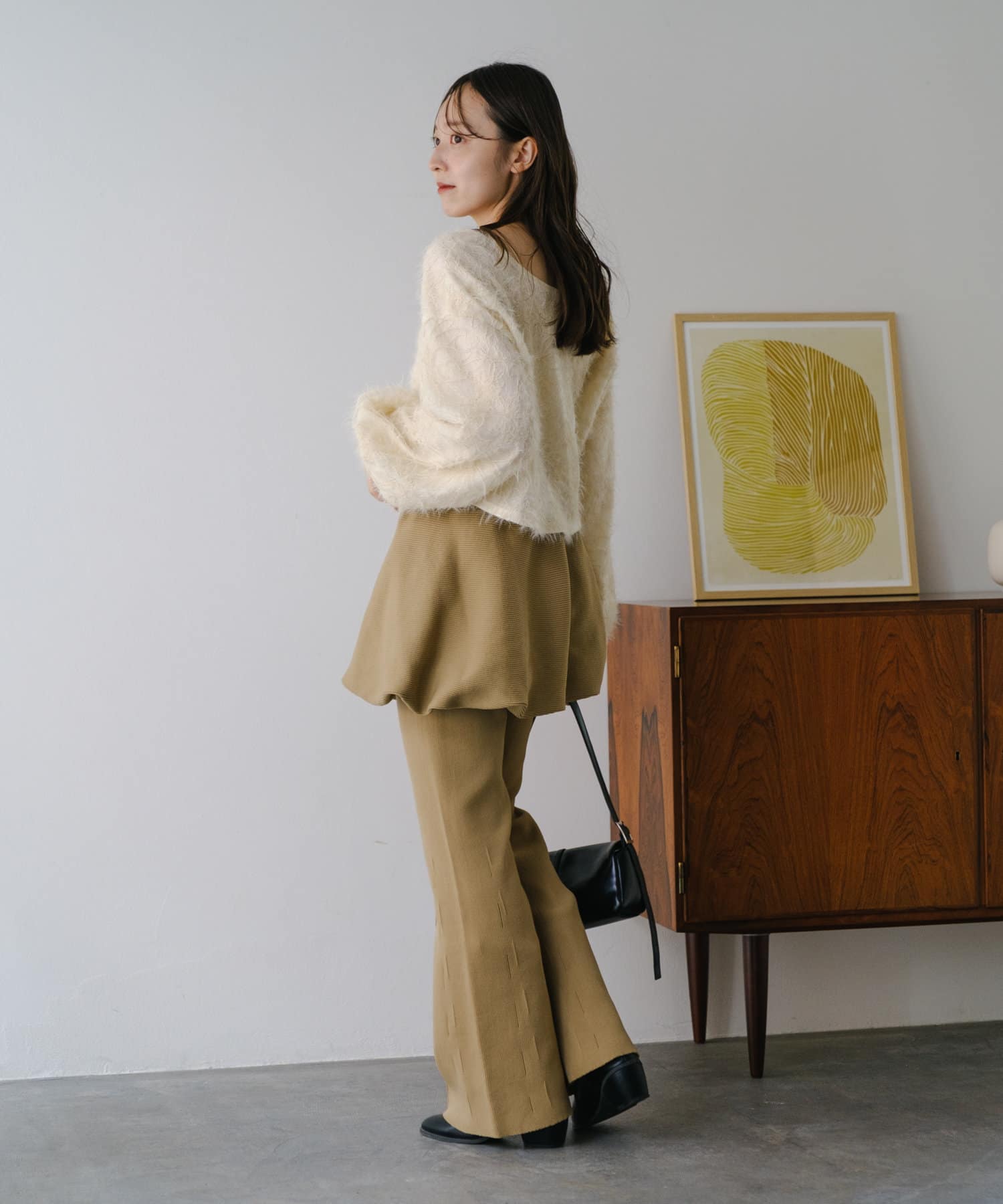丸みがあるシルエットに、ウエストは細かくタックが入っている為立体感が出ます。