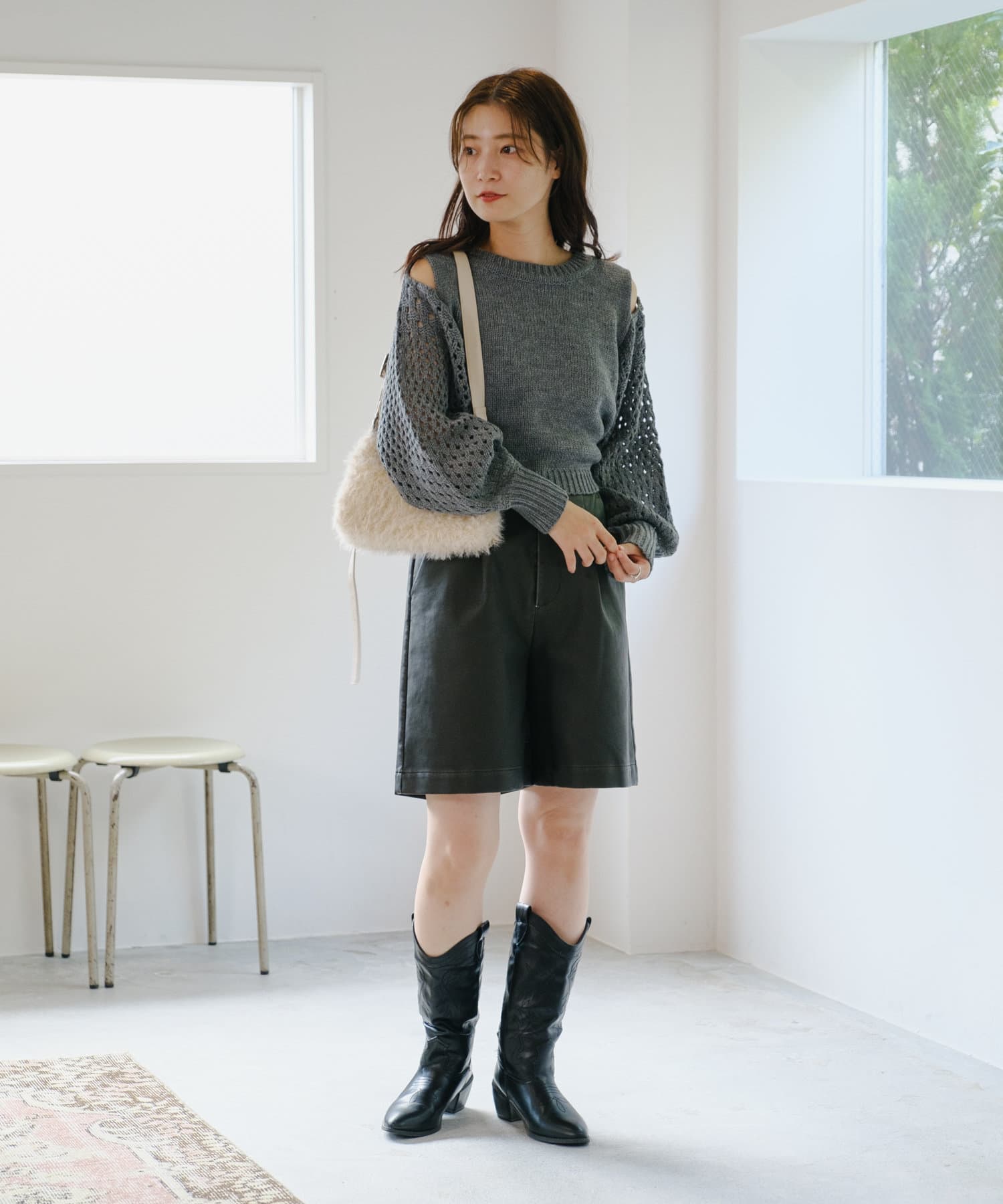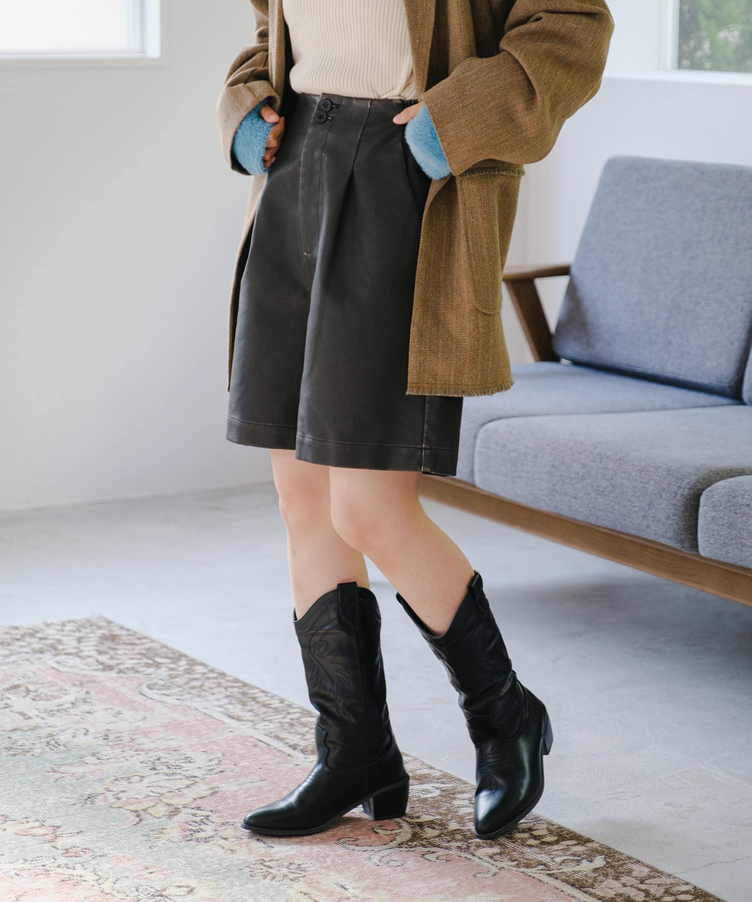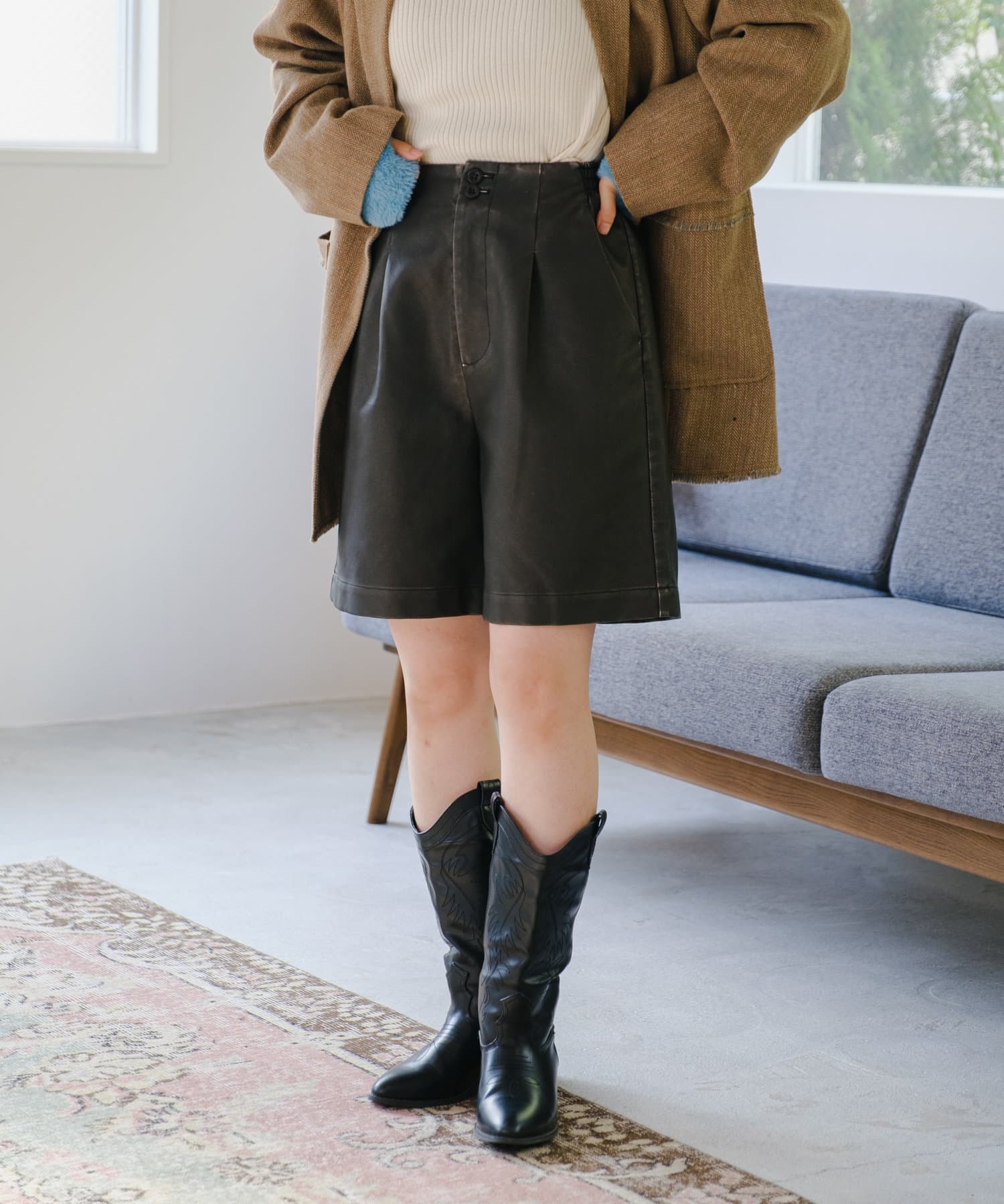 メンズ感のあるハーフパンツもレザーで女性らしく着ていただけます。