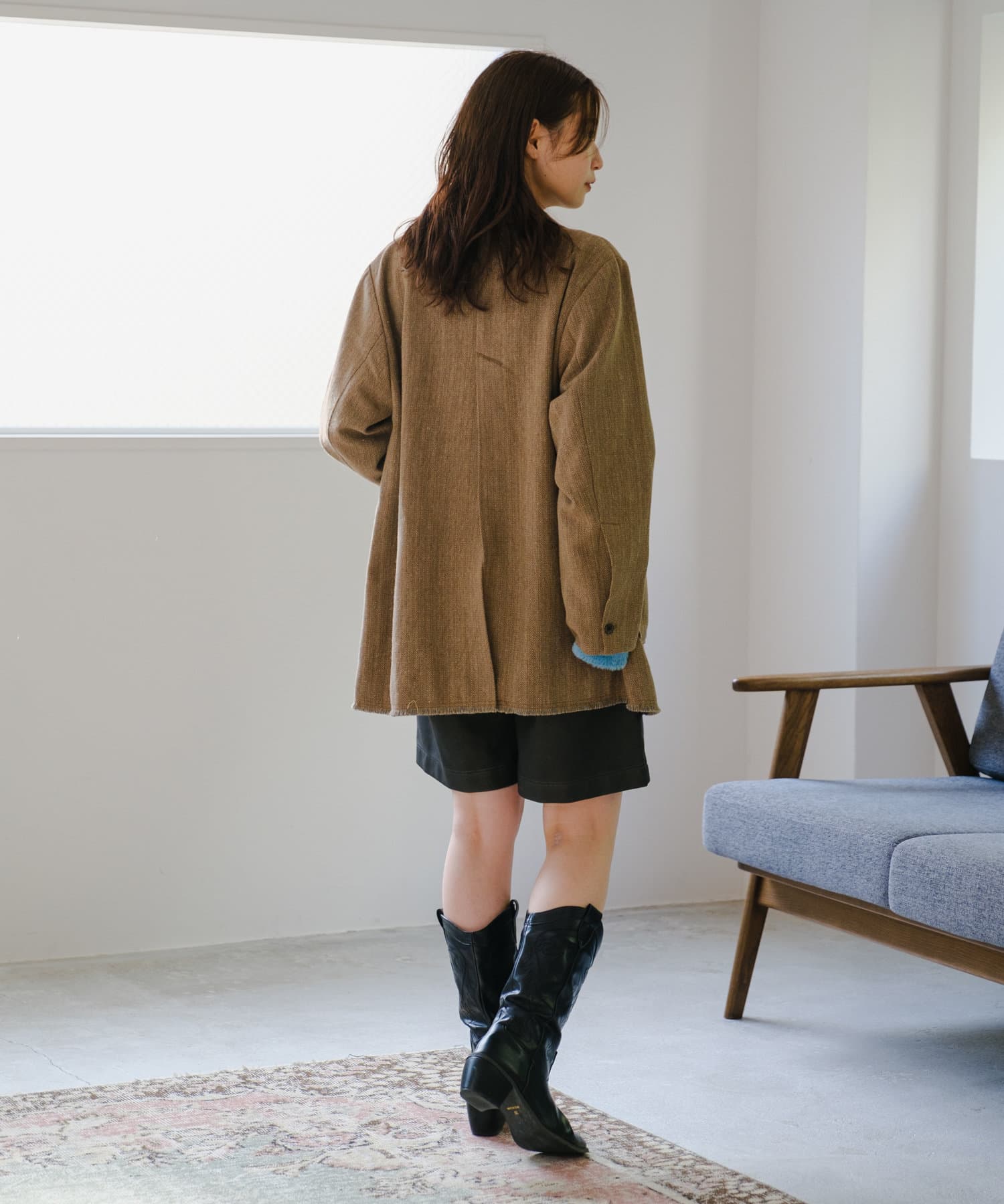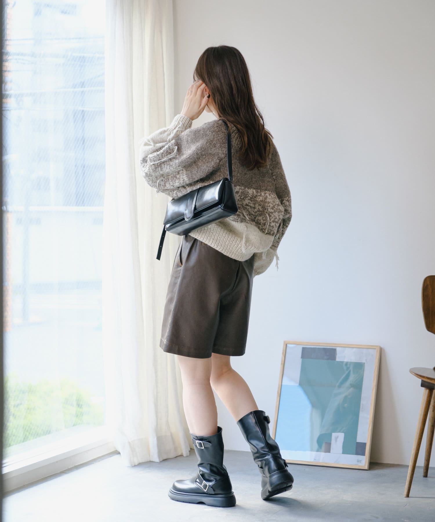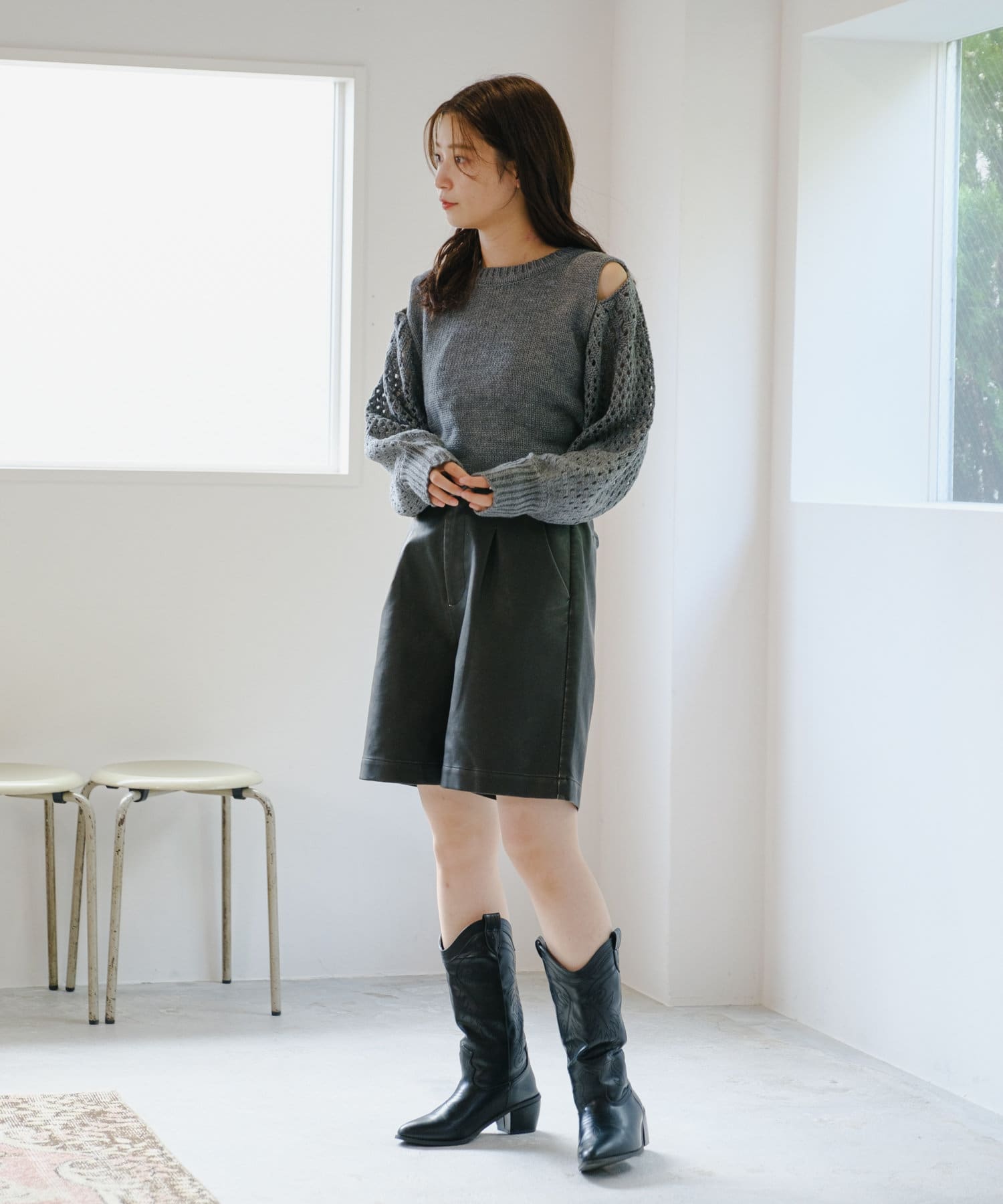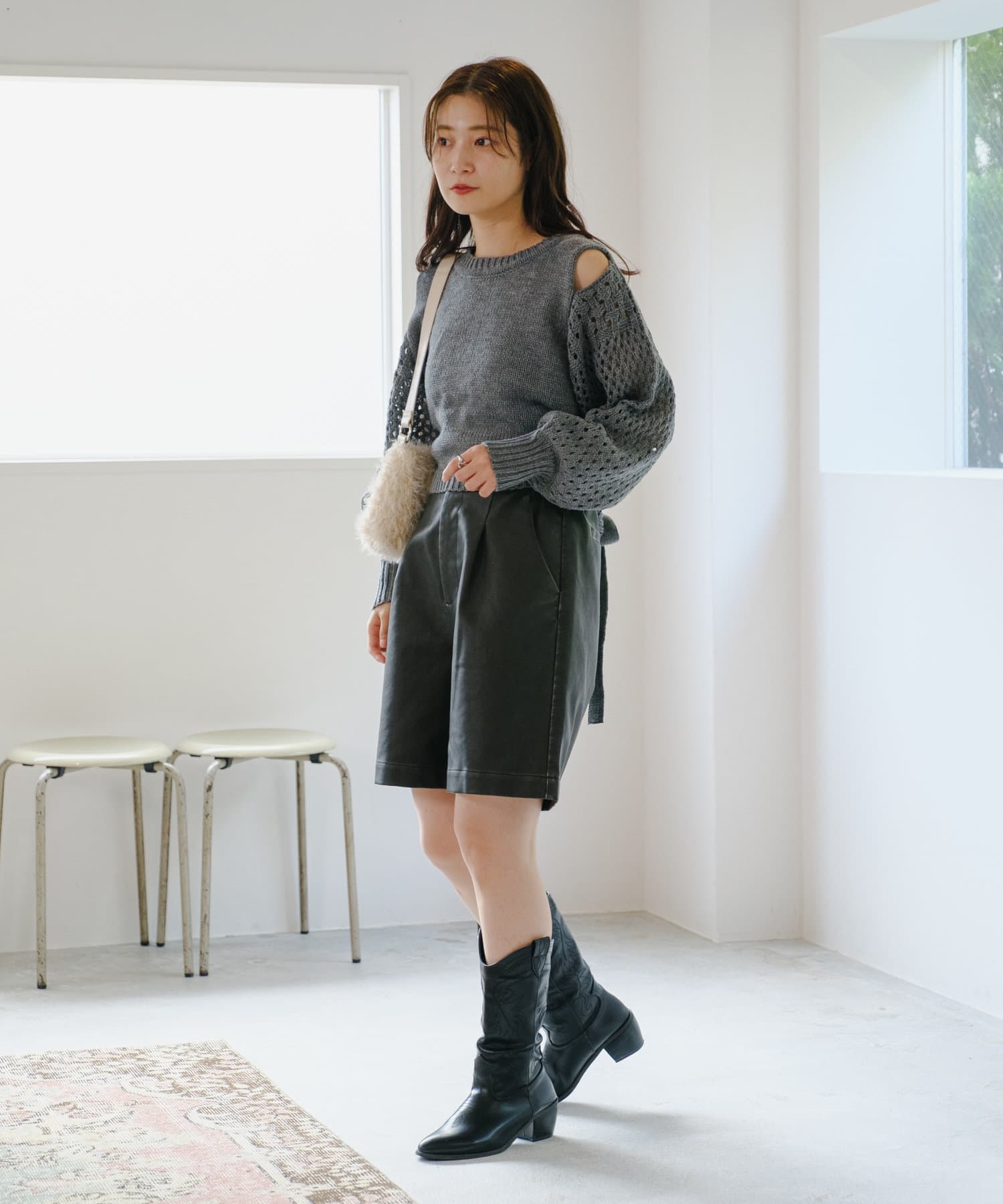 メンズ感のあるハーフパンツもレザーで女性らしく着ていただけます。