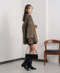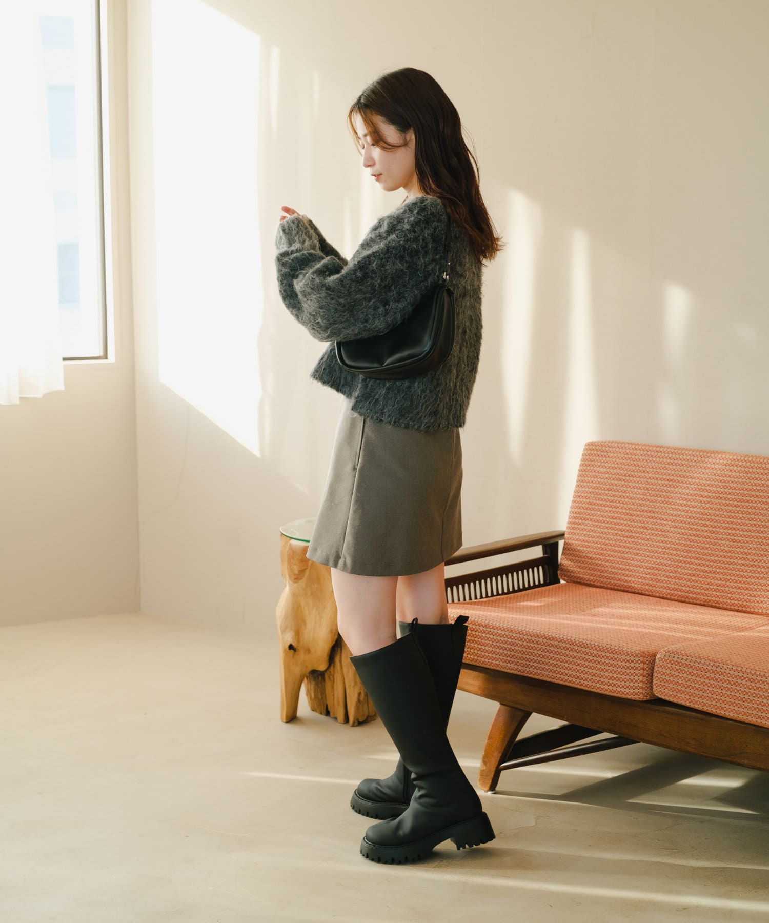 トレンドのミニボトムに、ブーツ合わせがバランスよく決まります。