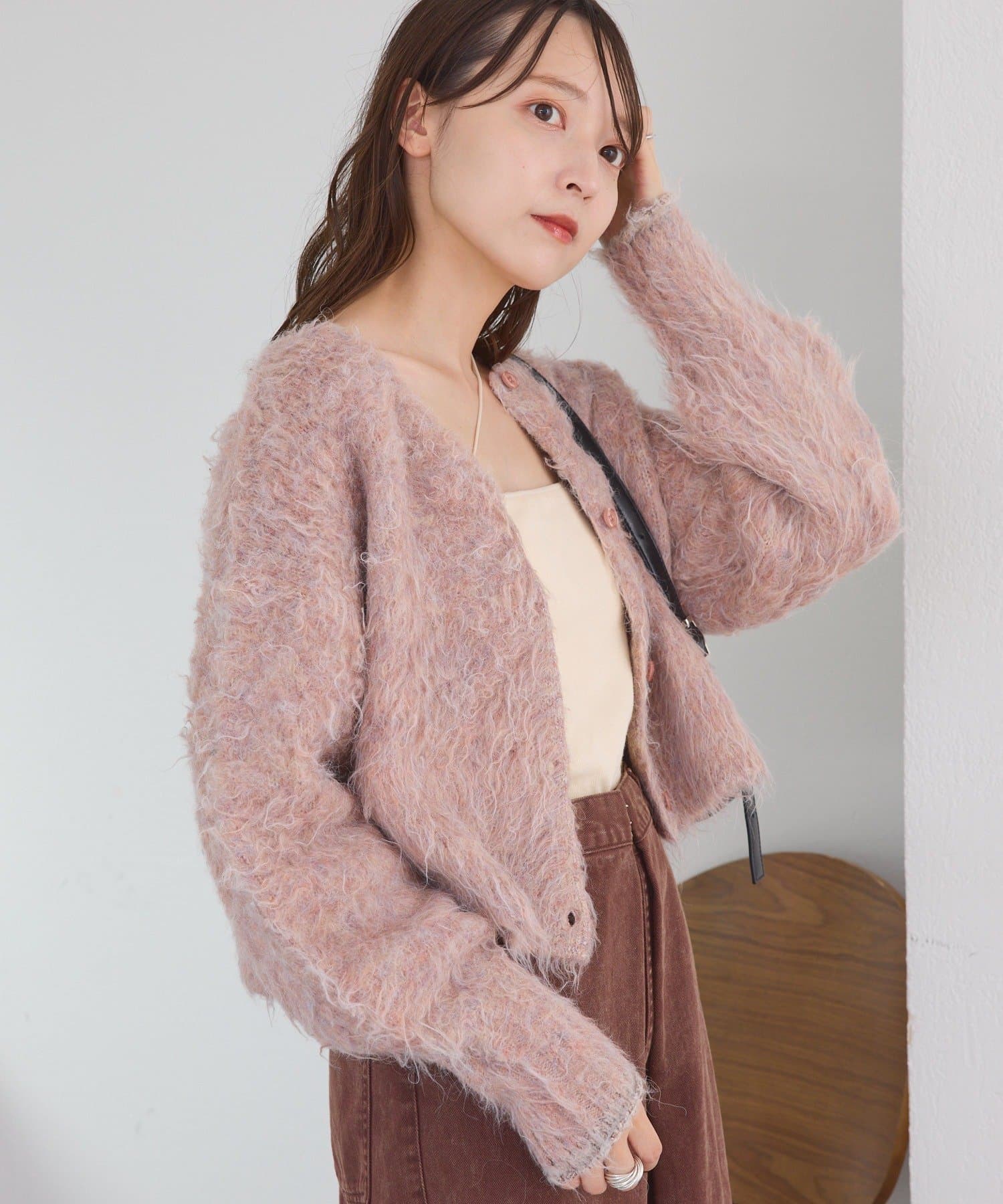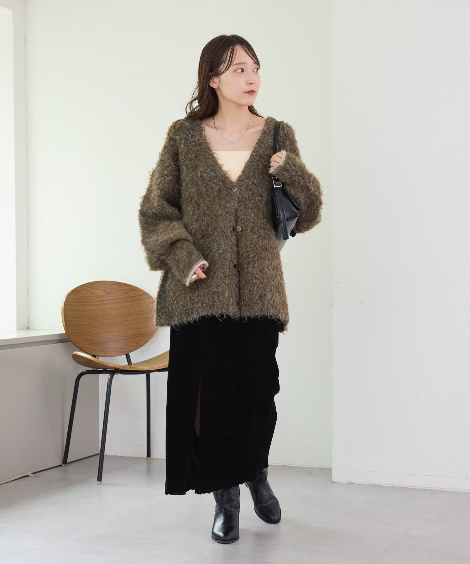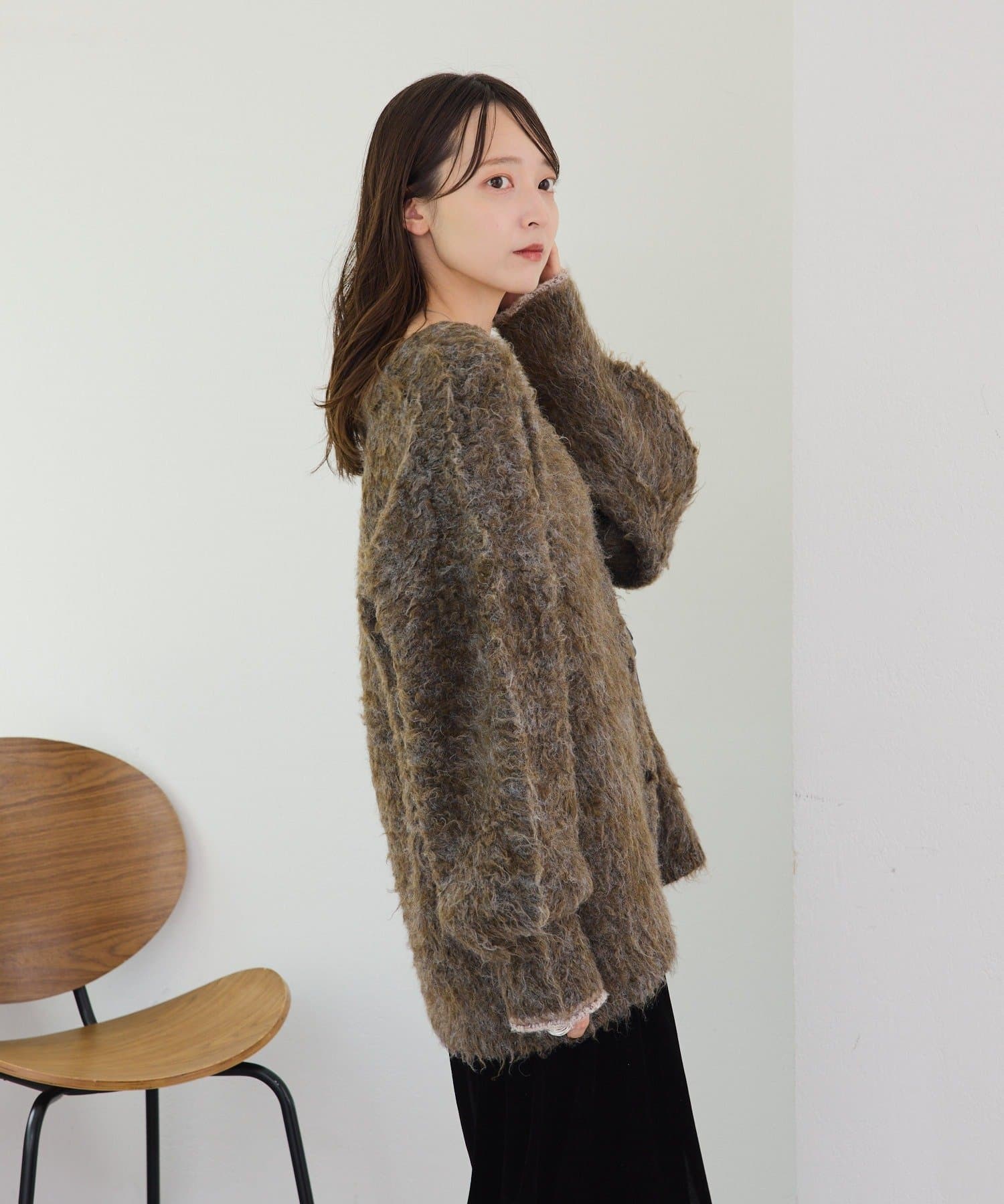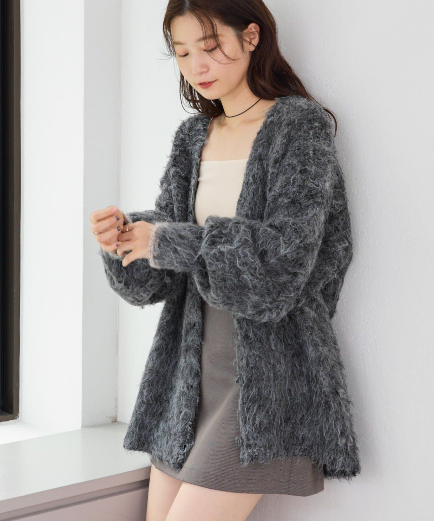 毛足長めのシャギー素材で、肉厚な生地感なのでアウターとしても◎