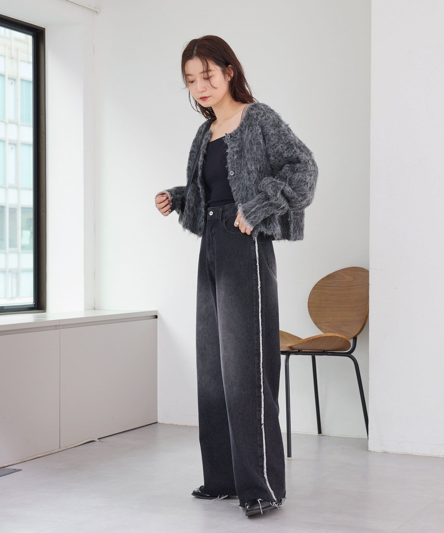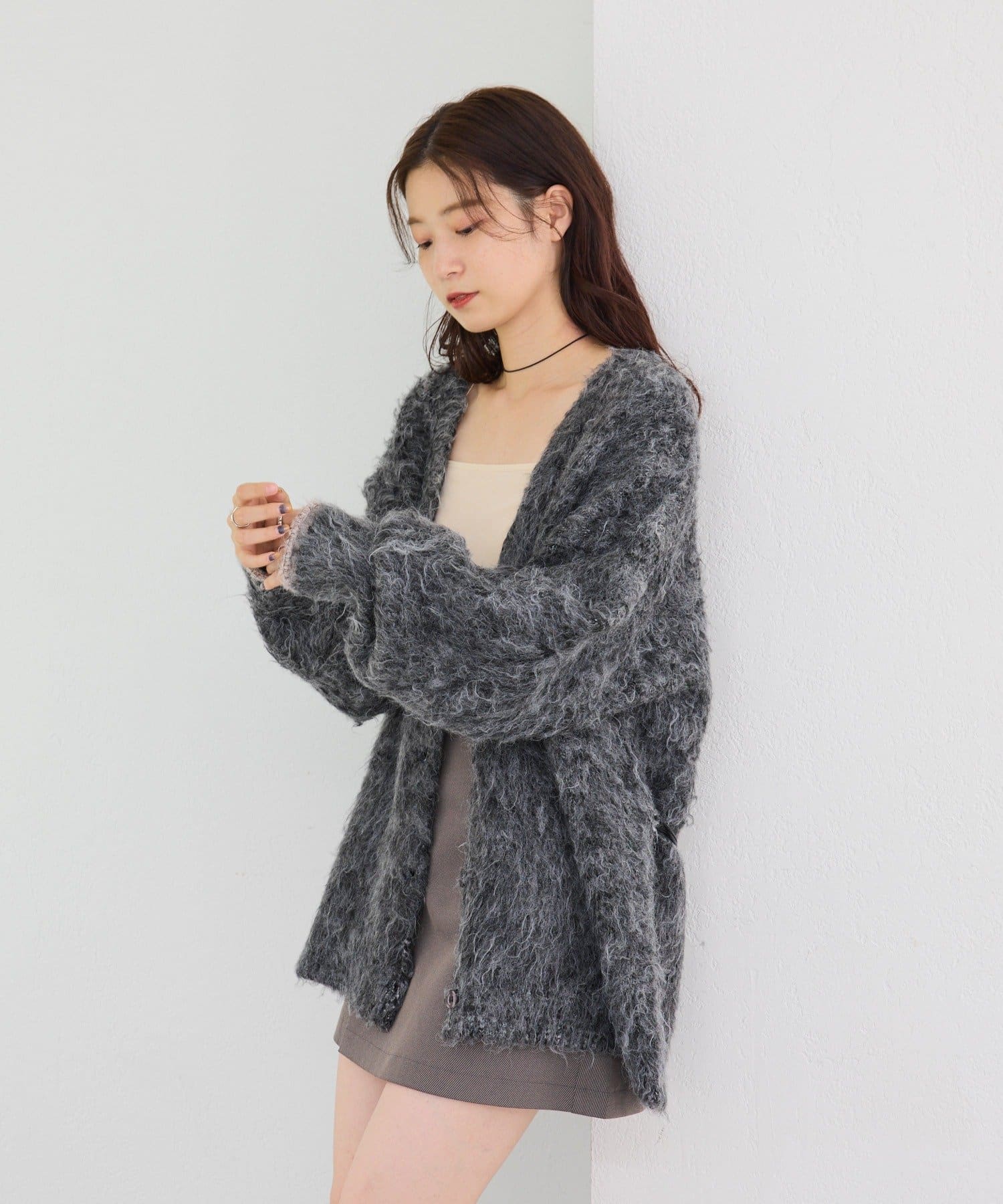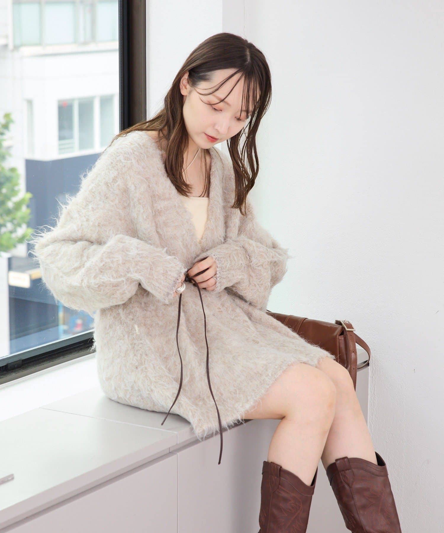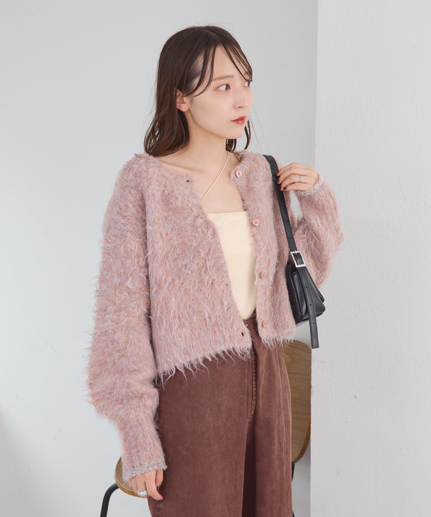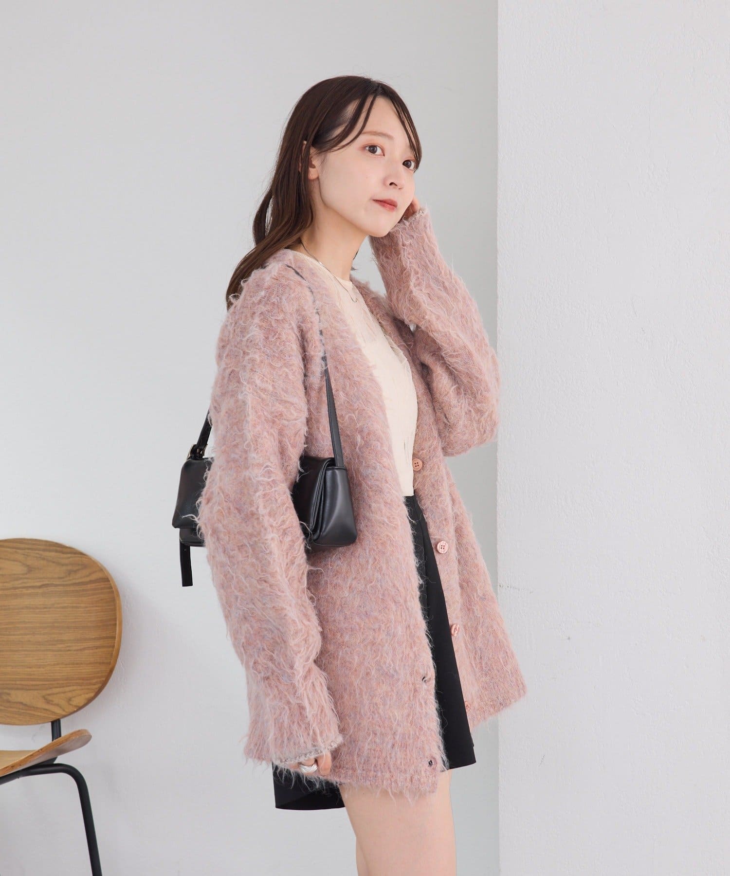 毛足長めのシャギー素材で、肉厚な生地感なのでアウターとしても◎