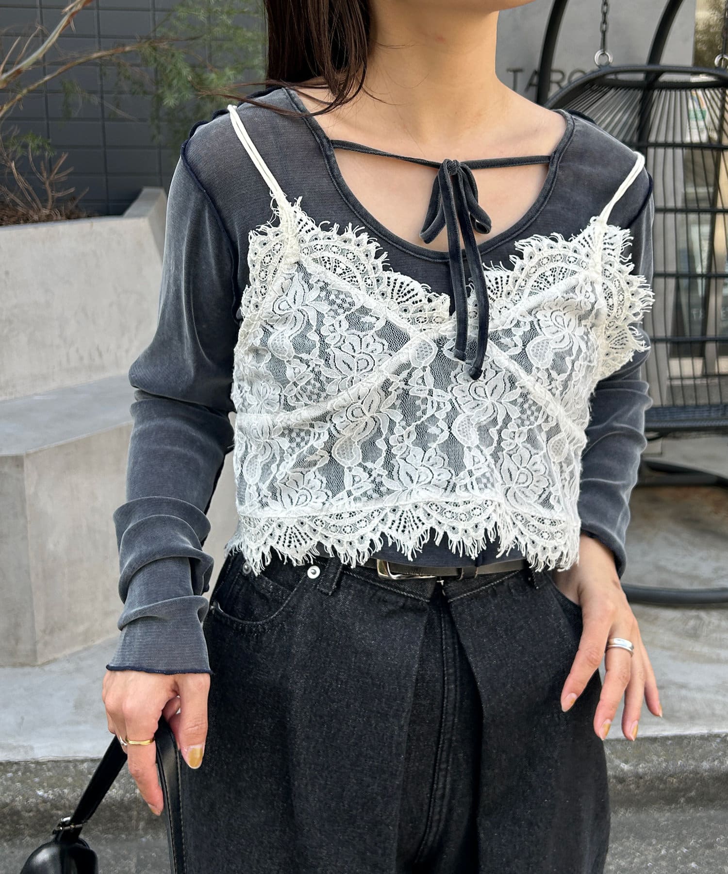 ジャケットやベストのインナーでも、1枚でもかわいいです◎