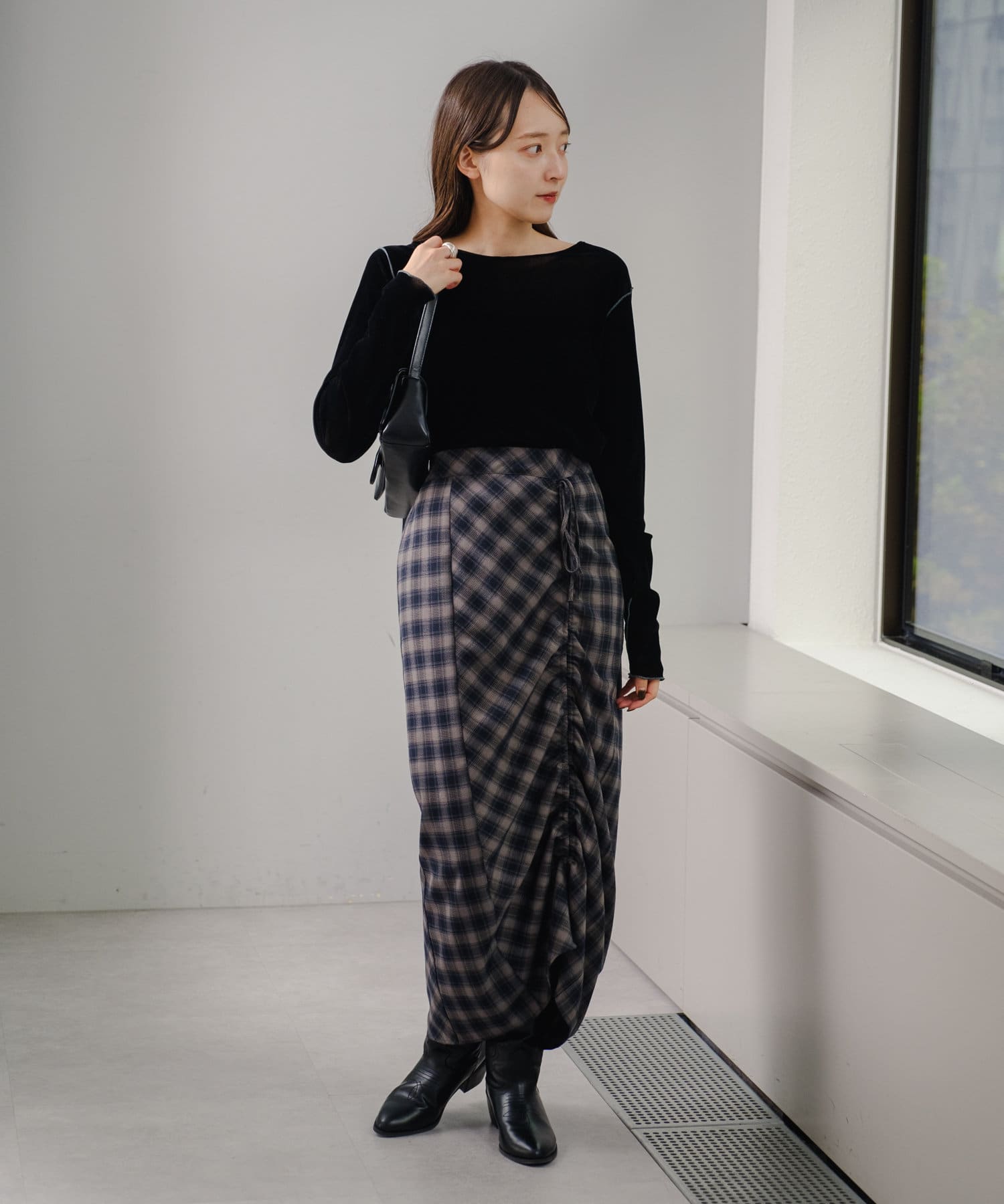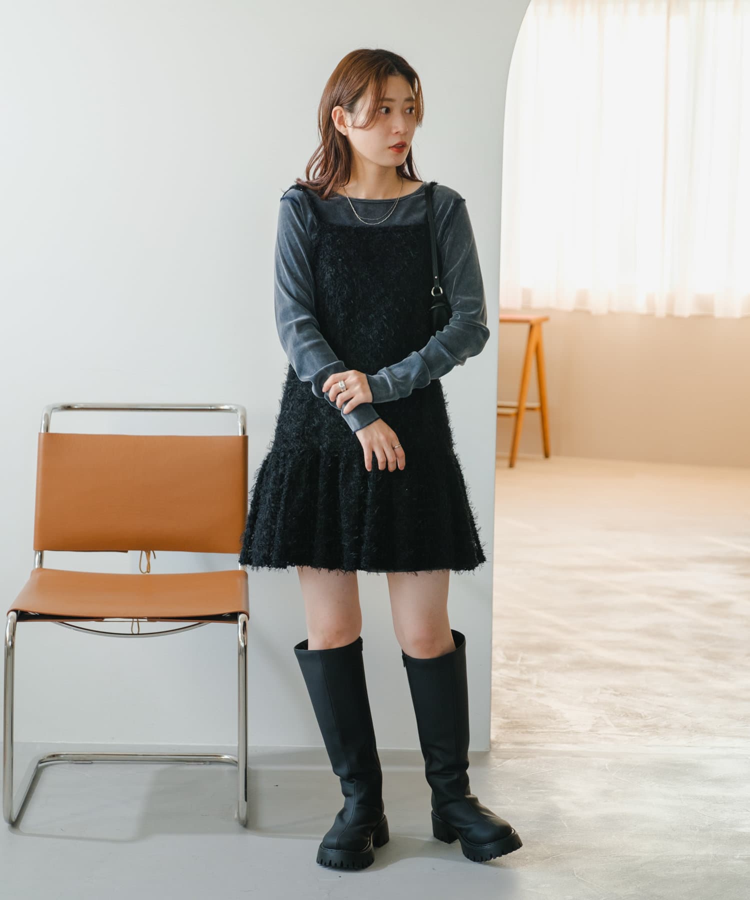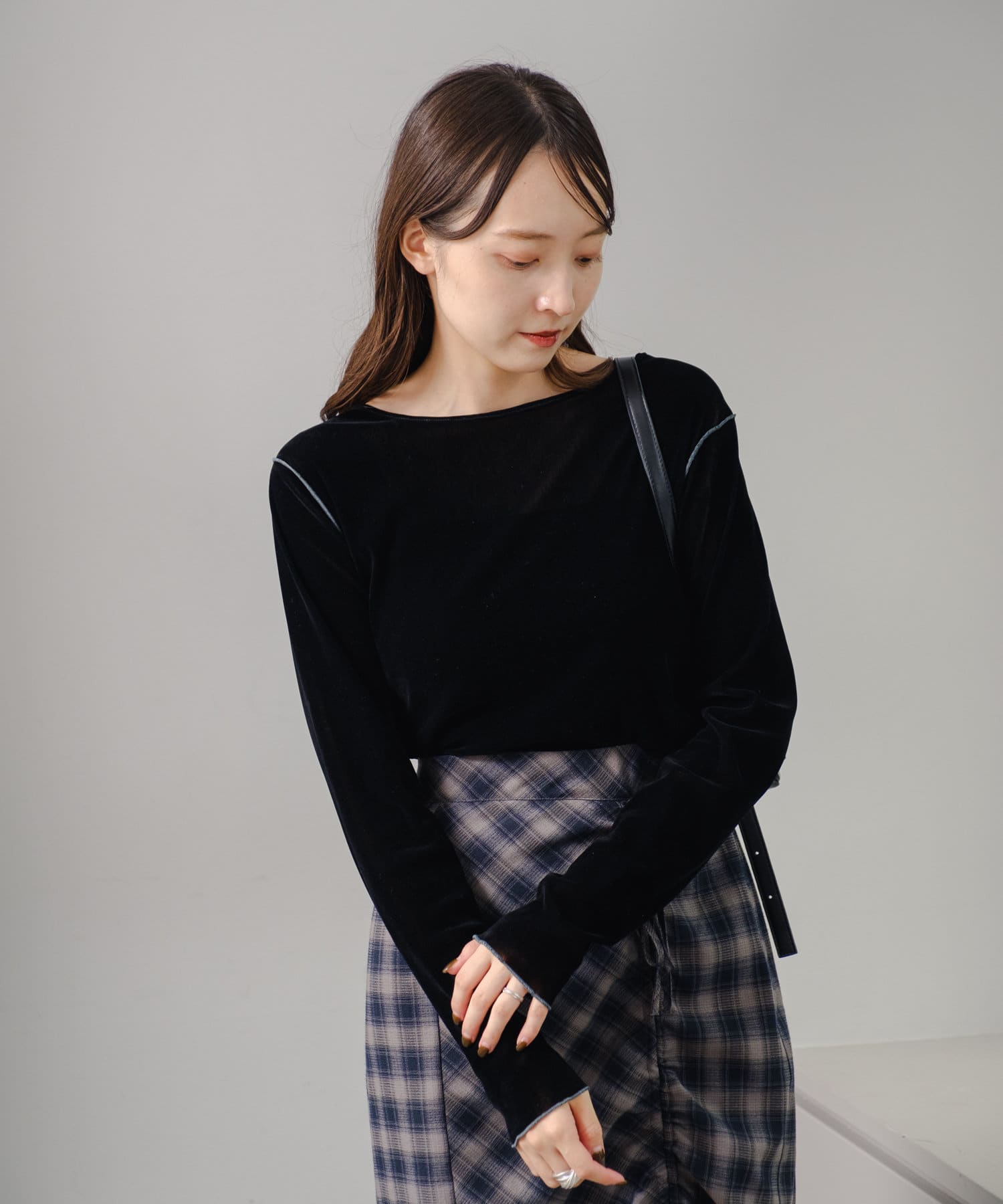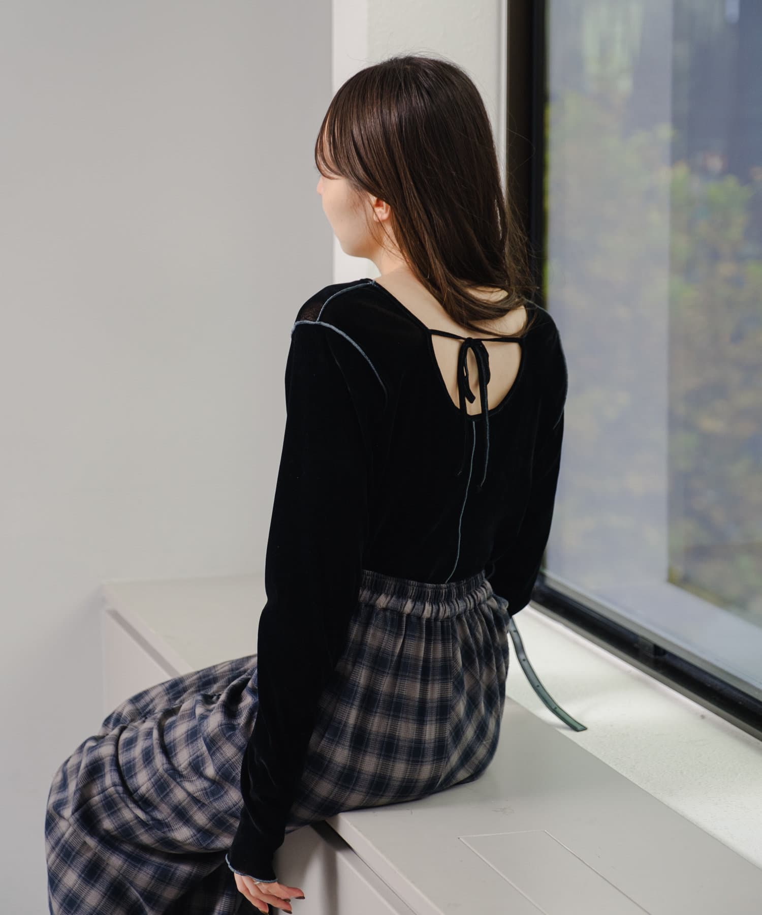 チュール素材で程よく透け感がありながらもベロア素材で秋冬らしさ抜群です◎