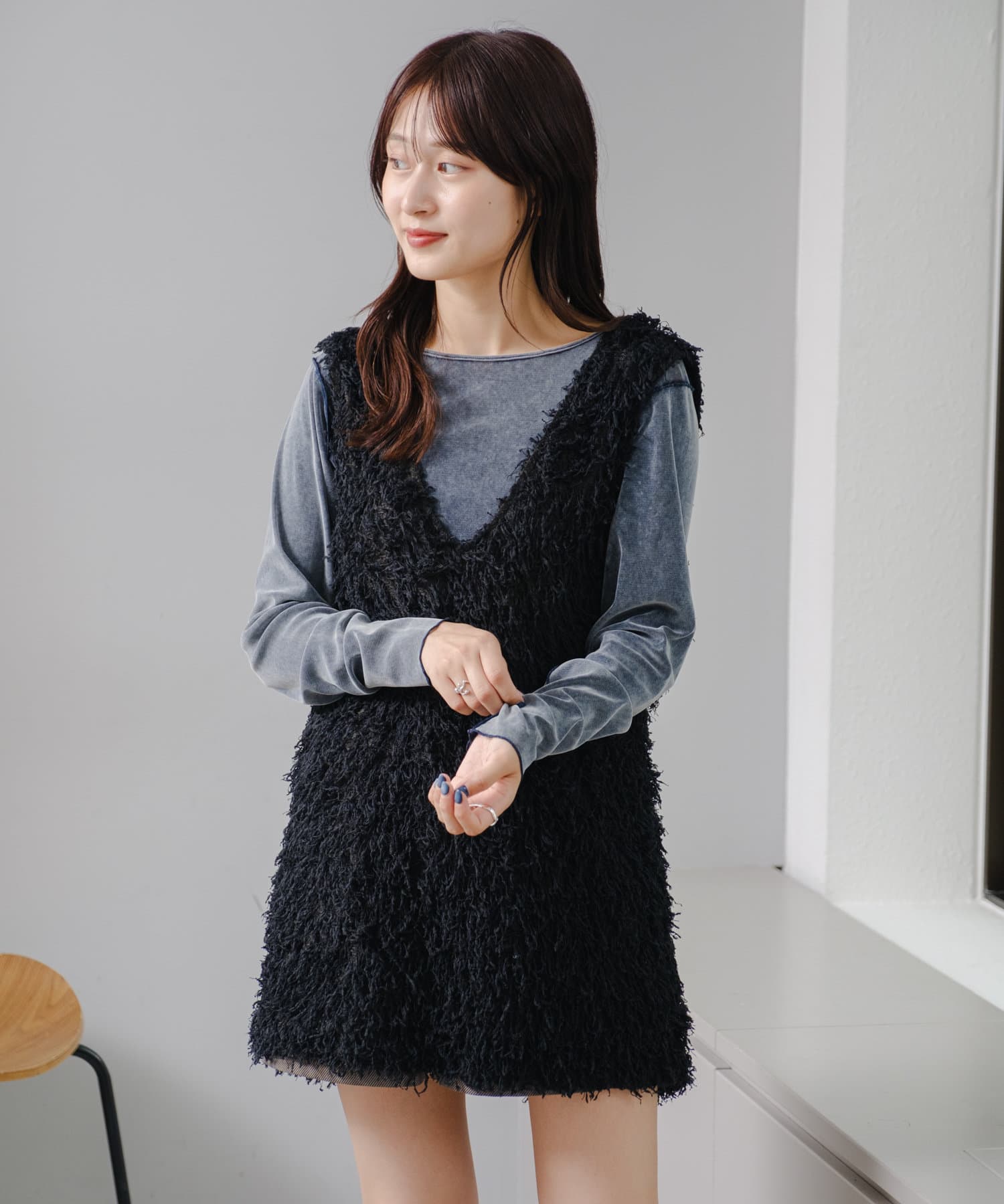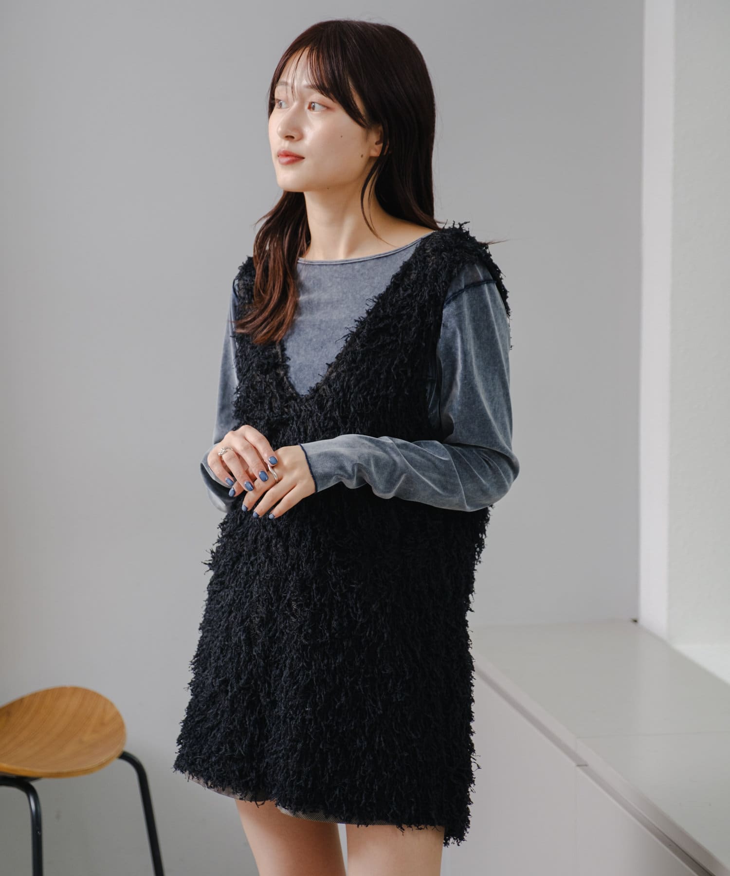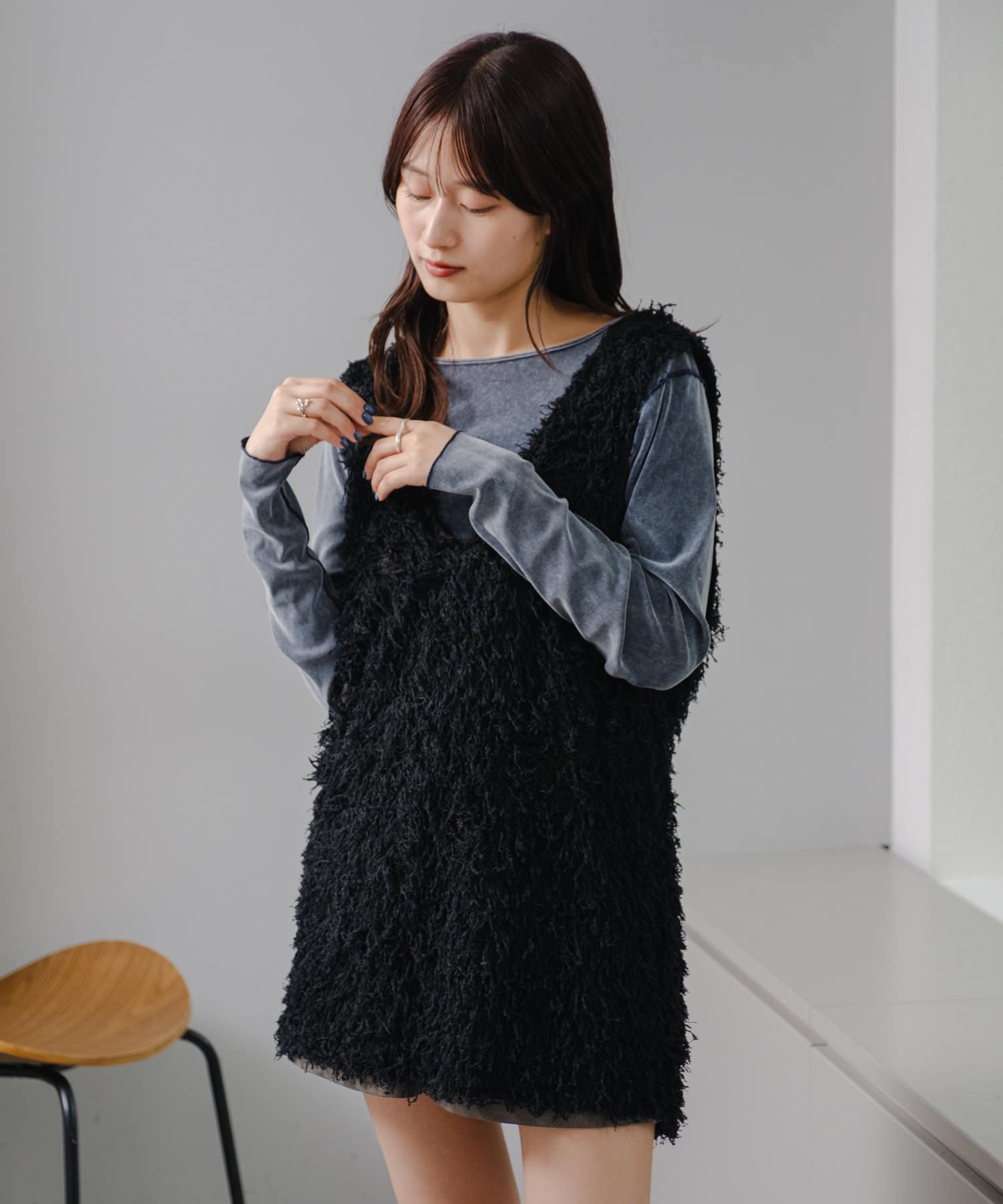 【前後2way】チュールベロアプルオーバー