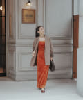 ホルターネックはデコルテラインや背中を美しく見せる効果があるので、女性らしい印象もプラスしてくれます。