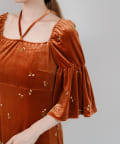 【オケージョンドレス/結婚式】velour bell sleeve dress