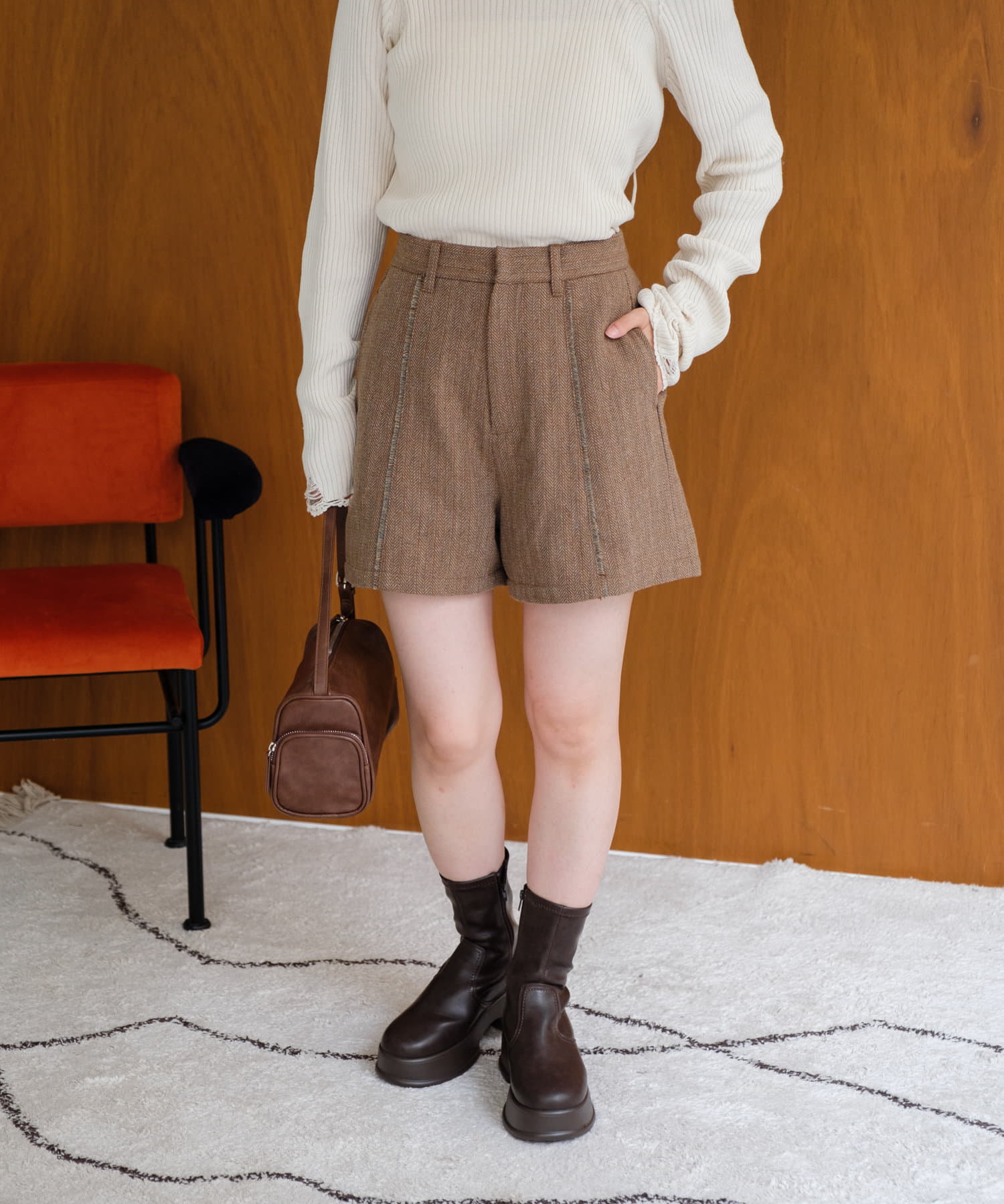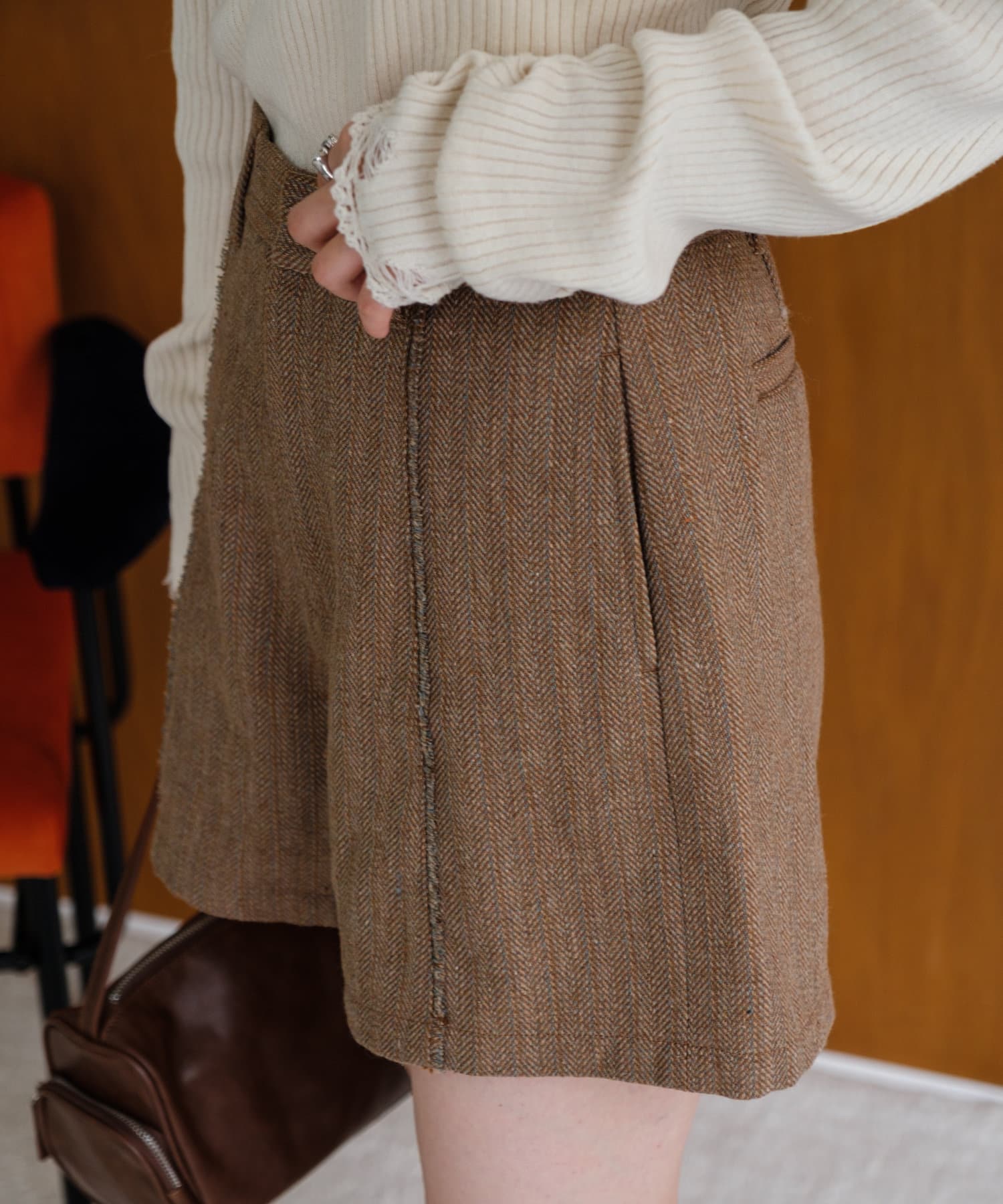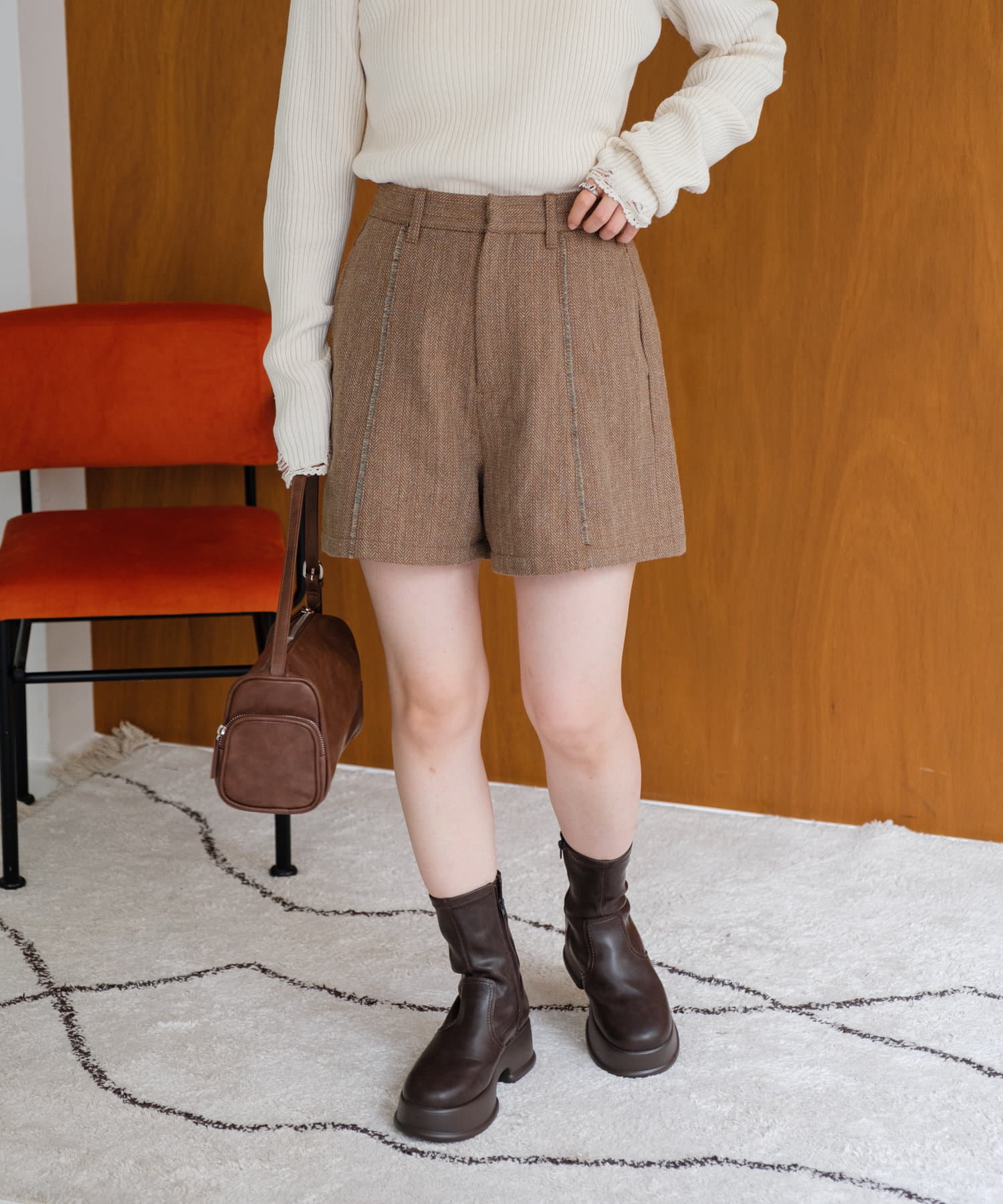 シンプルながらもこなれ感のあるツイードショートパンツ