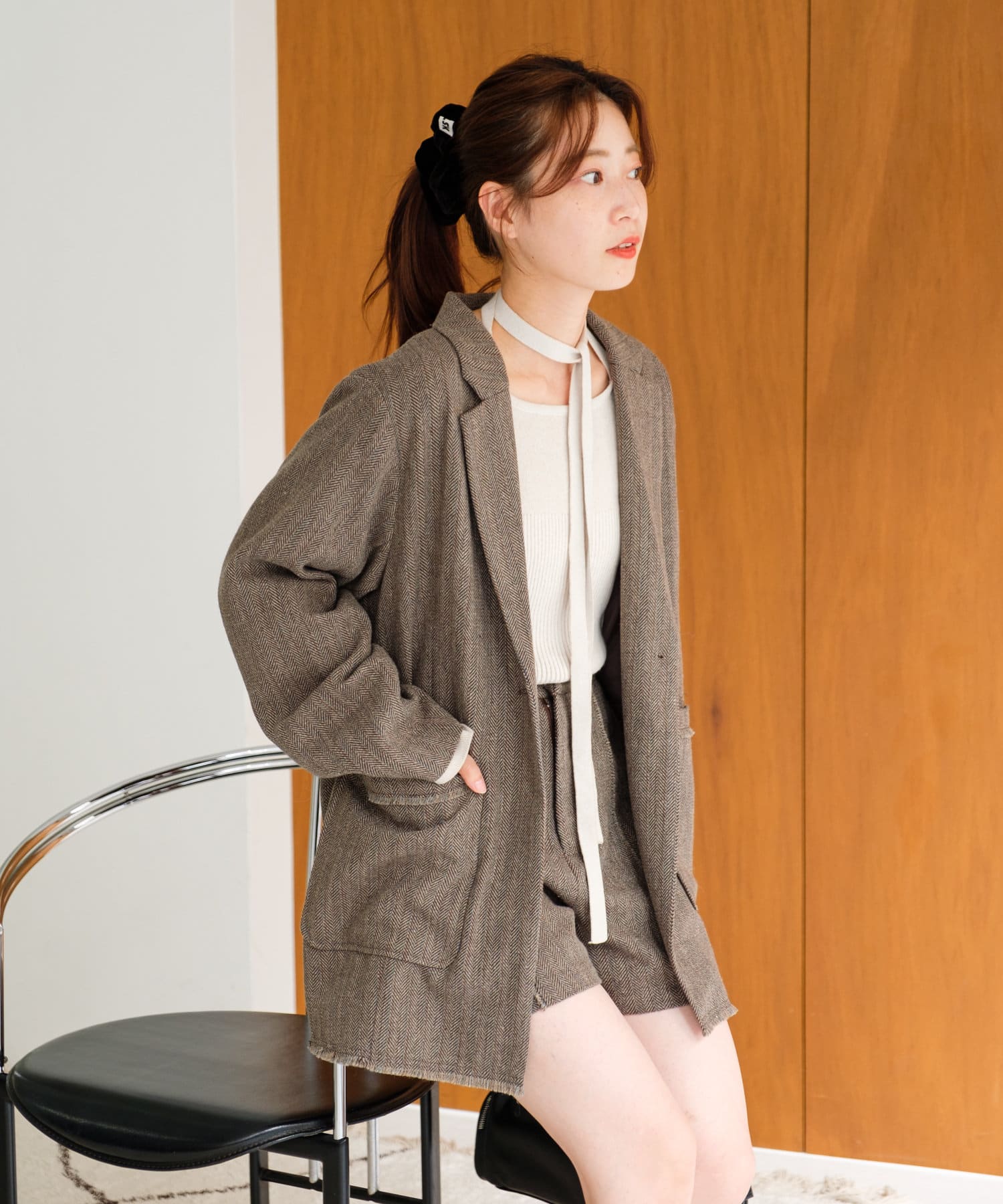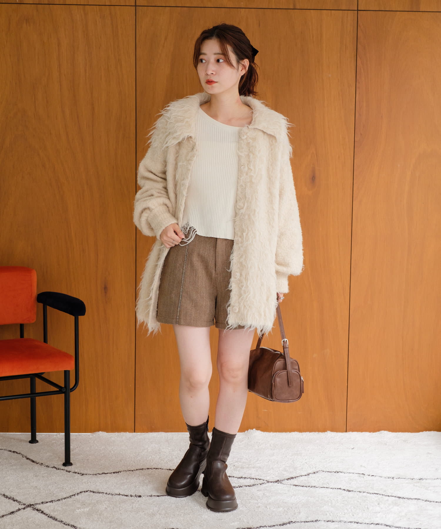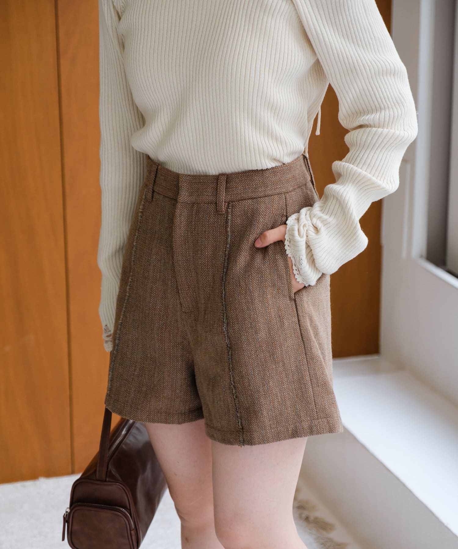 シンプルながらもこなれ感のあるツイードショートパンツ