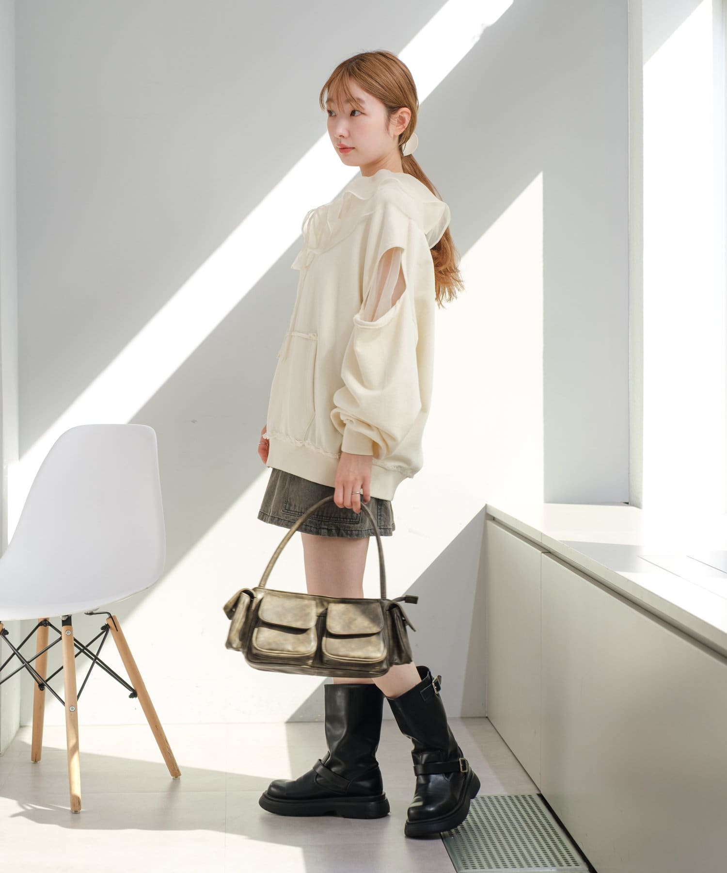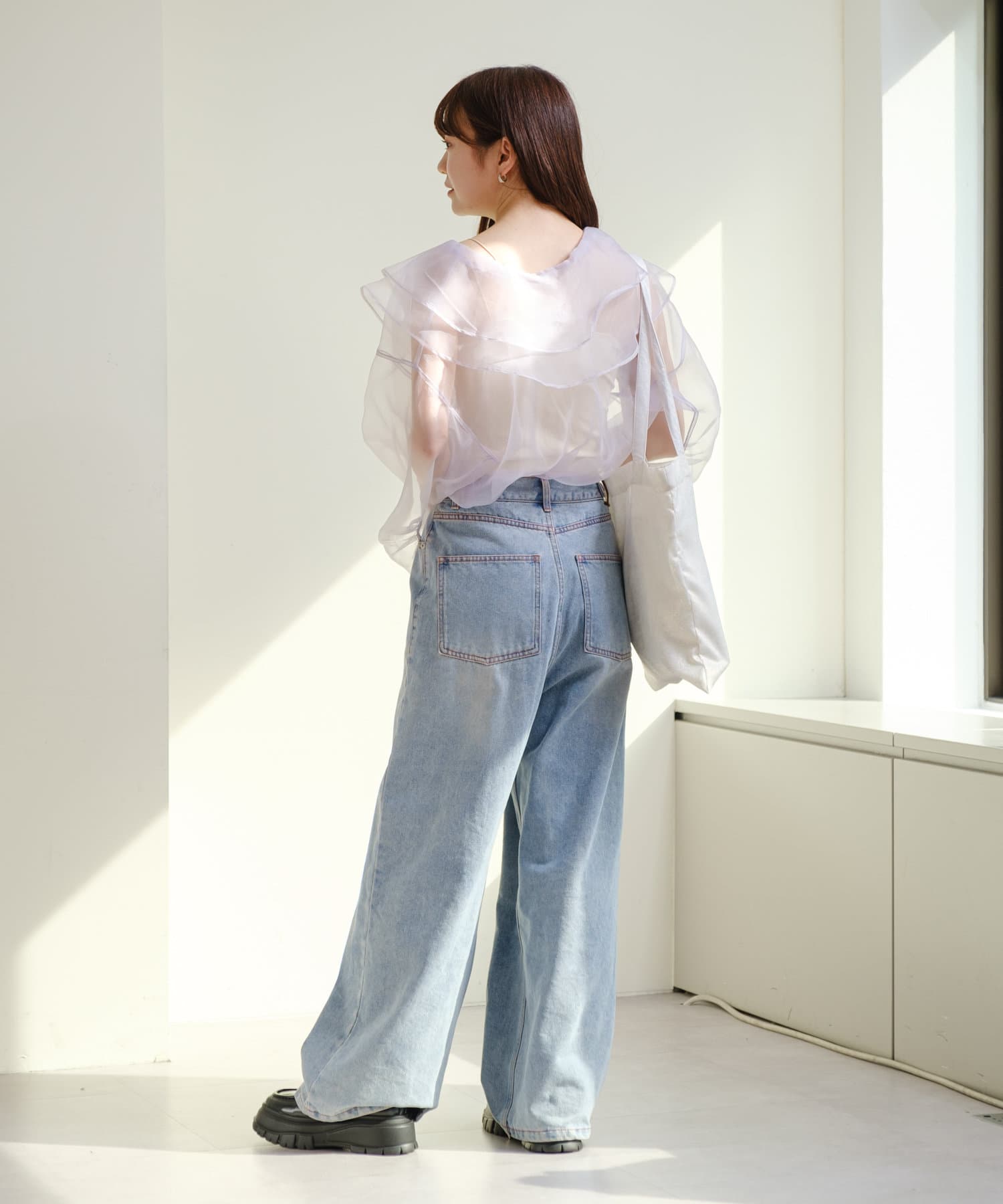 すっきりとしたボトムスを合わせることで、ブラウスのデザインを引き立たせることができます。