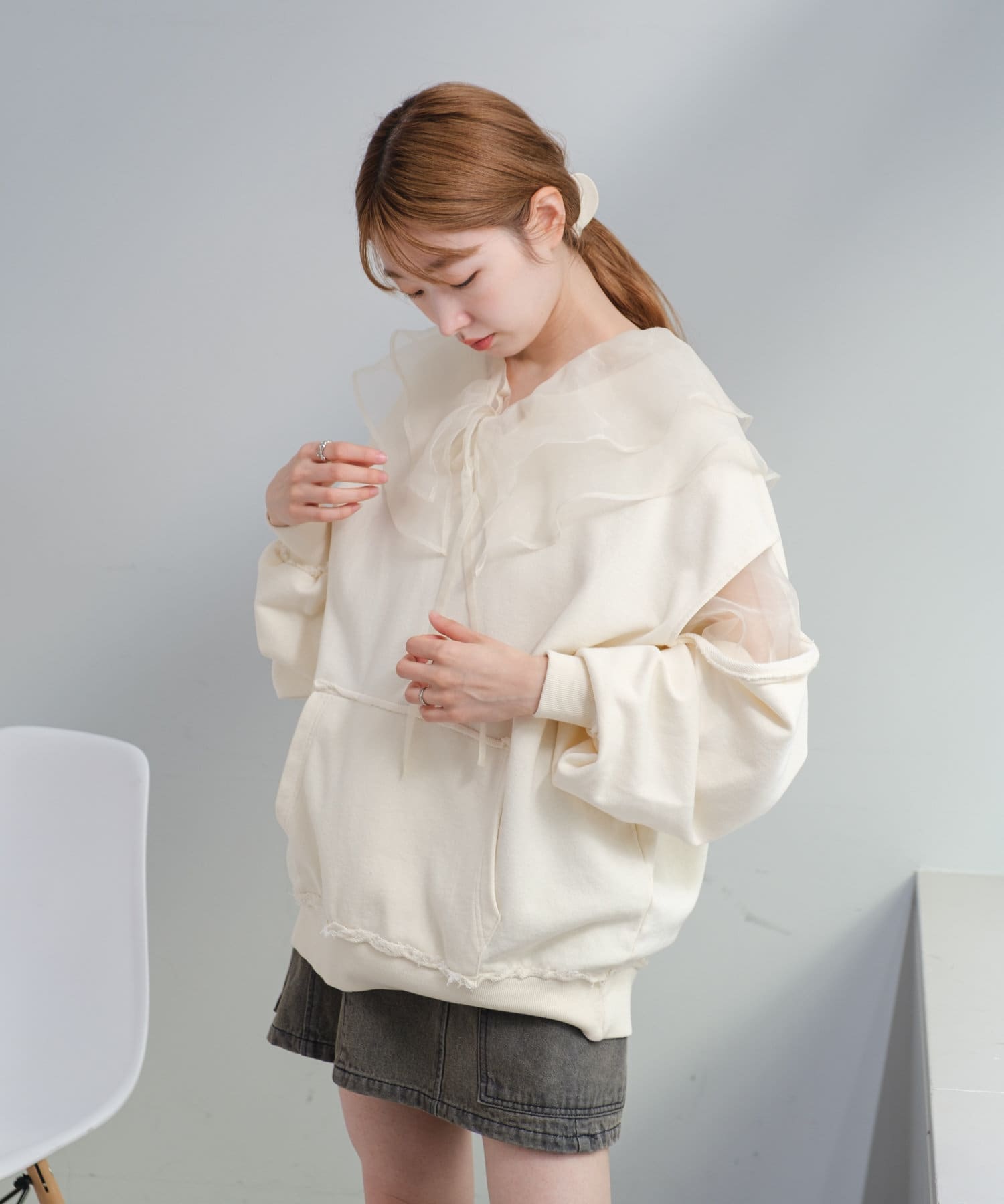 柔らかいフリルがふわりと肌に乗るような着心地です。