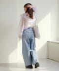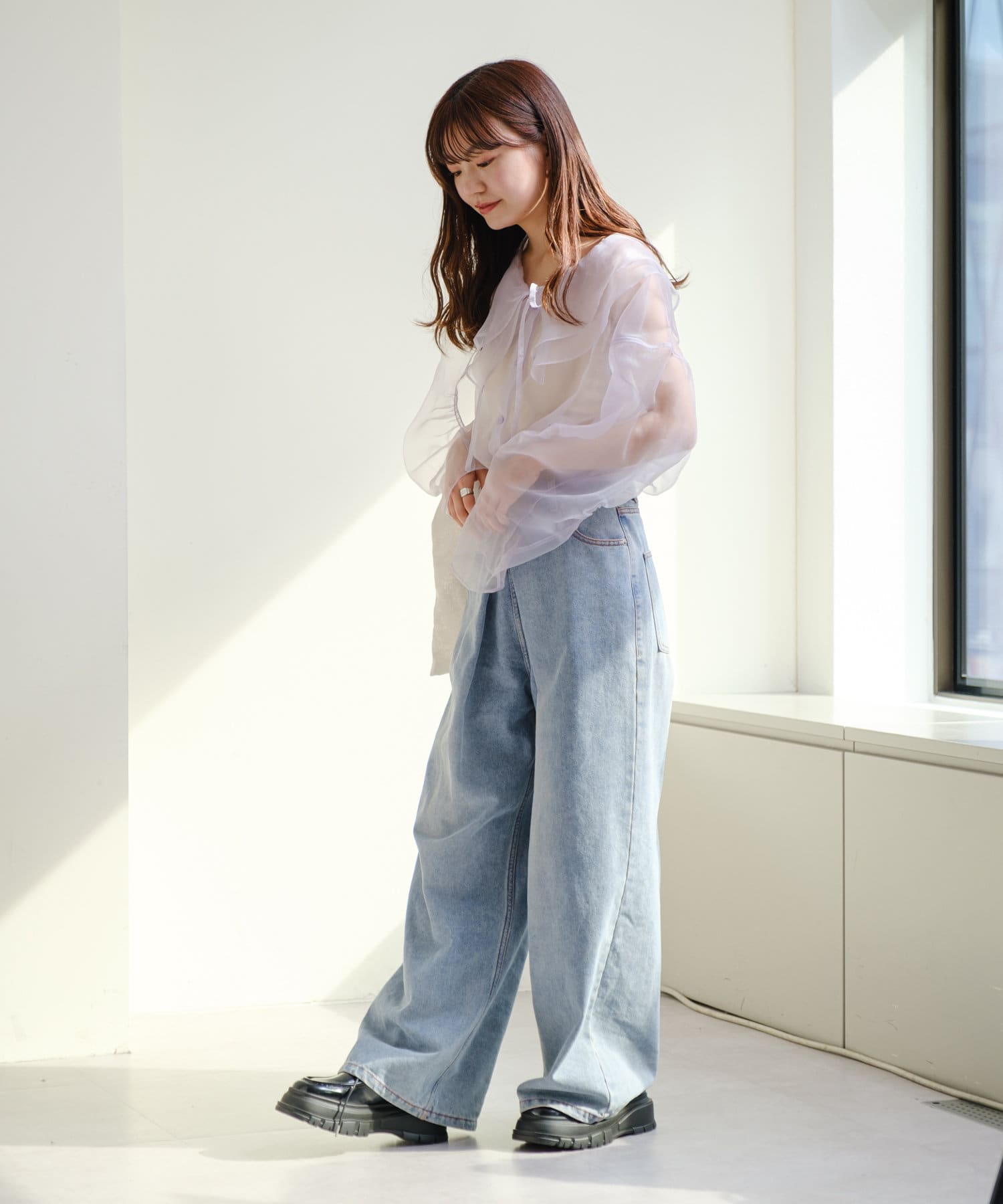 すっきりとしたボトムスを合わせることで、ブラウスのデザインを引き立たせることができます。