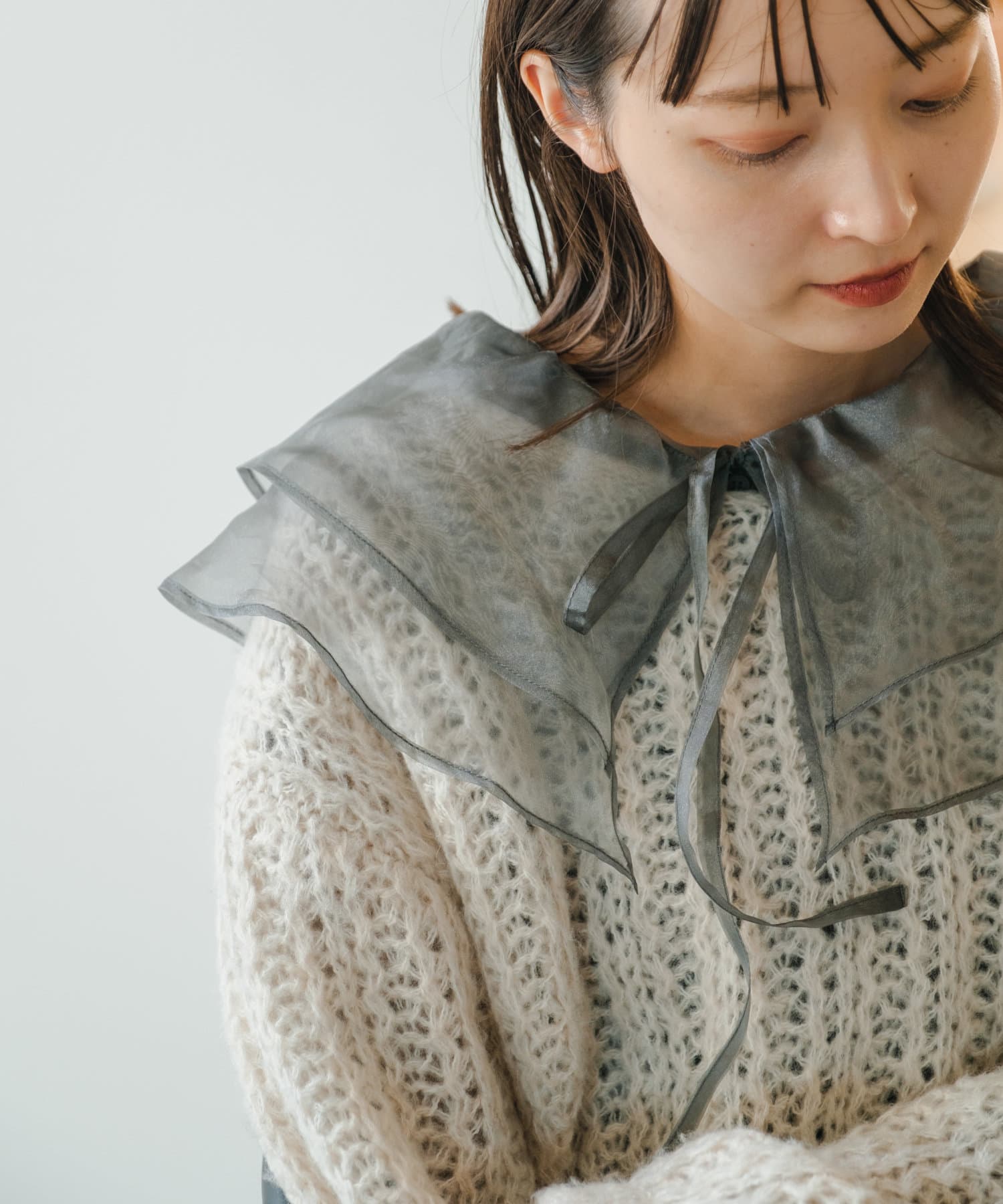 襟のフリルやリボンがアクセントとなり、女性らしさを与えてくれます。