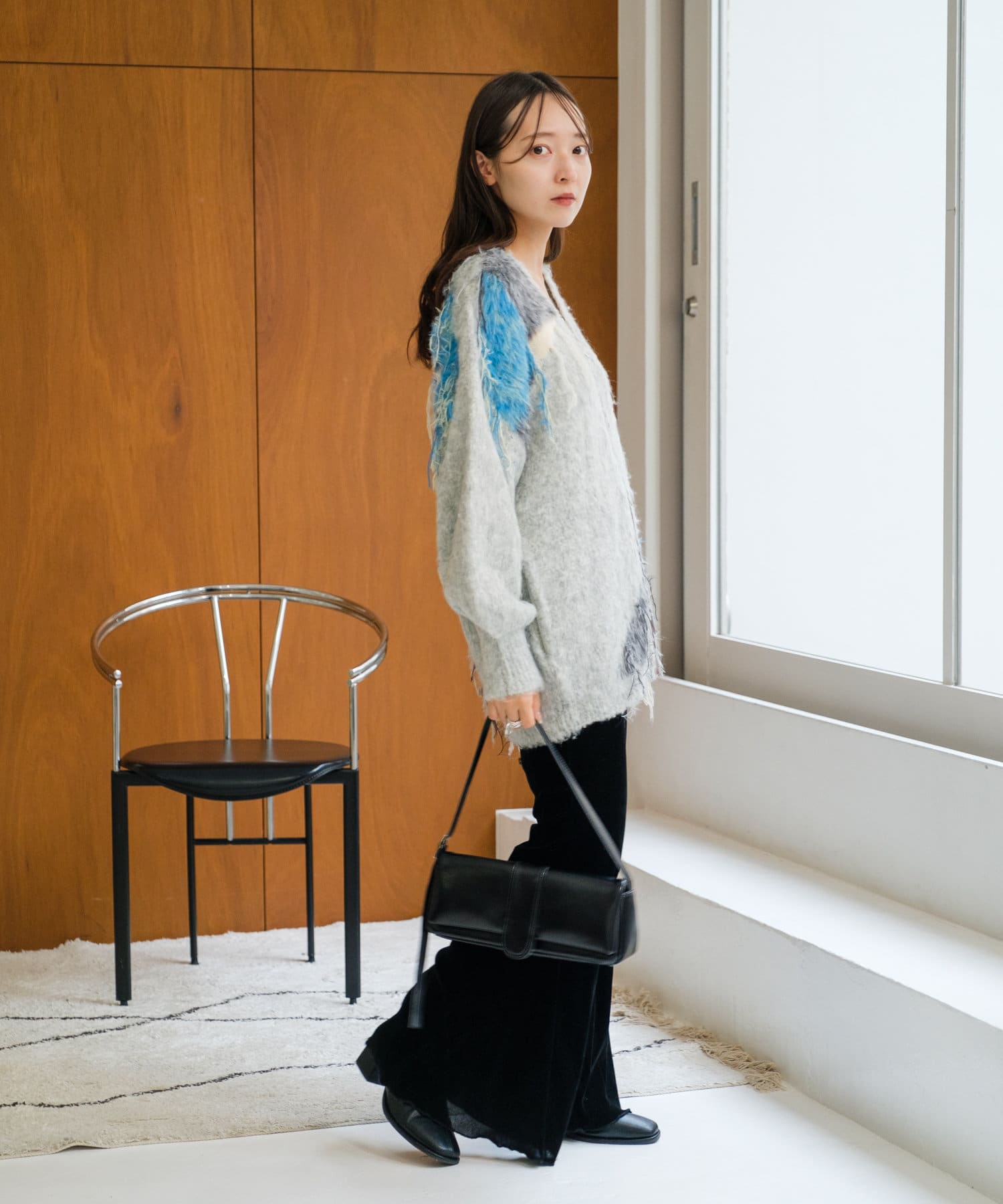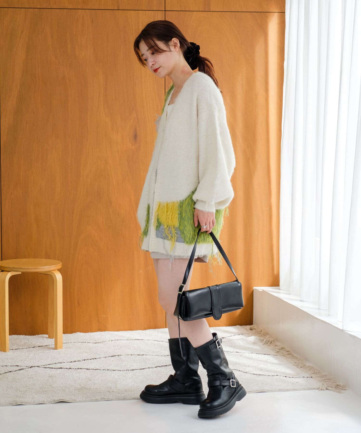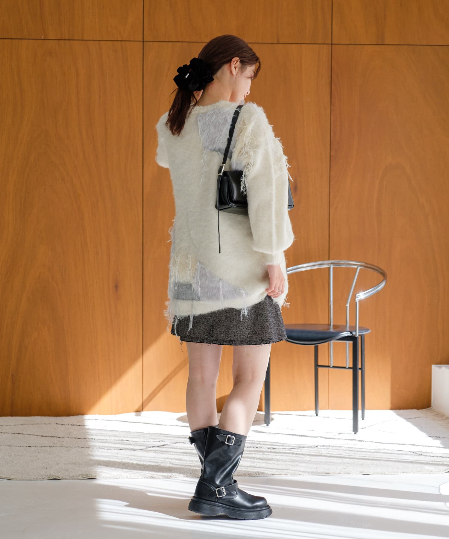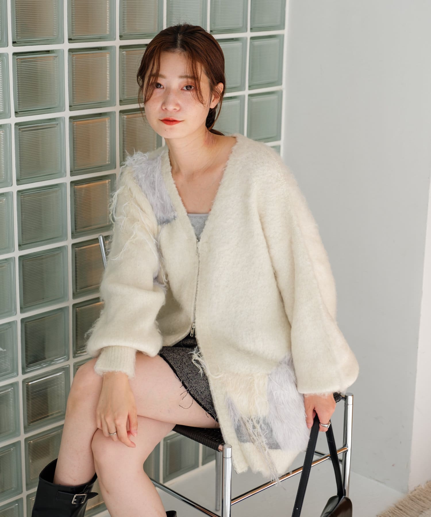 腰まですっぽり隠れるオーバーデザインなので、ミニ丈との相性◎