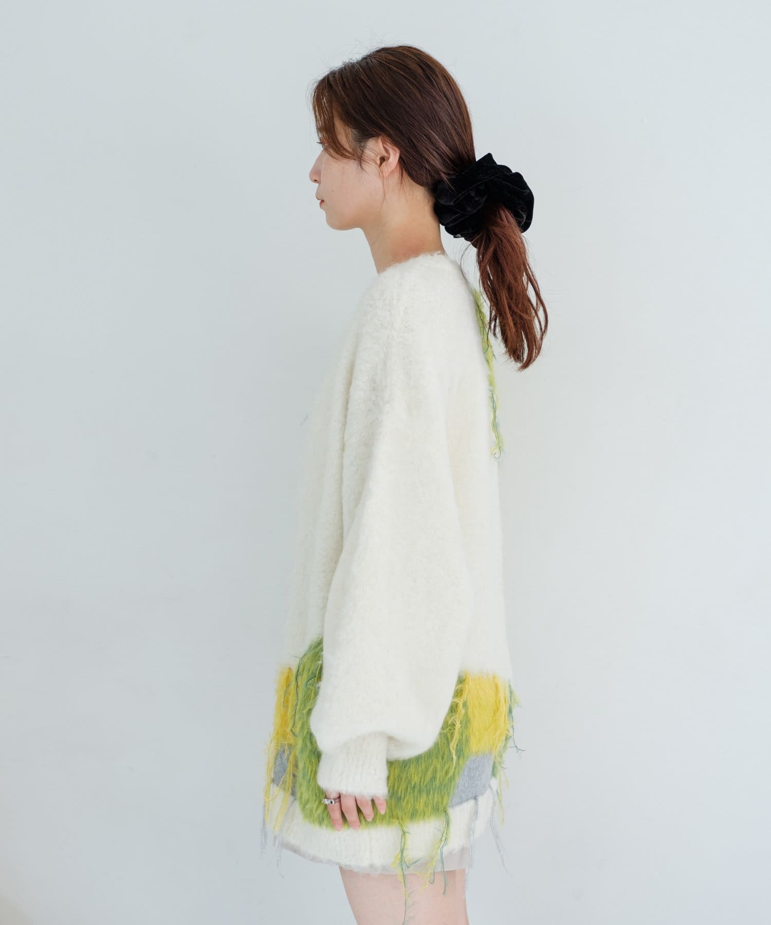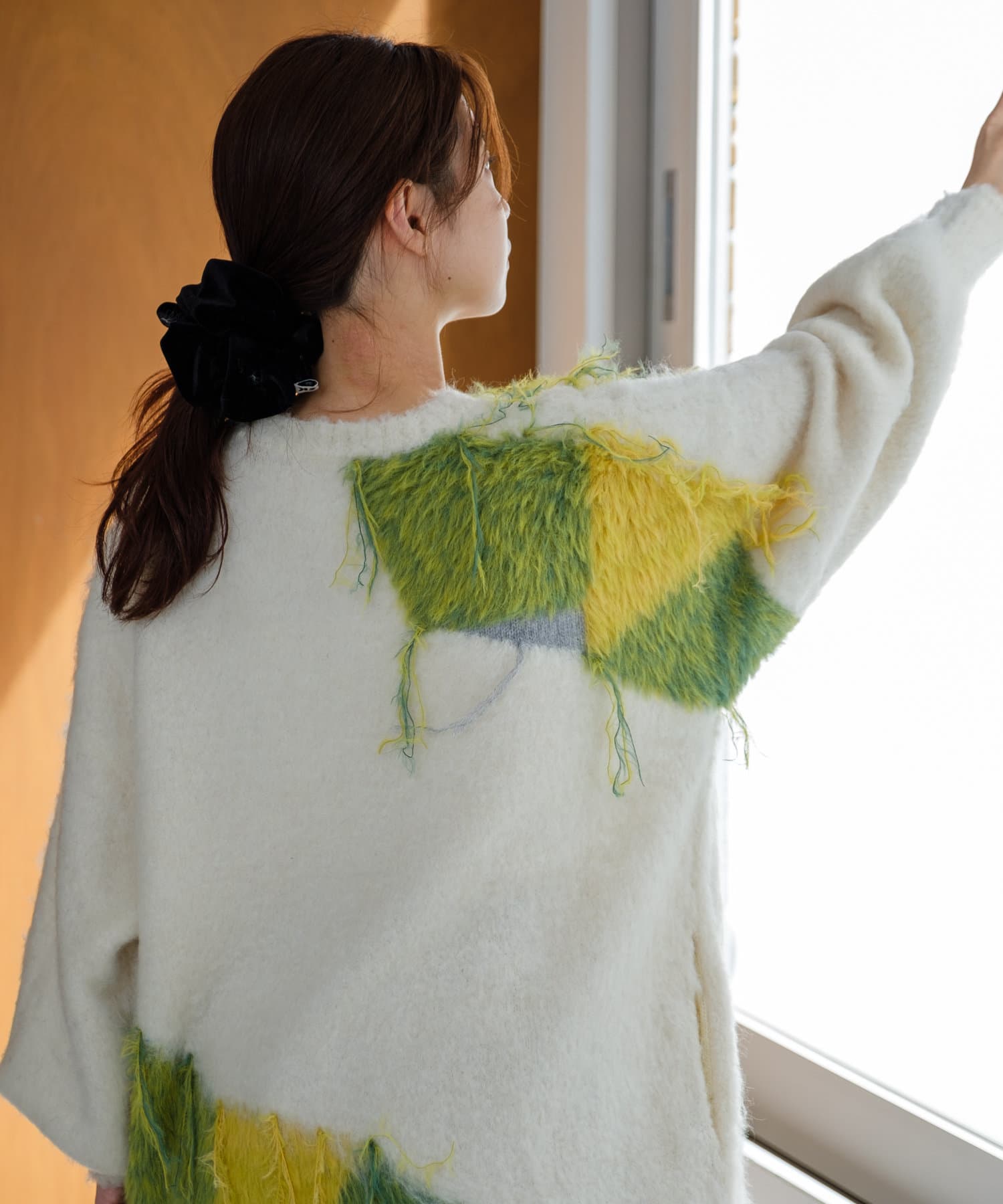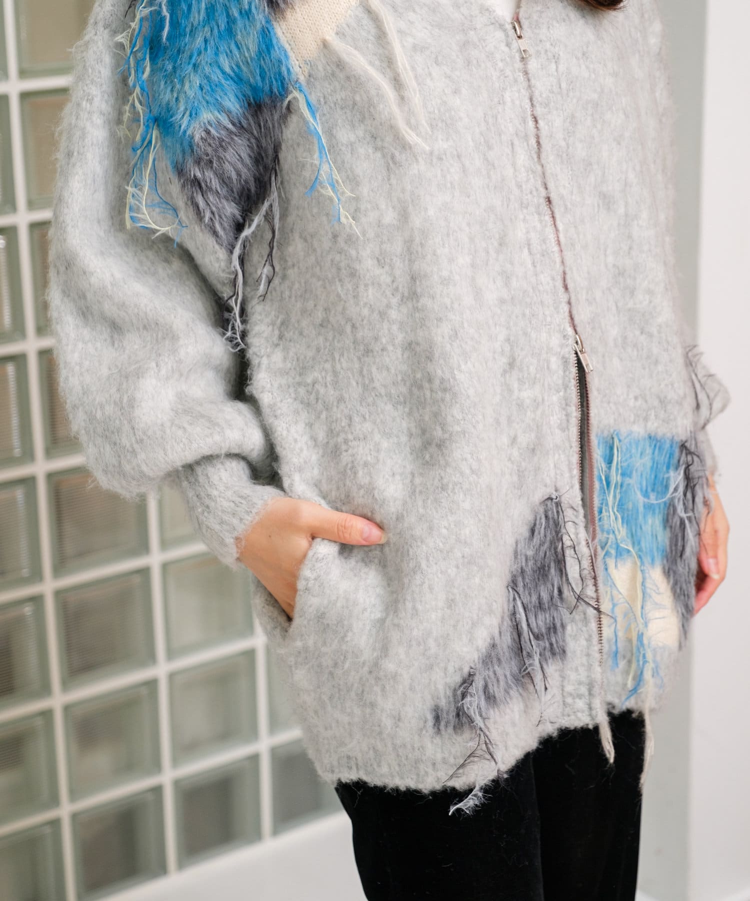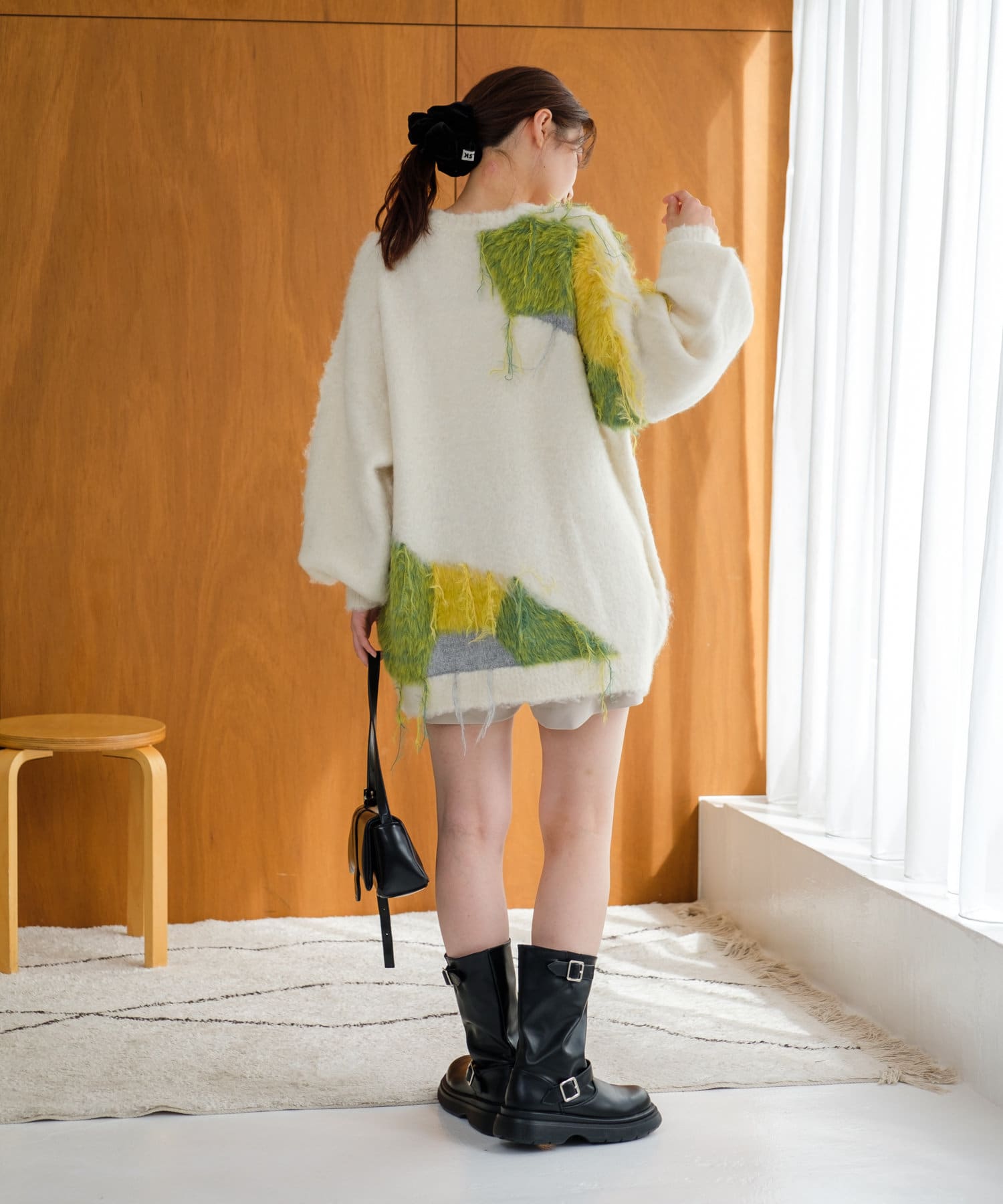 腰まですっぽり隠れるオーバーデザインなので、ミニ丈との相性◎