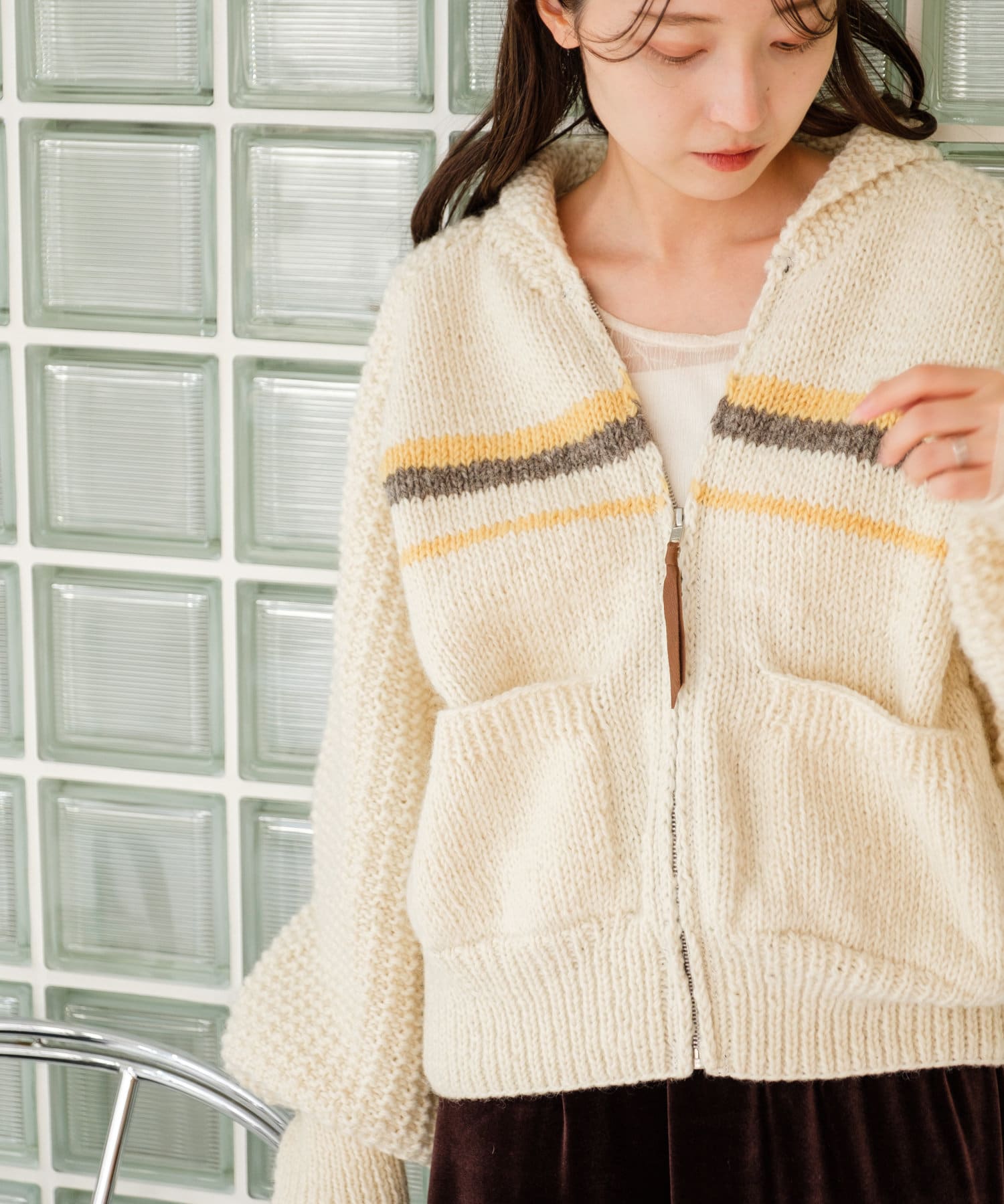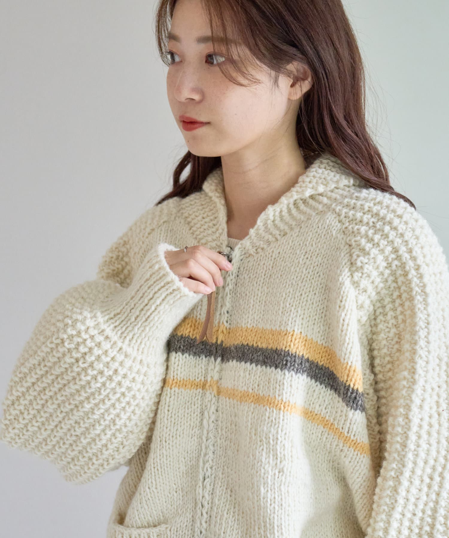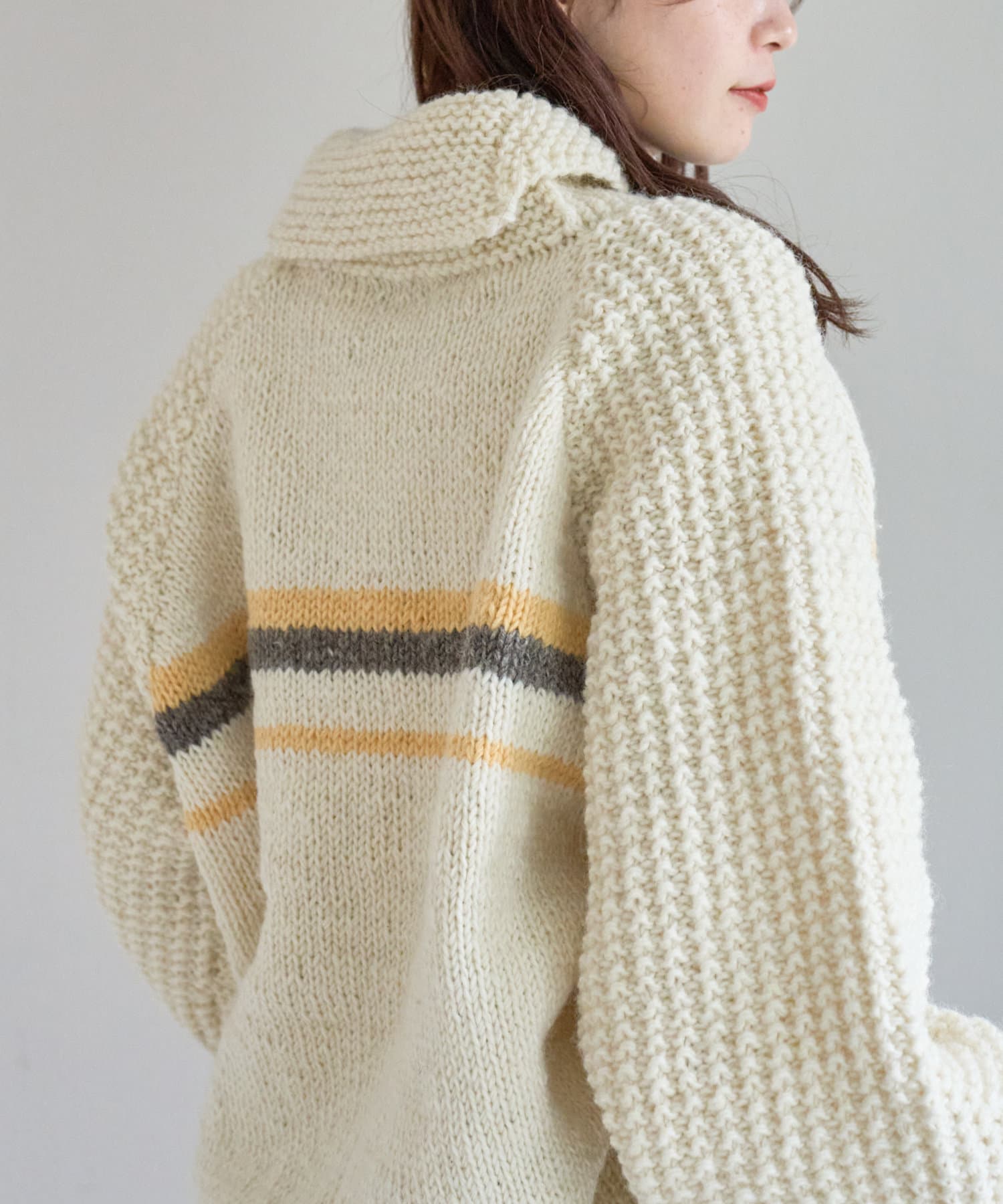 厚手でざっくりとした編み方が特徴的なカウチンニット。