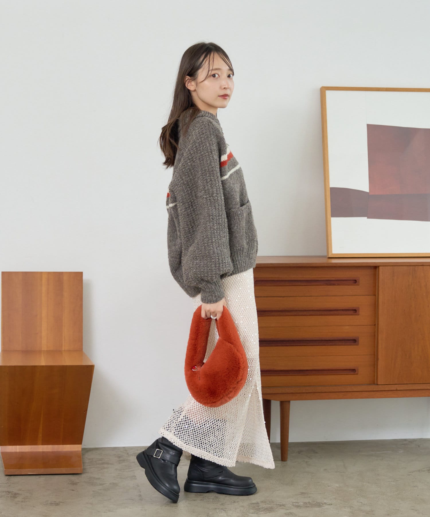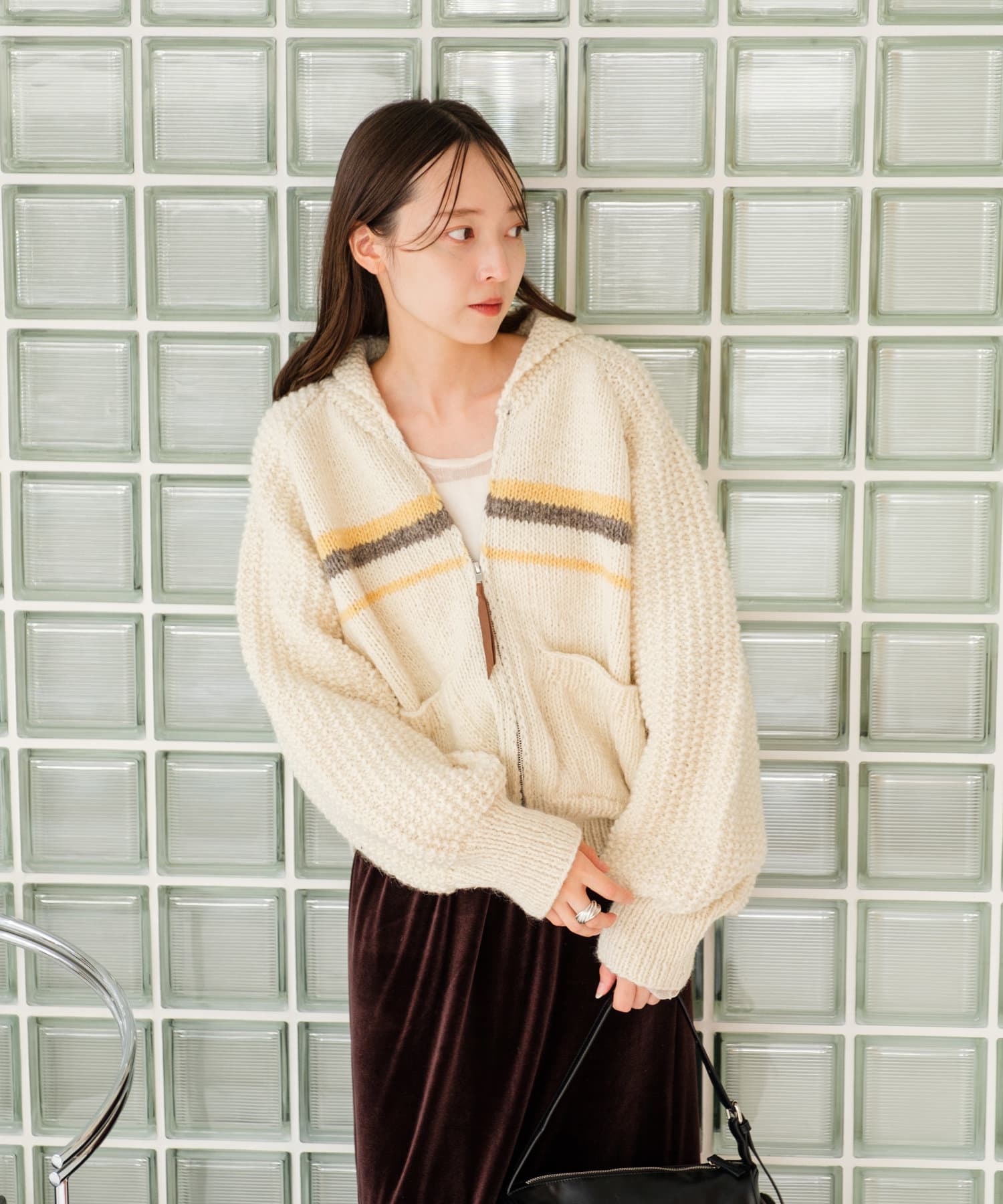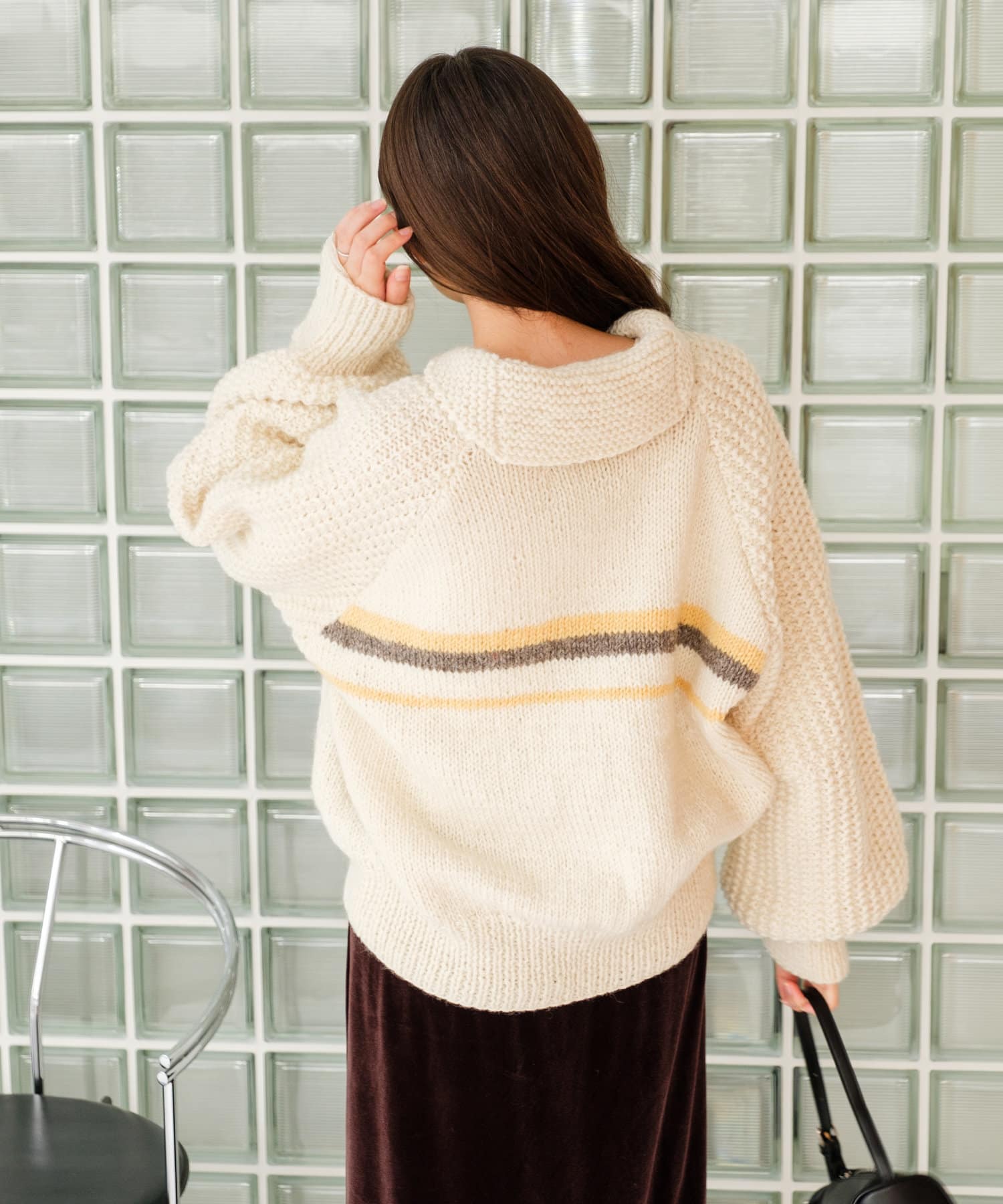 厚手でざっくりとした編み方が特徴的なカウチンニット。