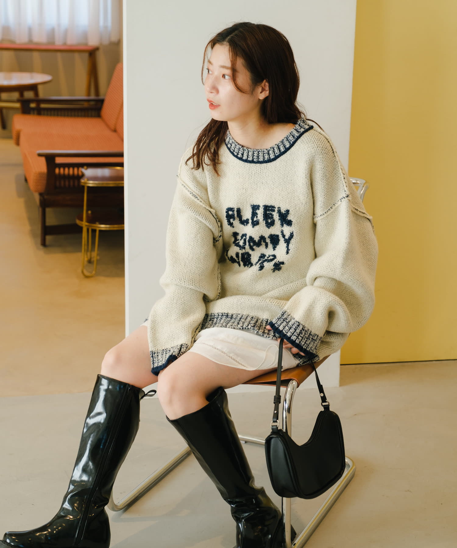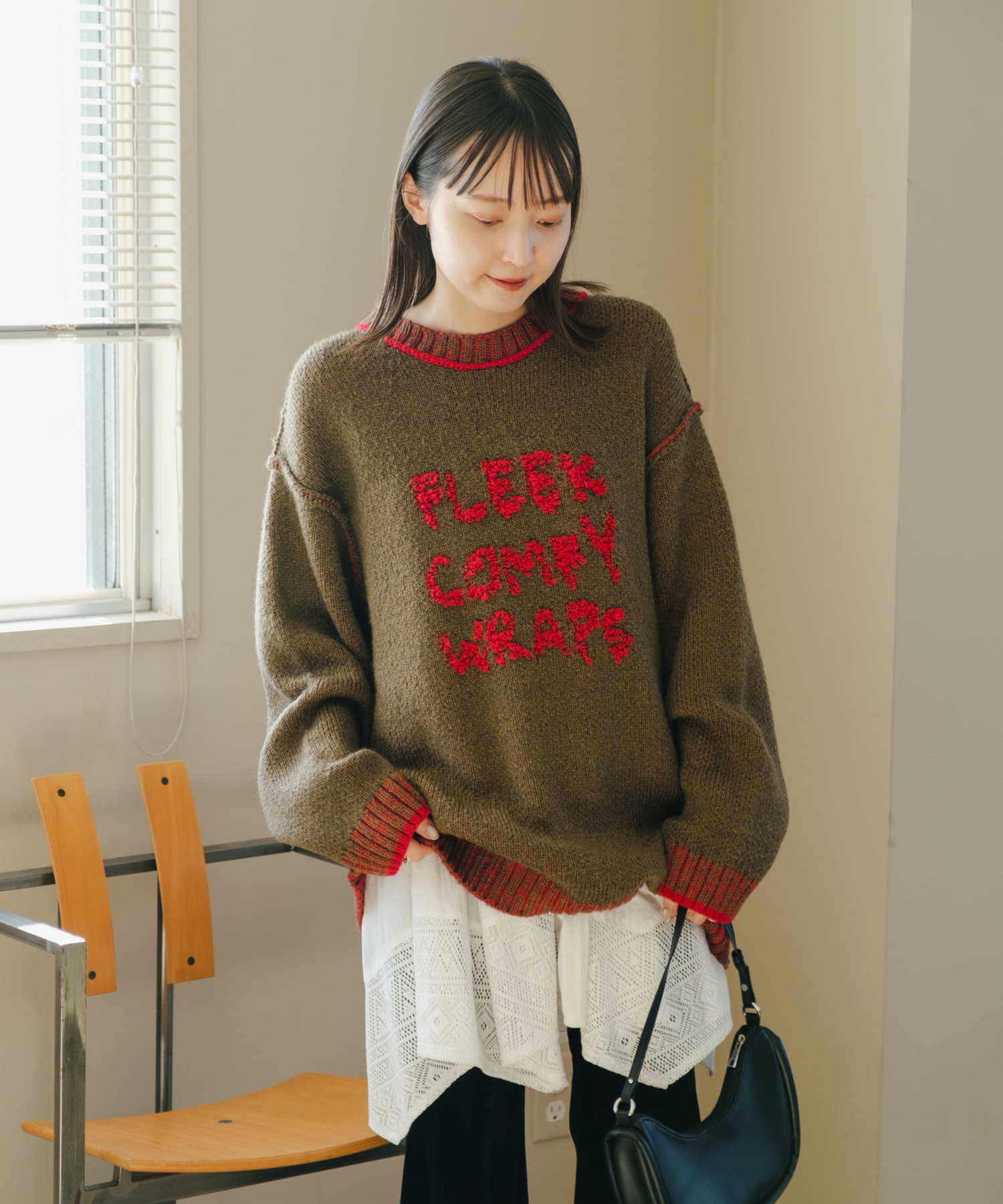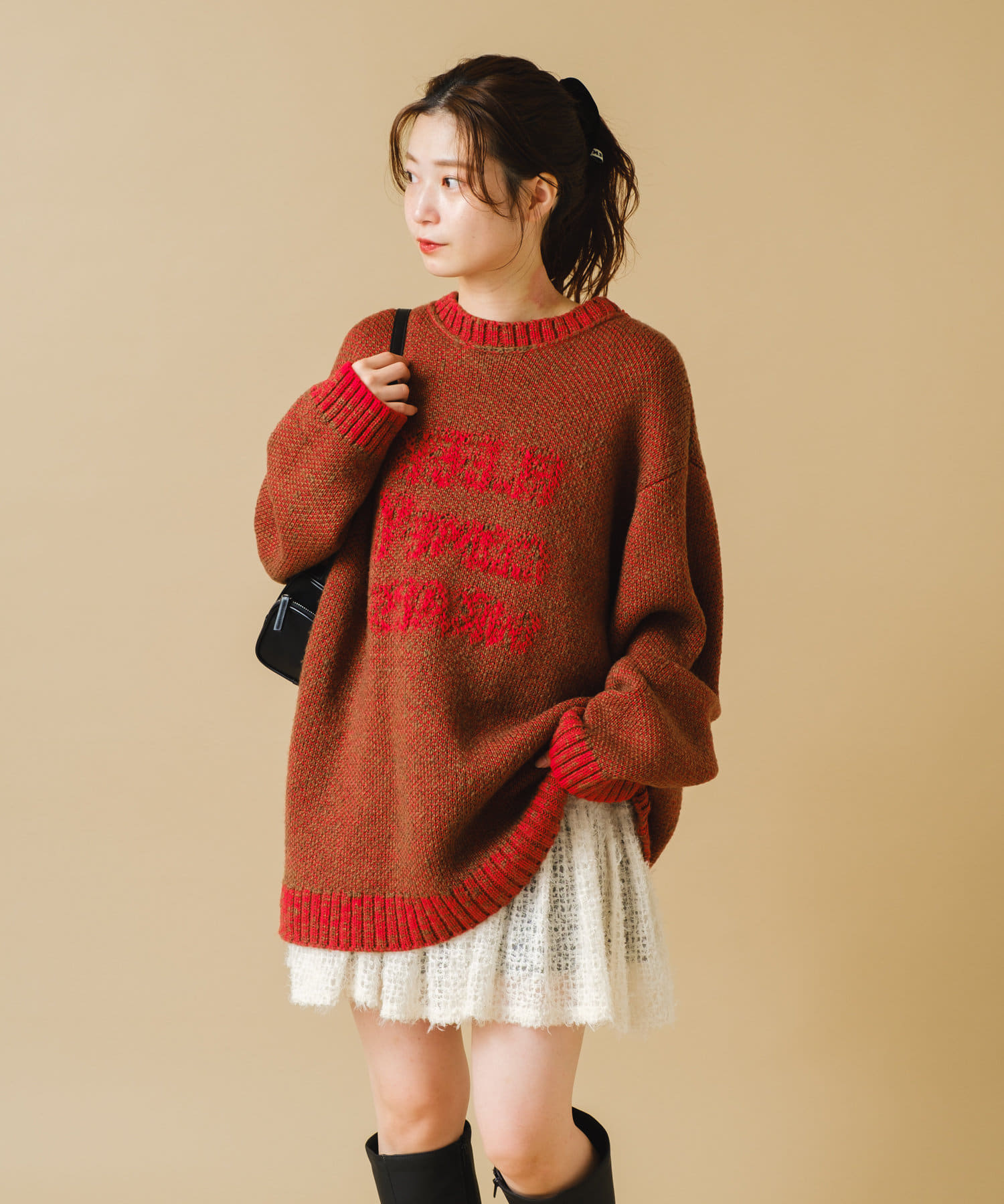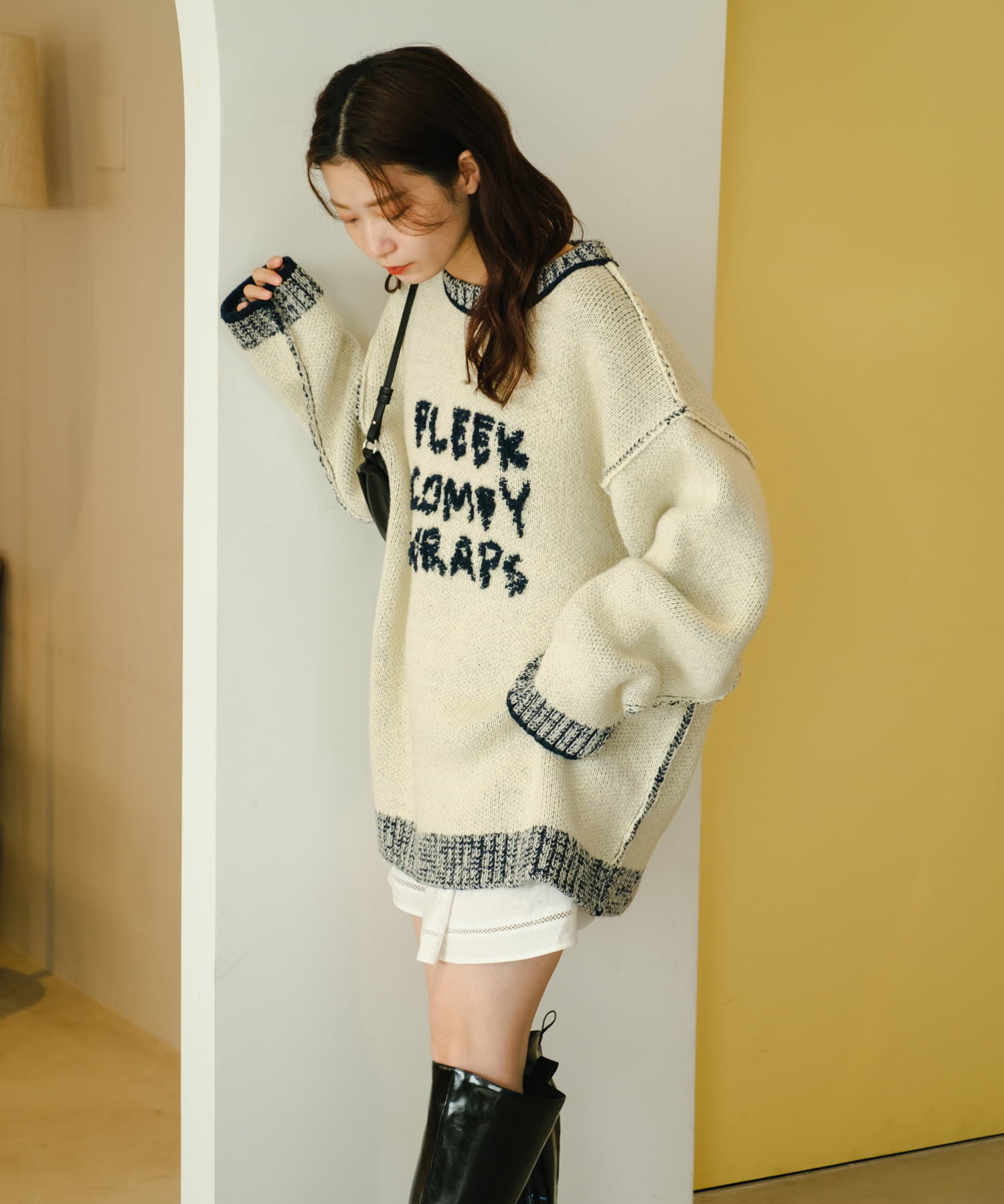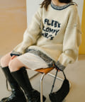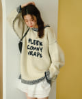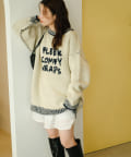 ふわふわとした質感の立体的なロゴが目を惹くニット。