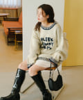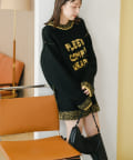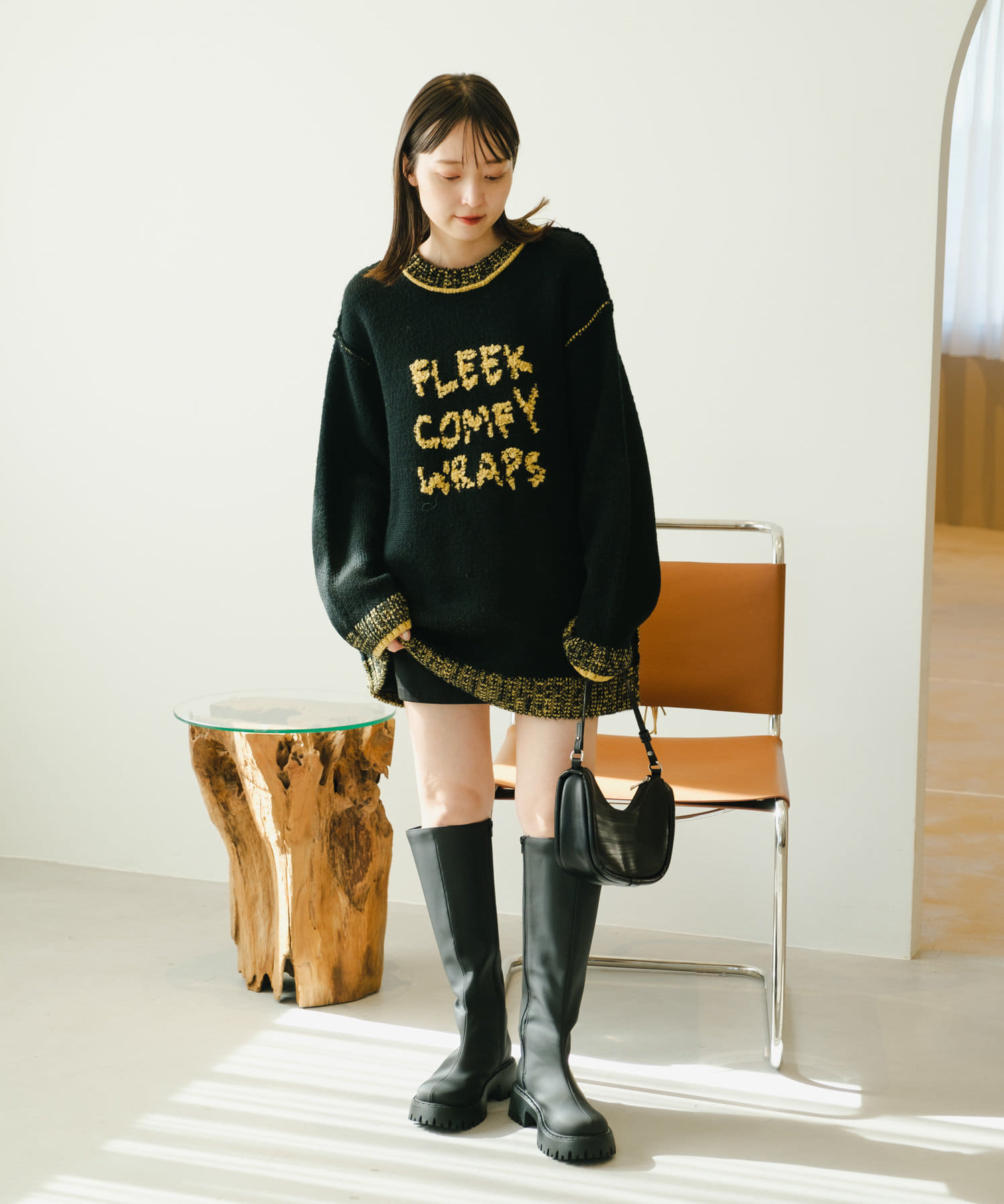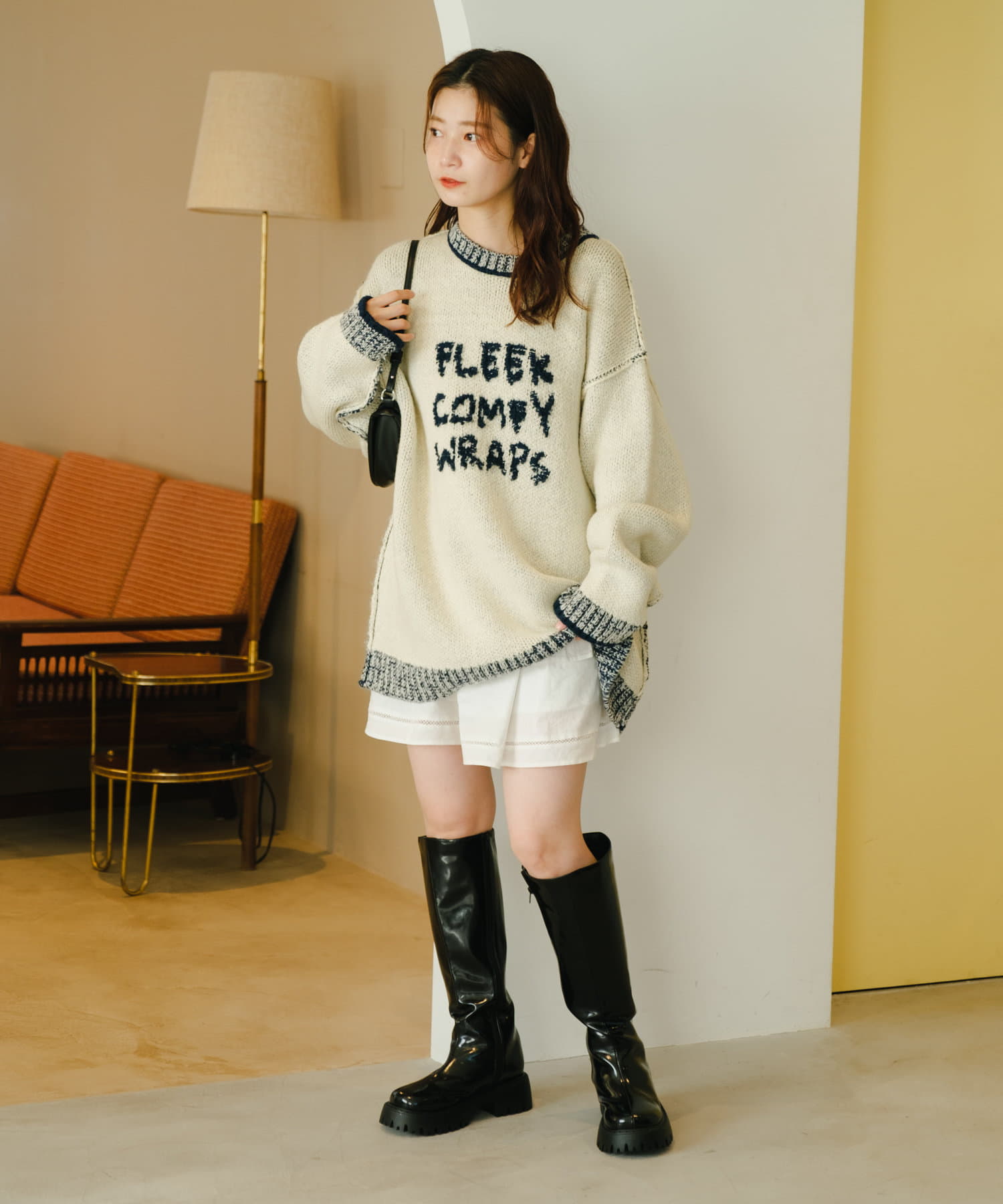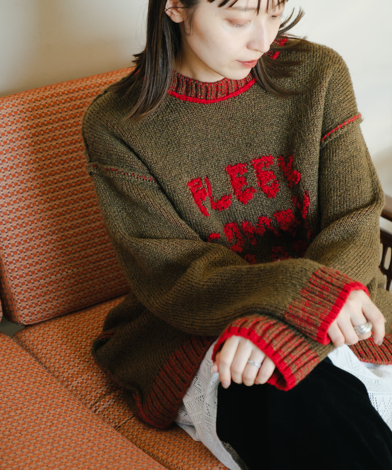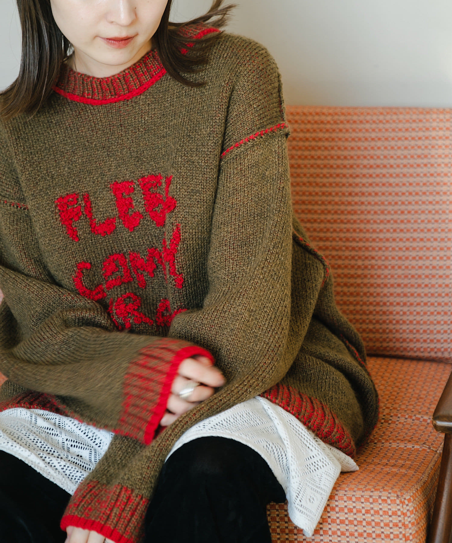 ふわふわとした質感の立体的なロゴが目を惹くニット。