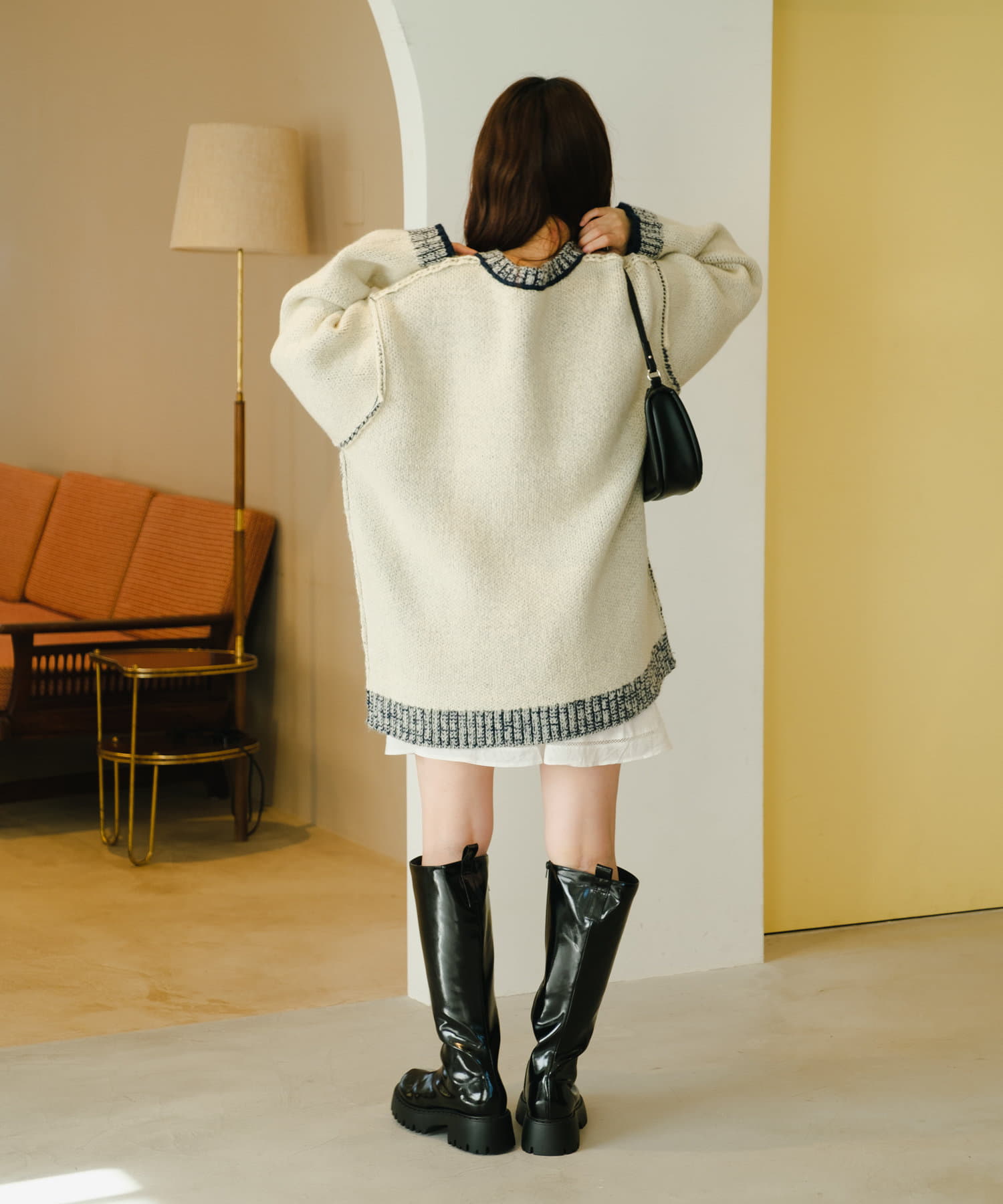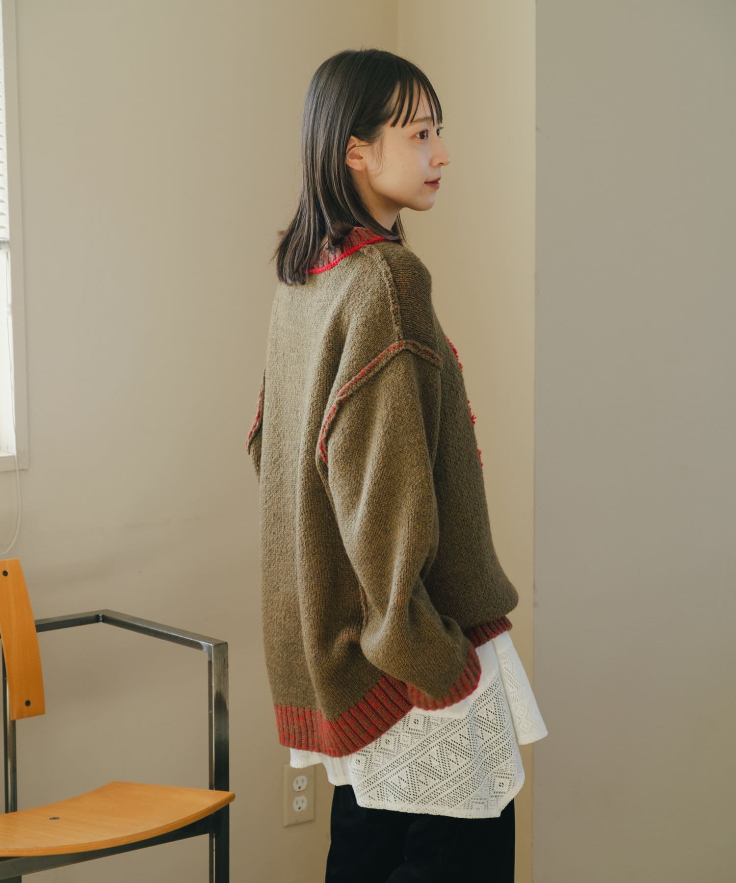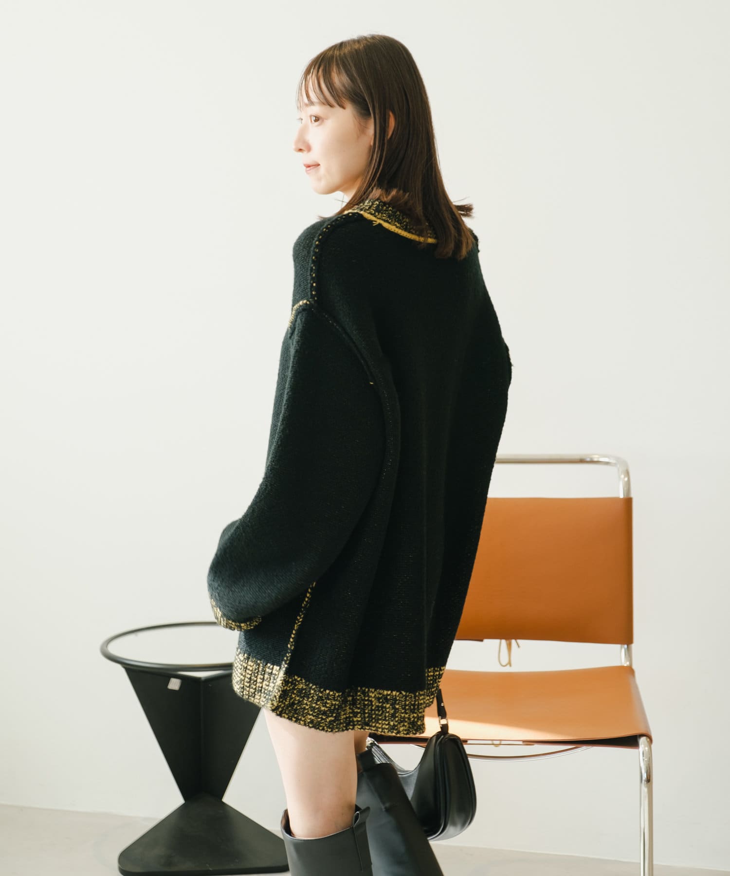 リバーシブル仕様なので、一枚のニットで雰囲気変えて楽しめます。