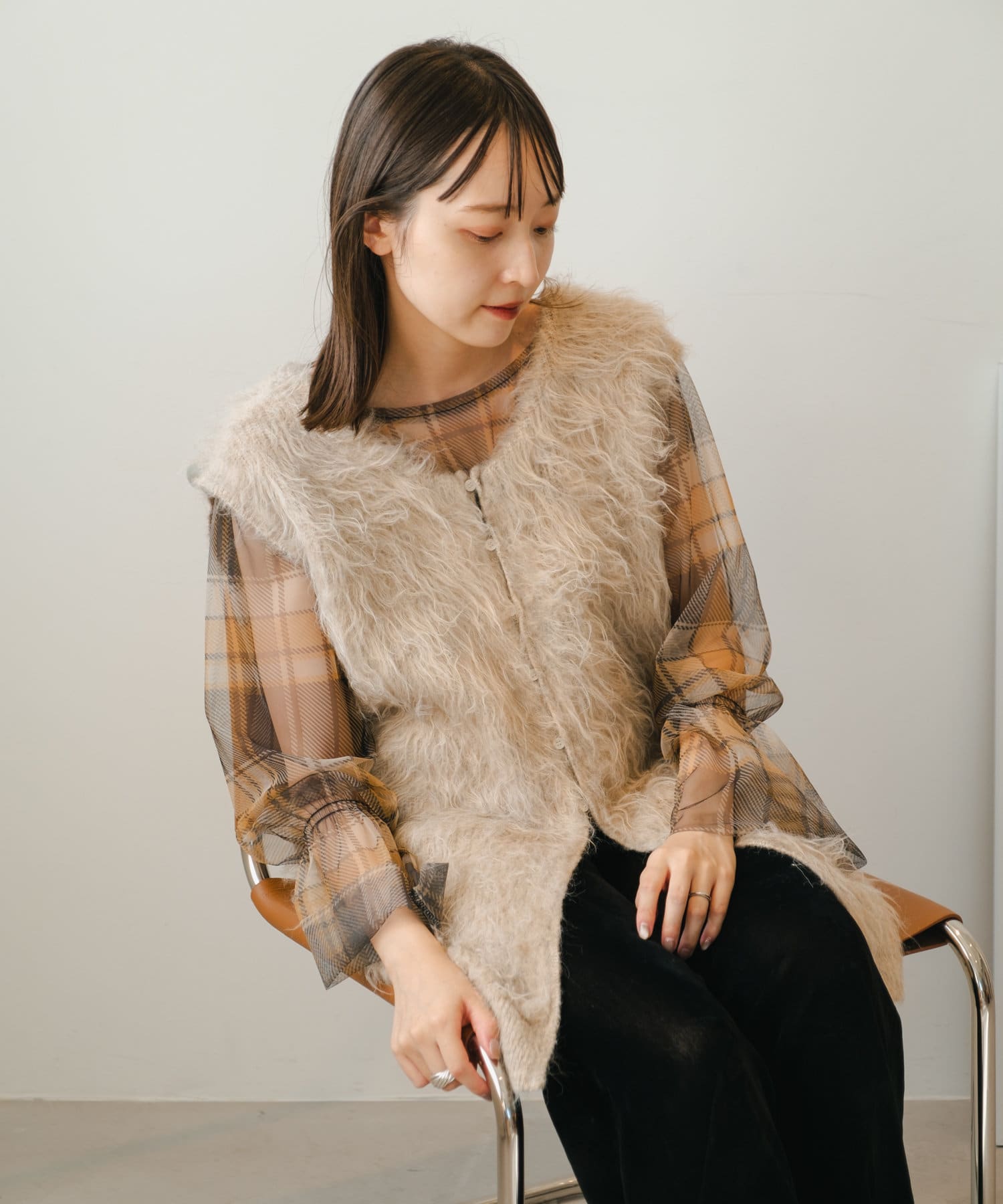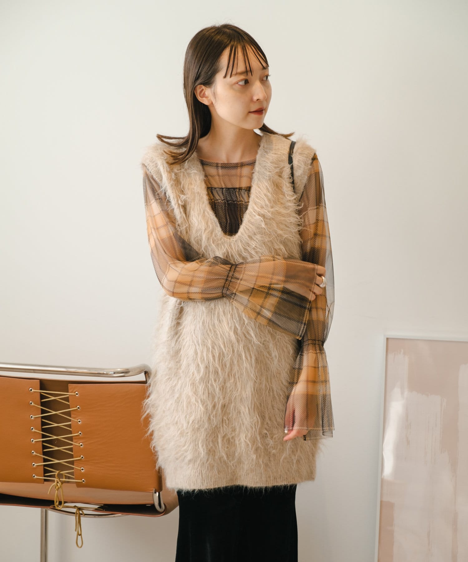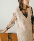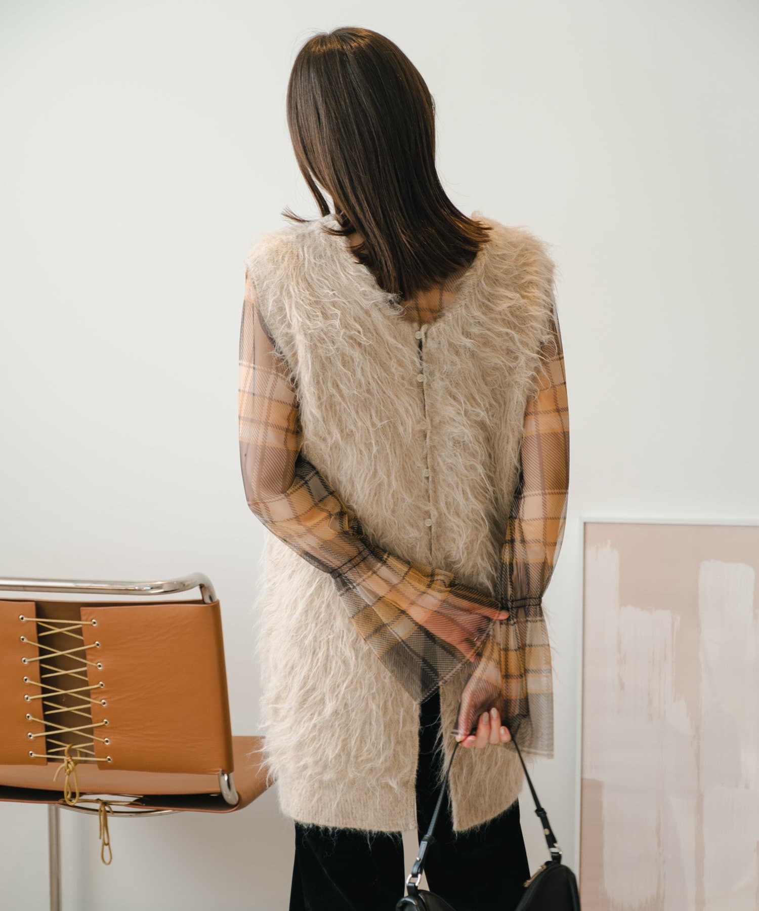 ふんわりとしたシャギー素材が魅力のロングベスト