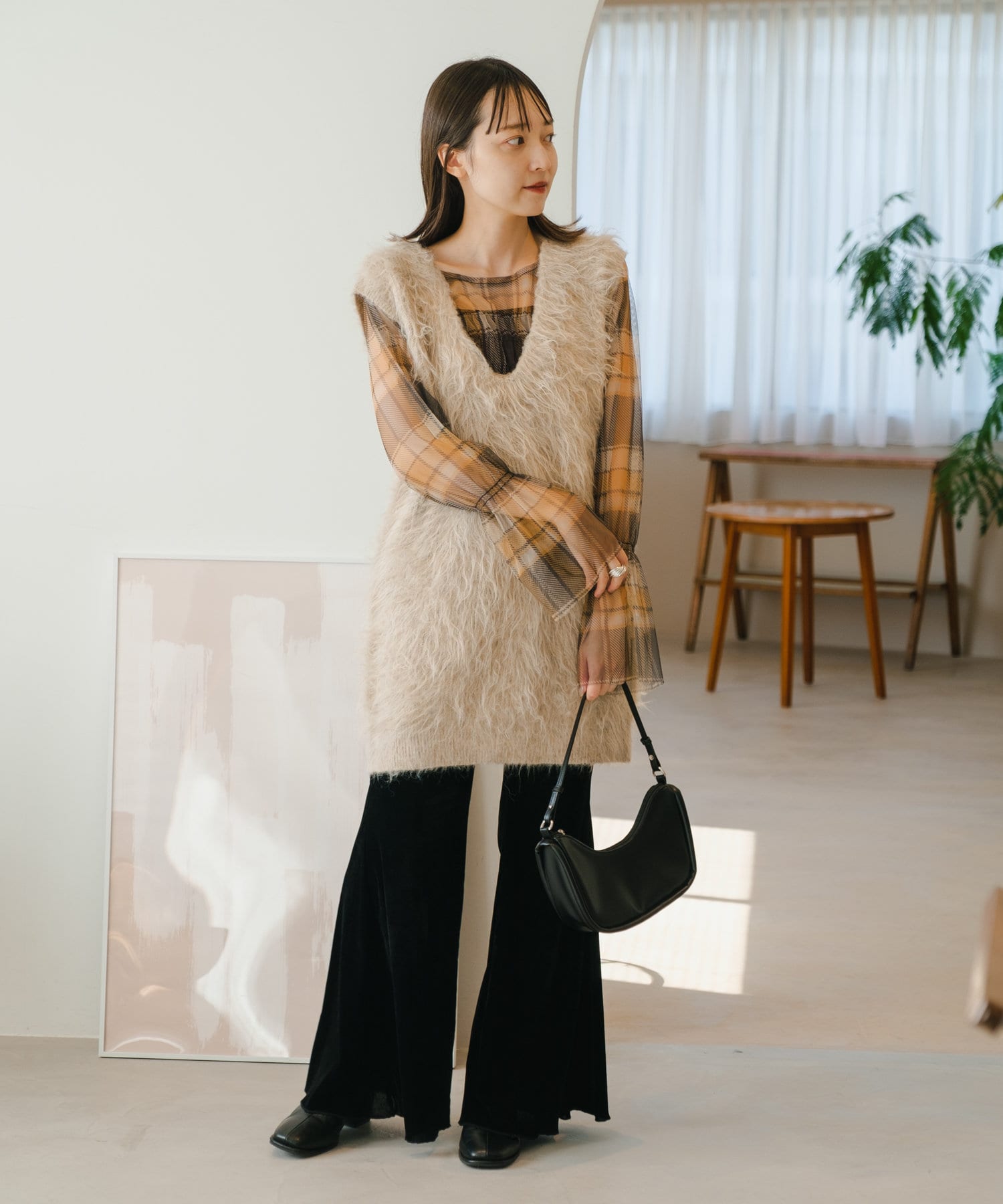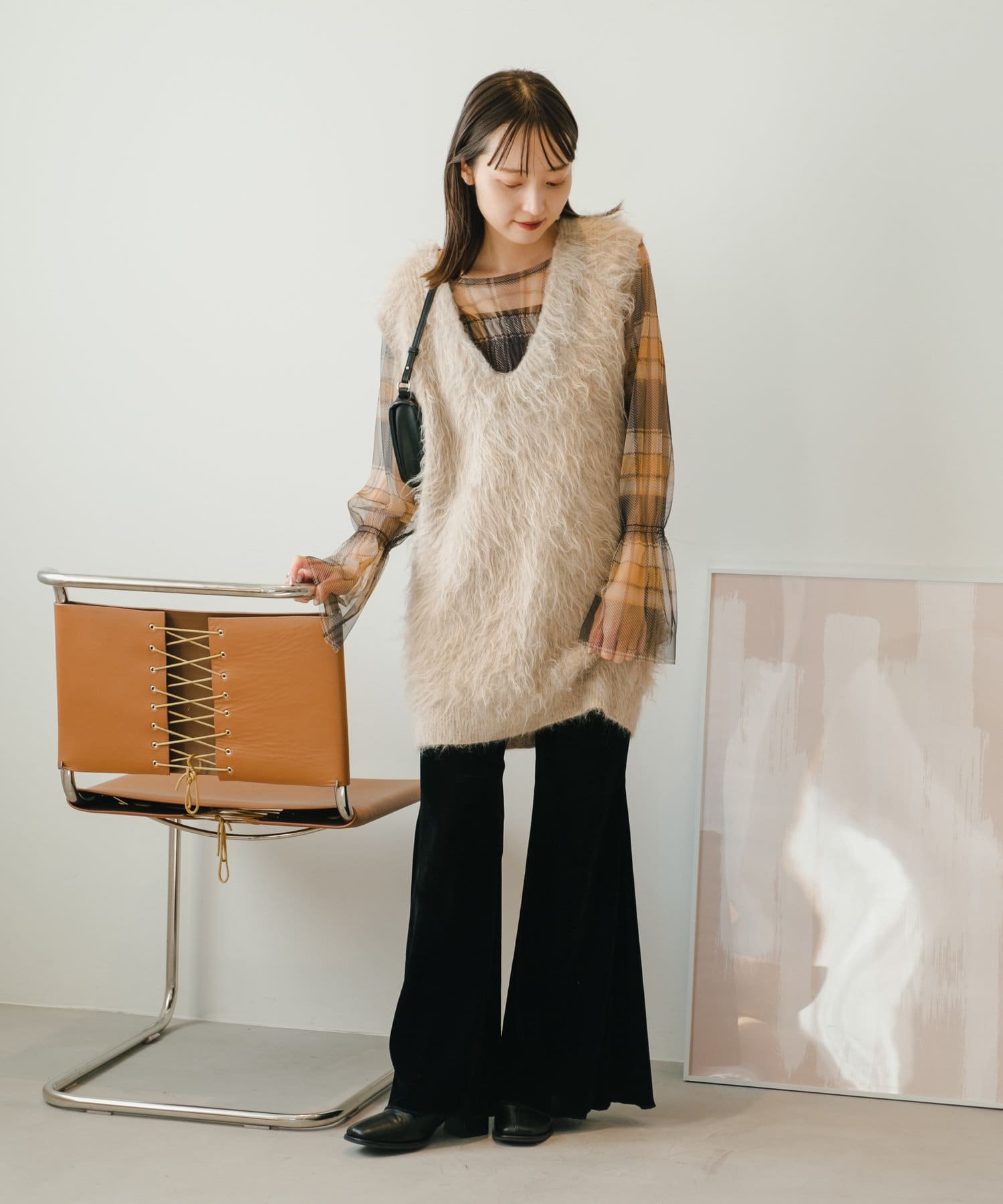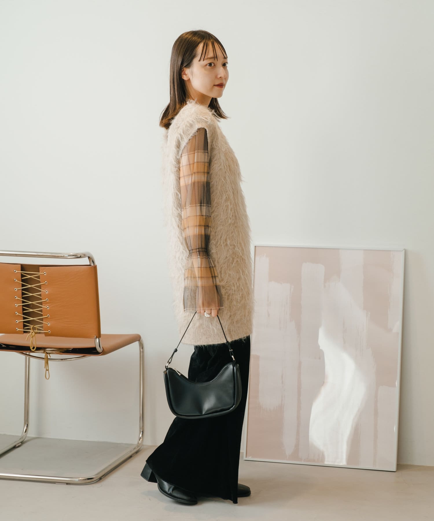 ふんわりとしたシャギー素材が魅力のロングベスト