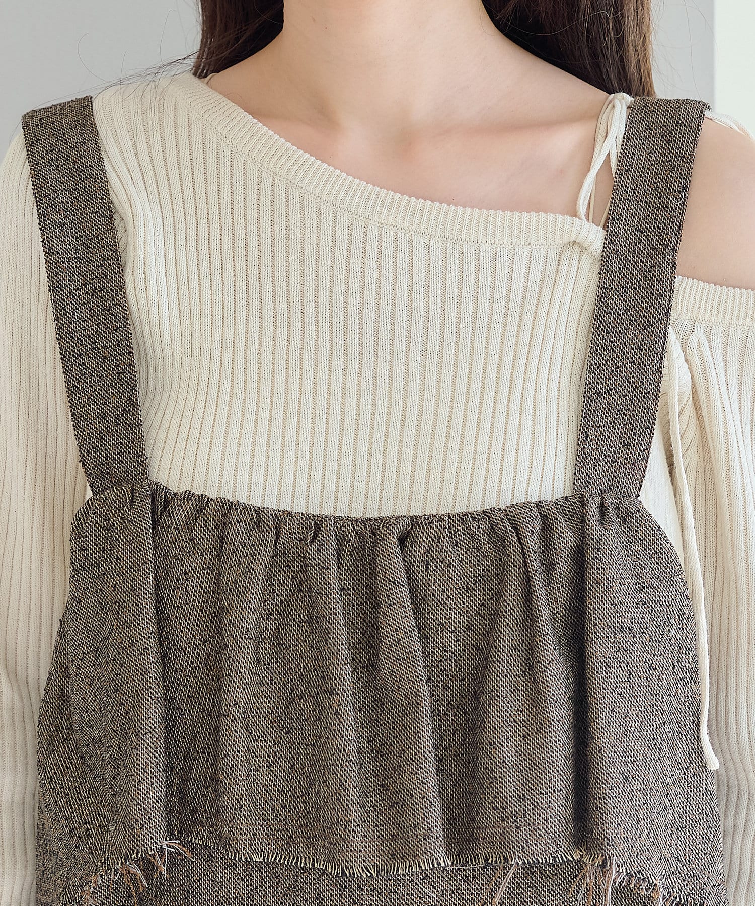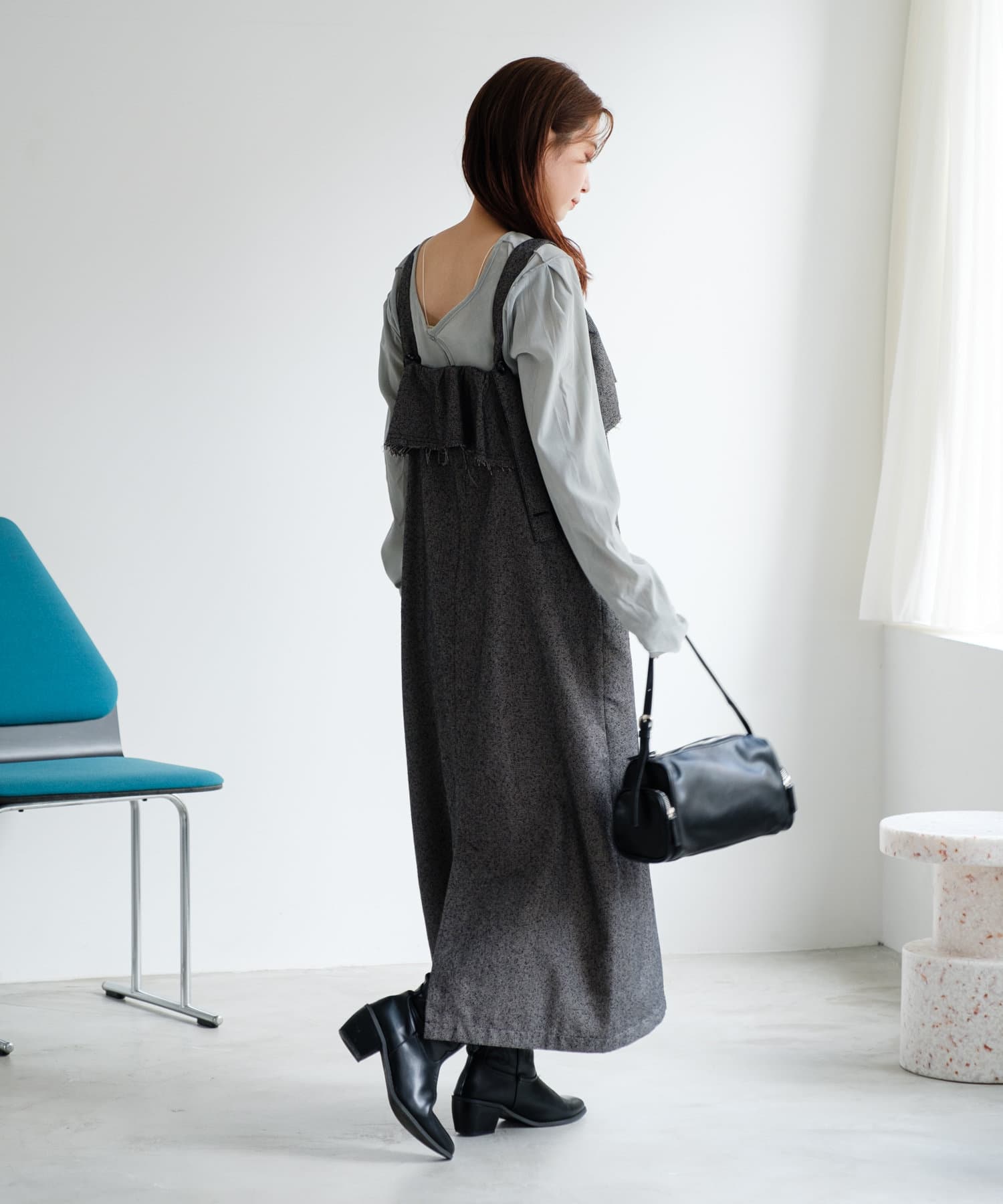 前後2wayで着れるのはもちろん、肩紐外してワンショルダーにも。
