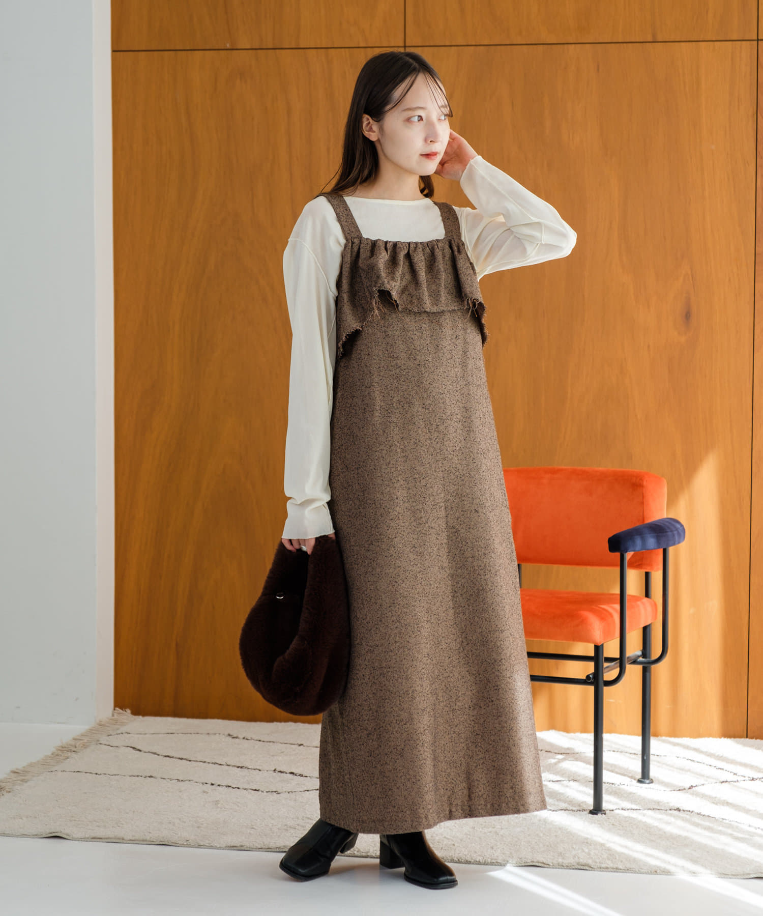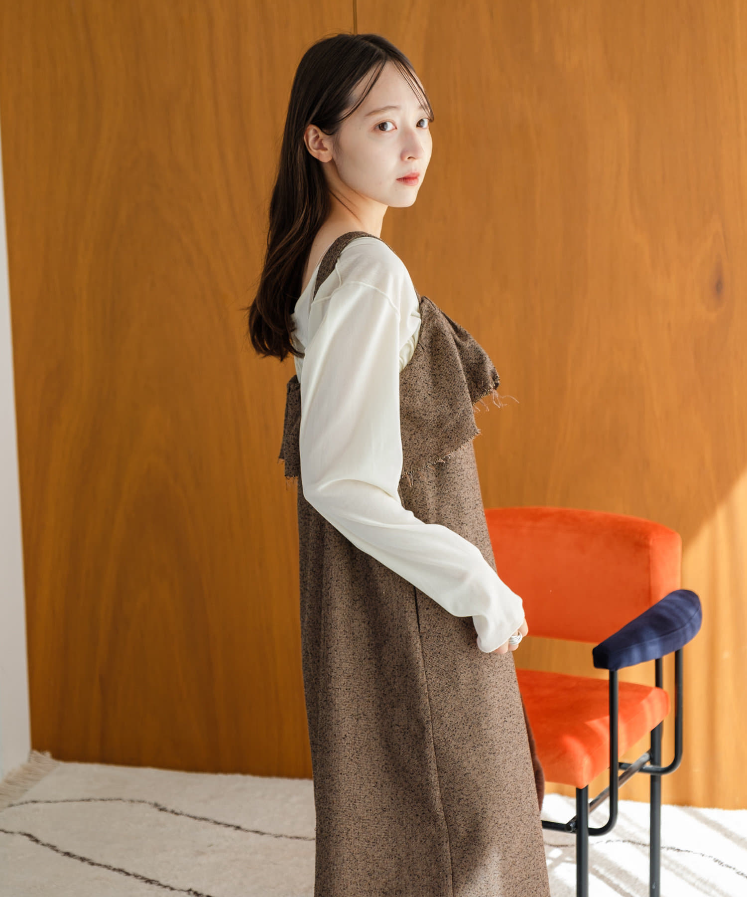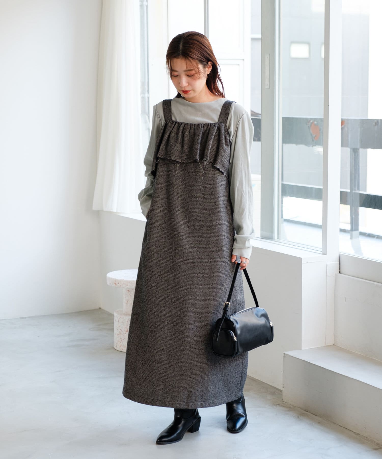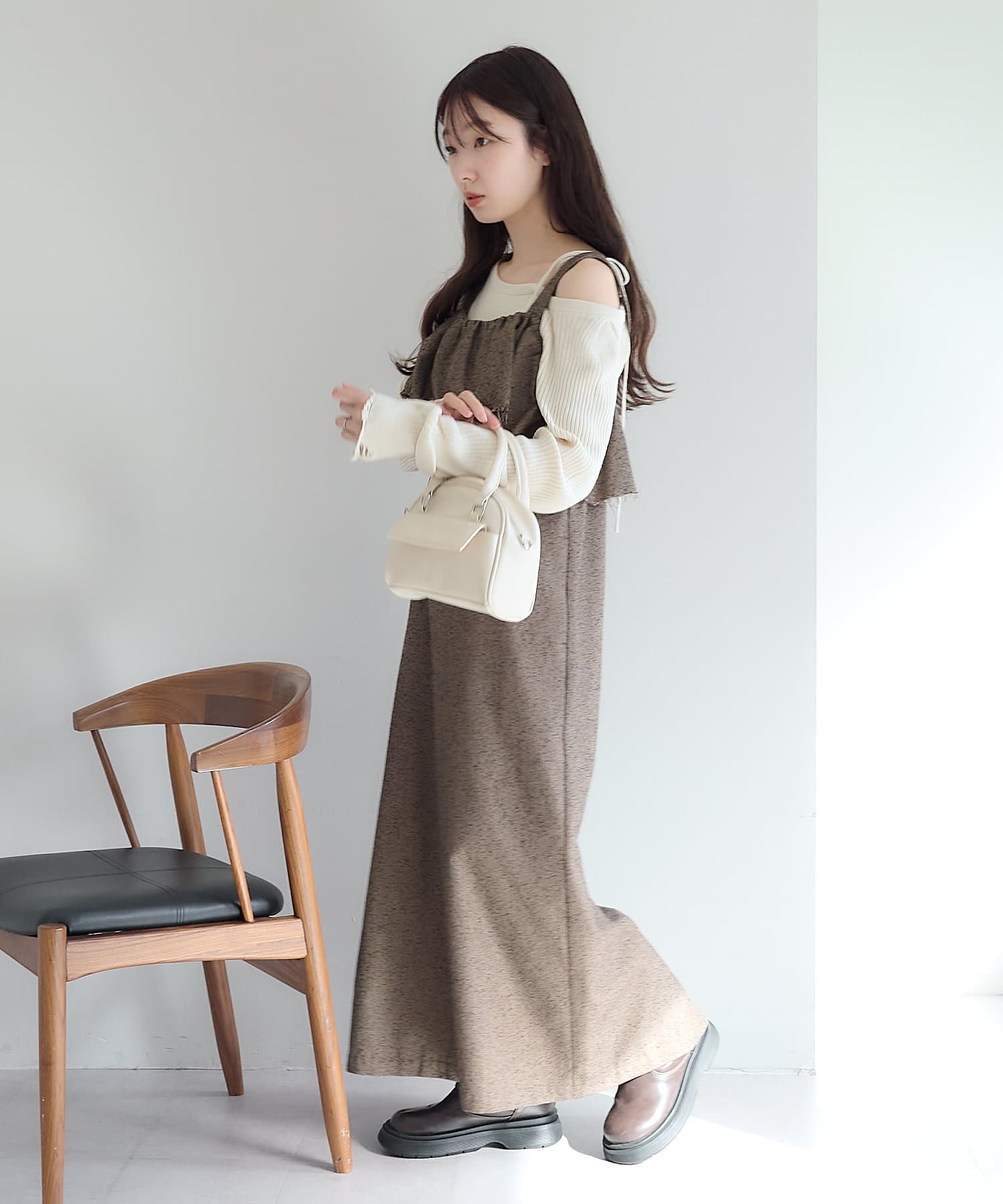 ひとつのアイテムで色んな着方が楽しめる万能ワンピです。