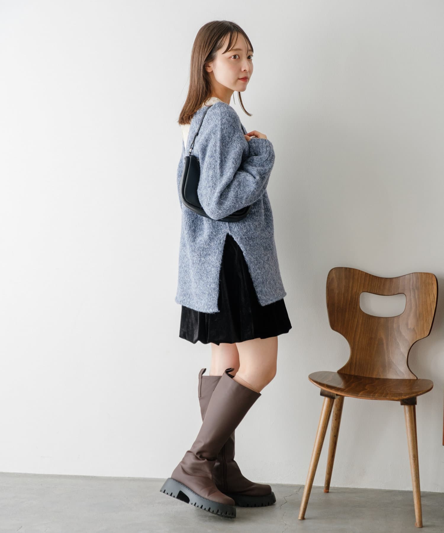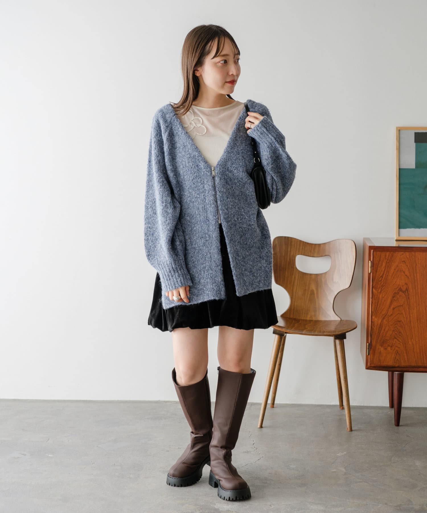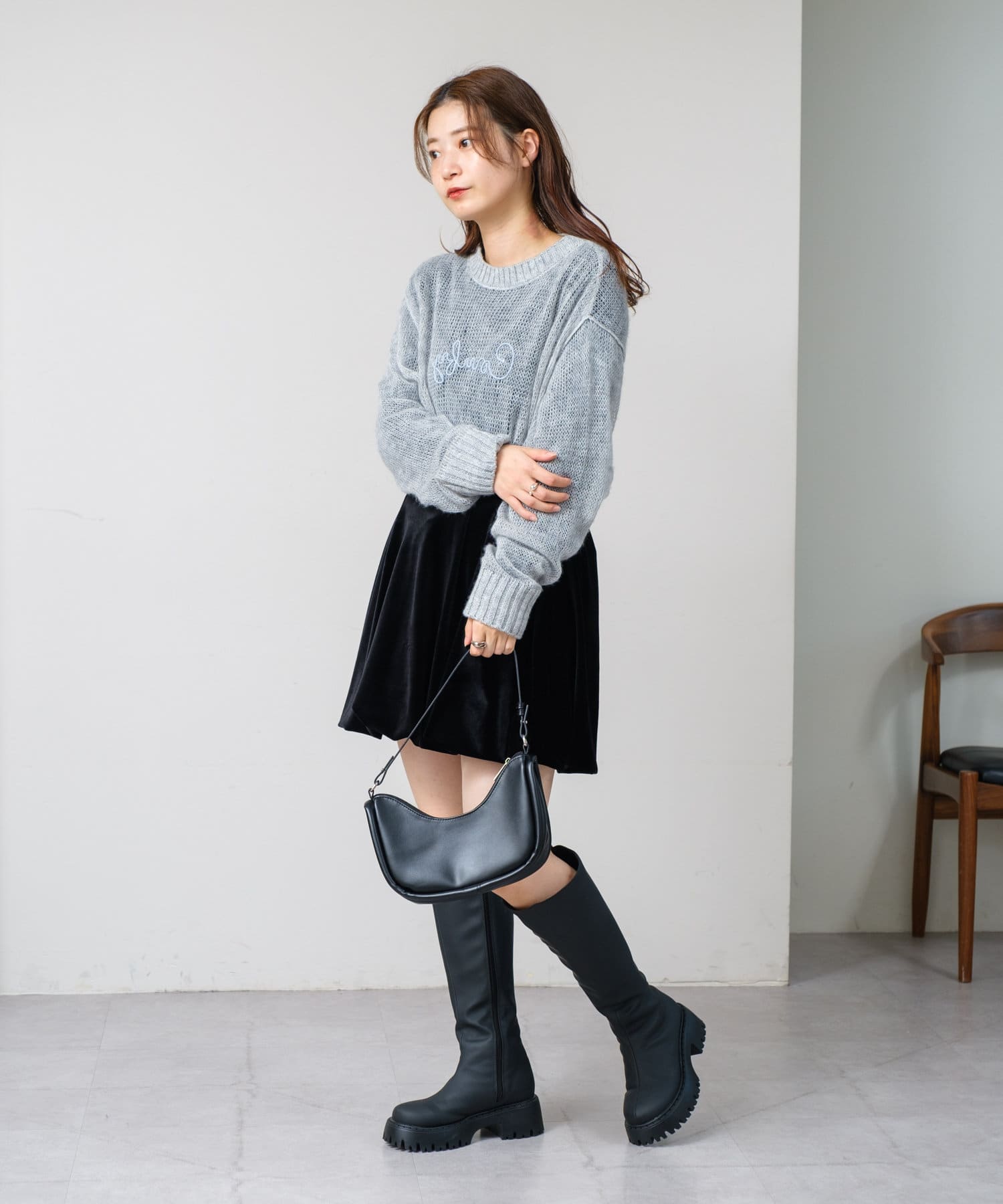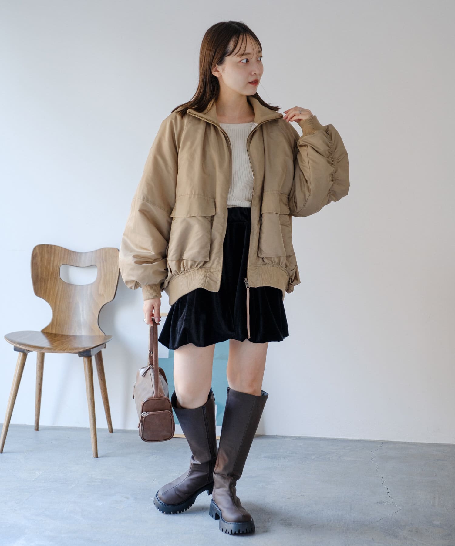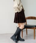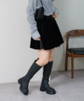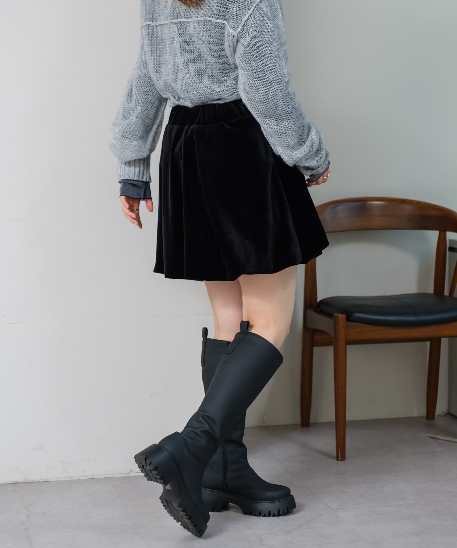 ベロア素材を使用したバルーンシルエットのミニスカート。