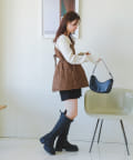 ハイネックのリブニットと合わせることで、上品かつ女性らしい印象に。