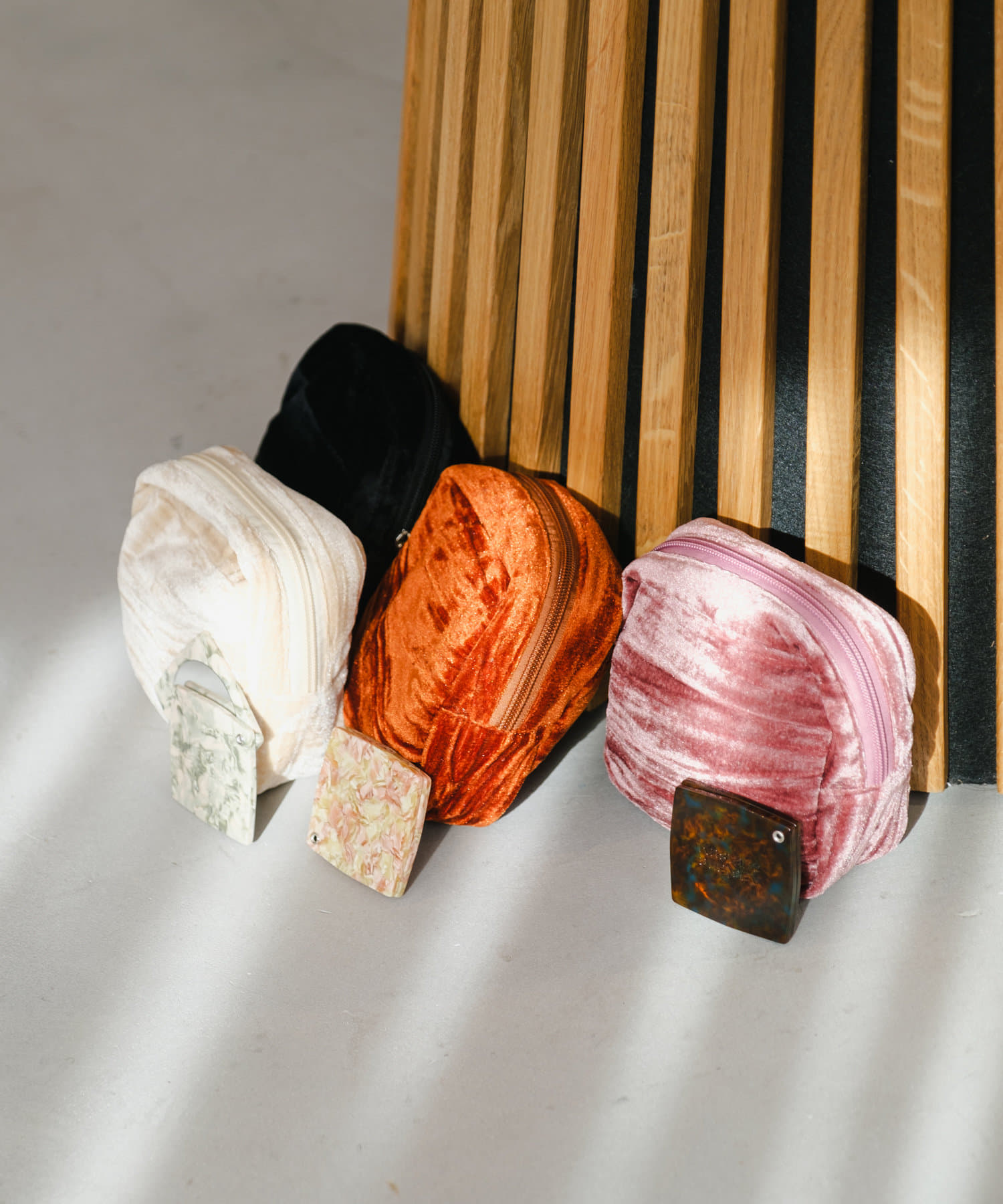 高級感のあるベロア素材なので光沢感が美しく、手にした時の肌触りが心地よい仕上がりになっています。
