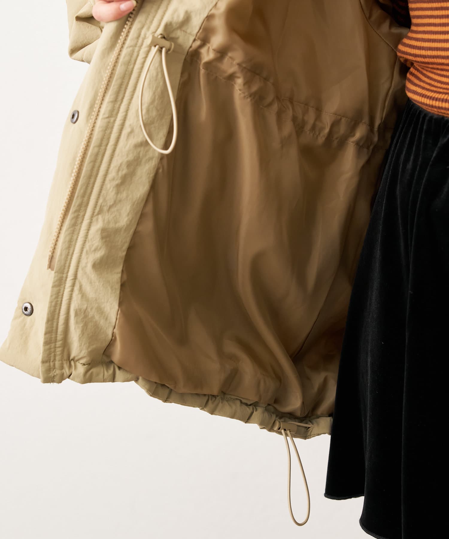 素材:【ブラック,ベージュ(表地)】ナイロン100%【ブラック,ベージュ(裏地/中綿)】ポリエステル100%【レオパード(表地/裏地/中綿)】ポリエステル100%