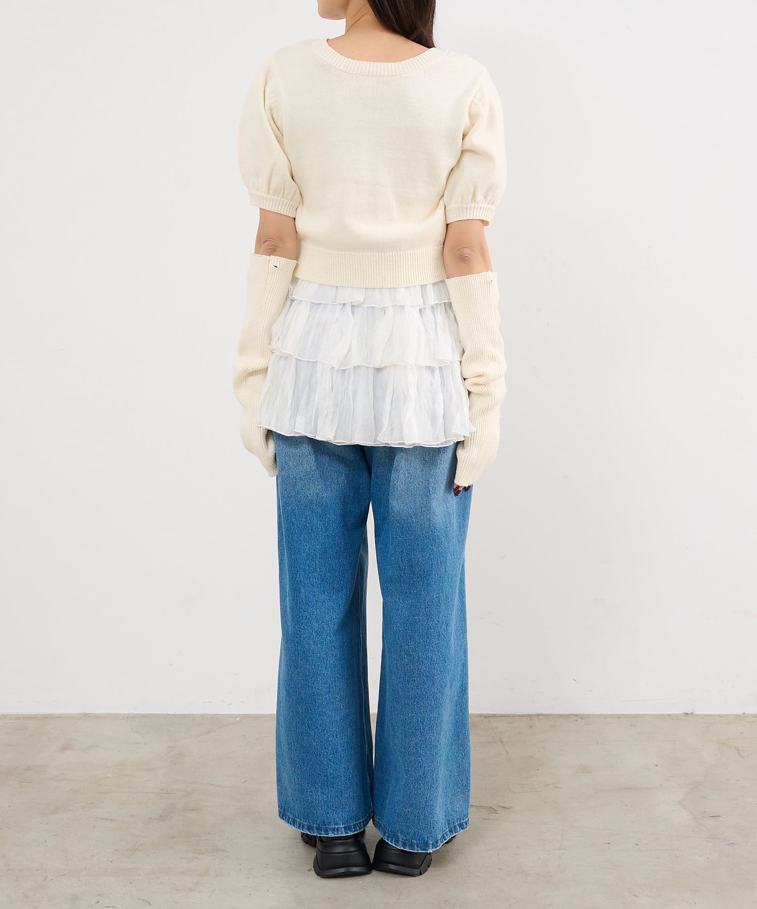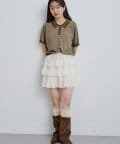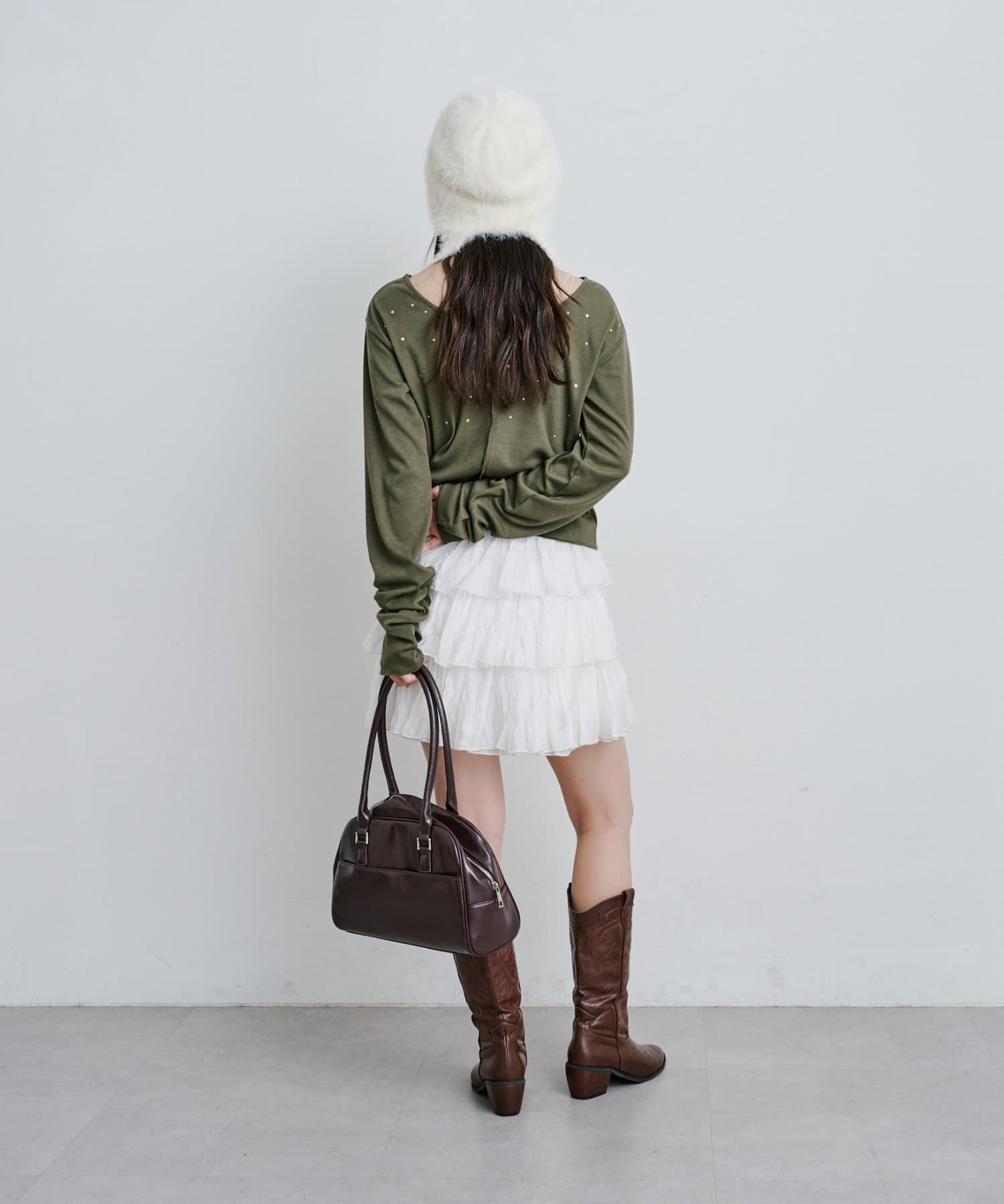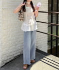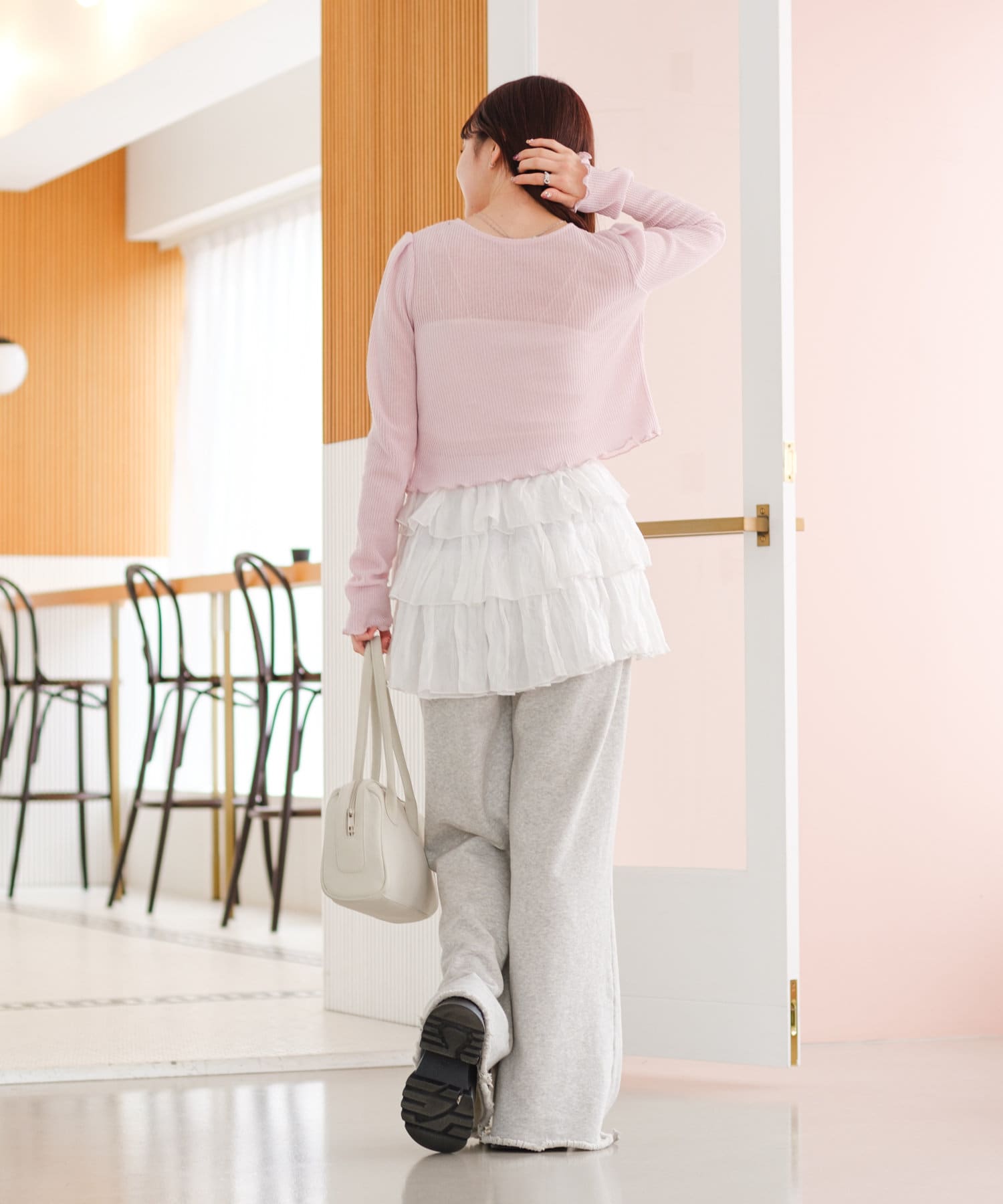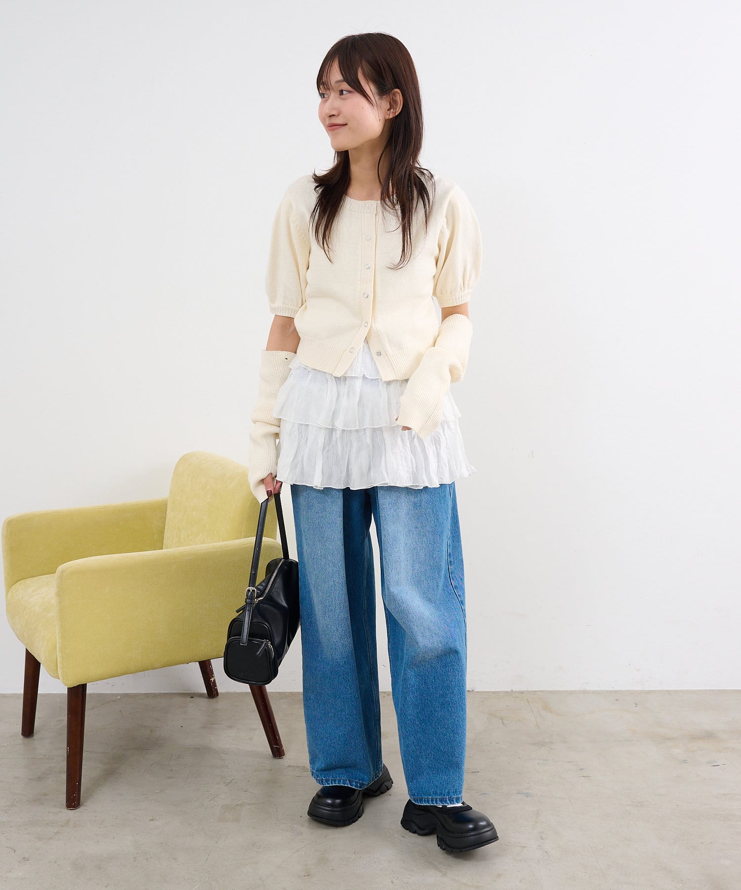 甘めのデザインを活かして、コンパクトなトップスやショート丈のカーディガンと合わせるとバランス良くまとまります。
