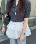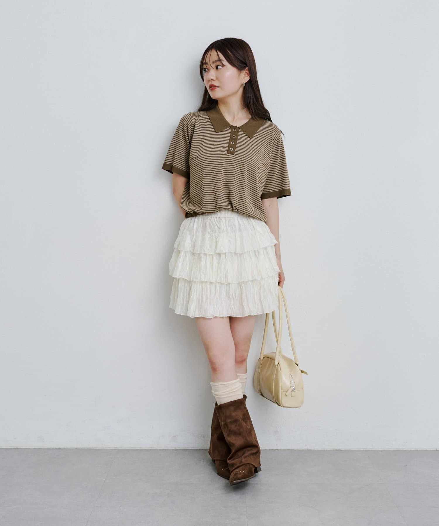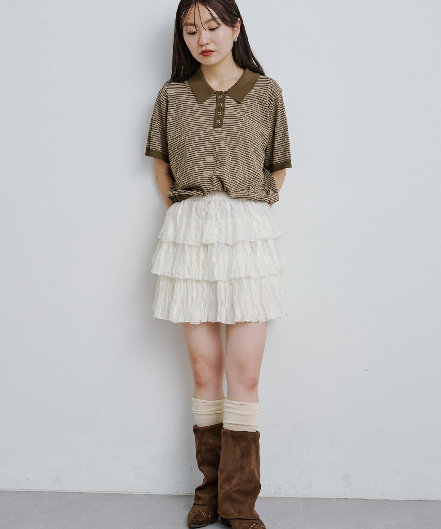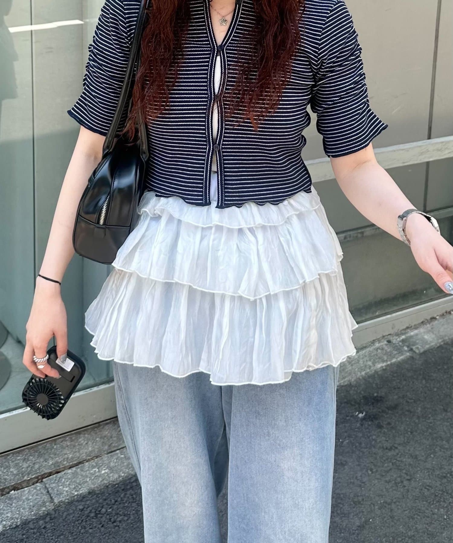 ふんわりとしたティアードデザインが甘さを演出しつつ、カジュアルなワッシャー加工によって程よくラフな印象をプラスしてくれます。