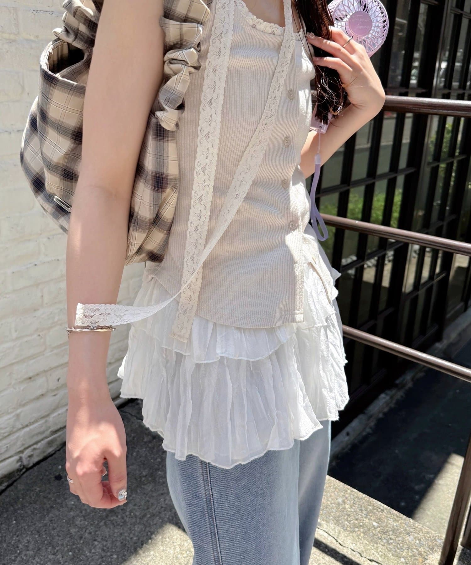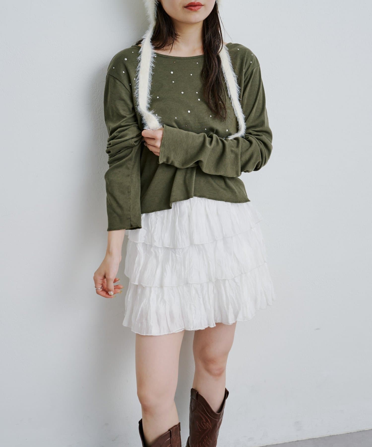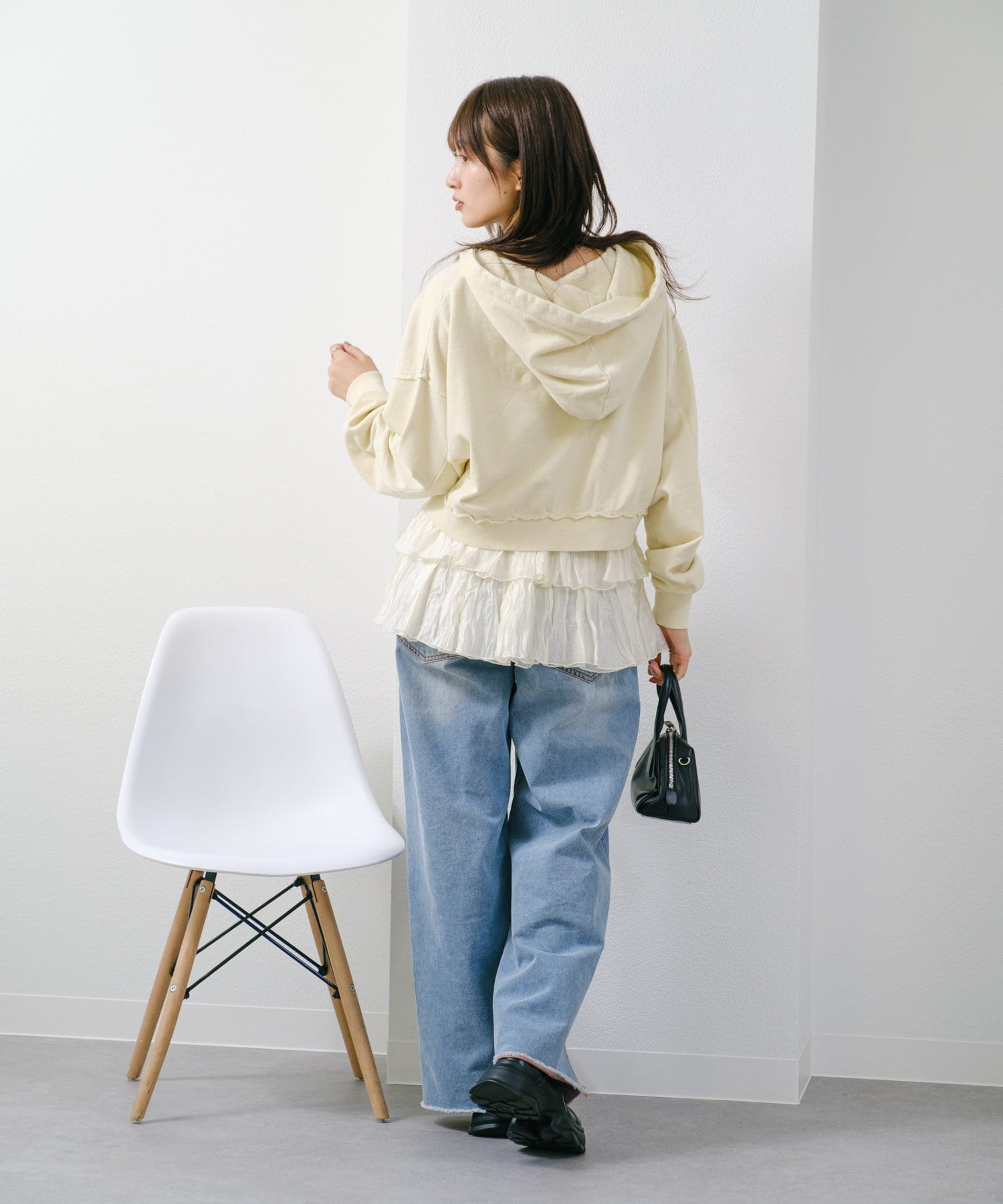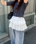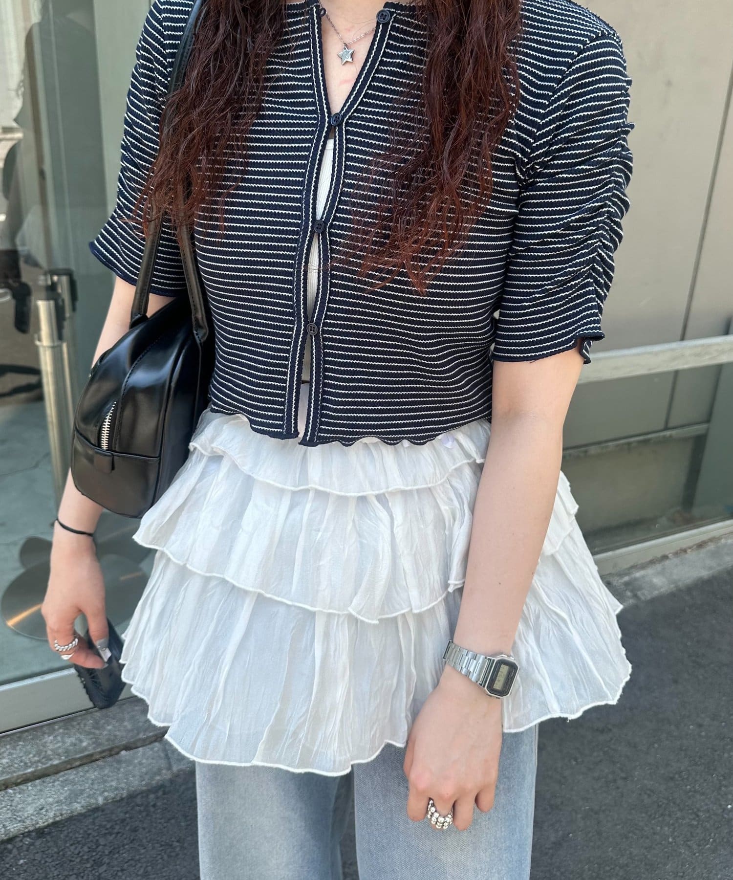 ふんわりとしたティアードデザインが甘さを演出しつつ、カジュアルなワッシャー加工によって程よくラフな印象をプラスしてくれます。