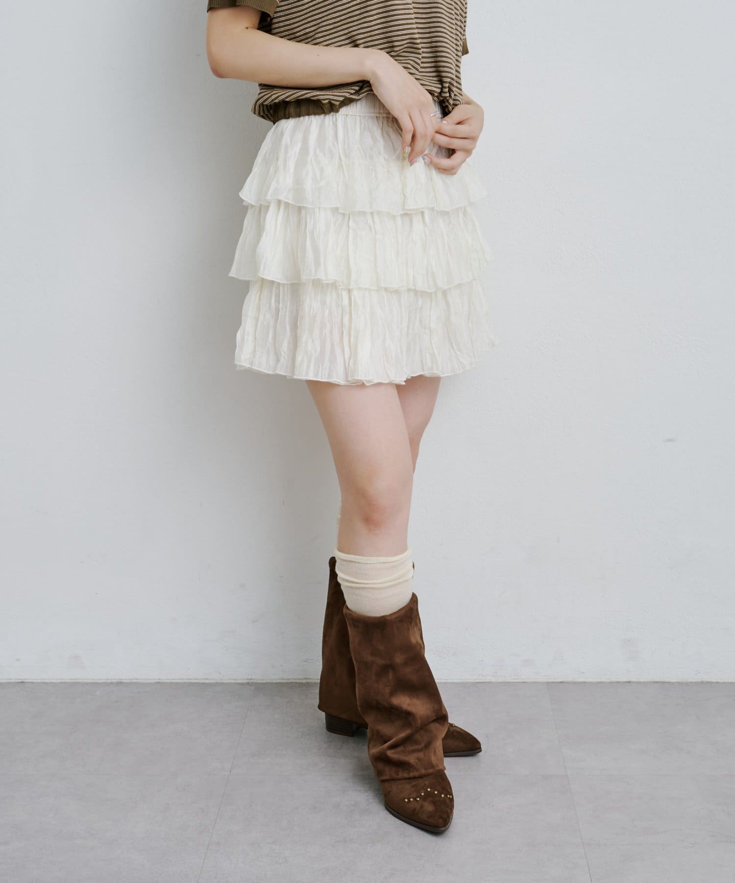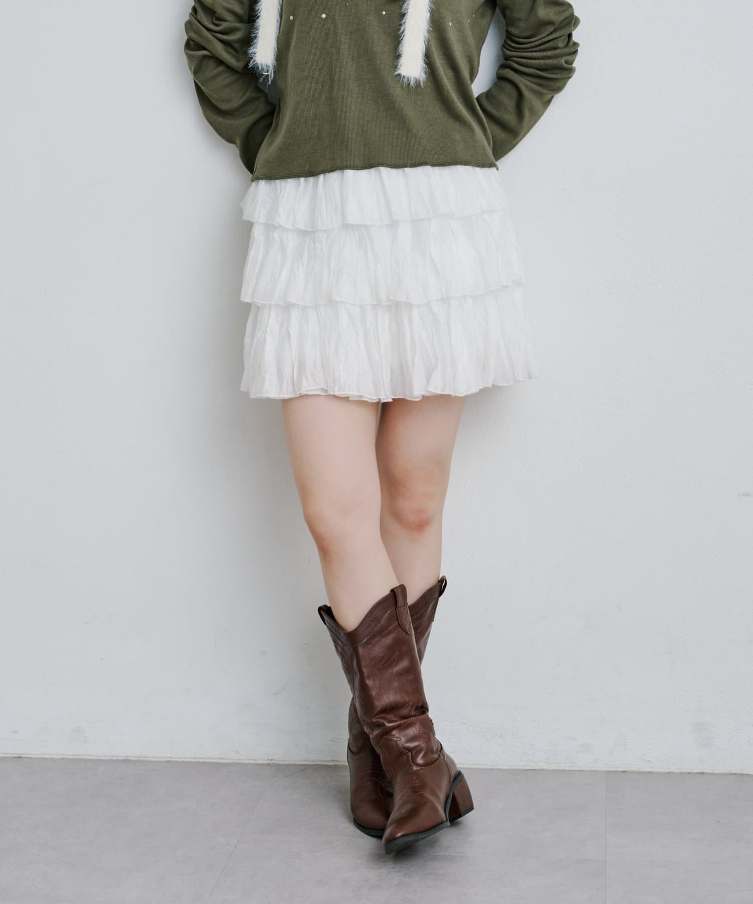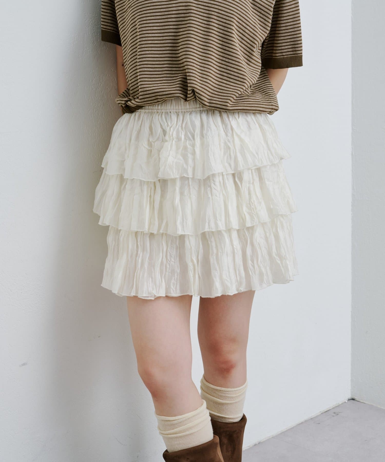 動きのあるシルエットが魅力的なワッシャーティアードミニスカート。