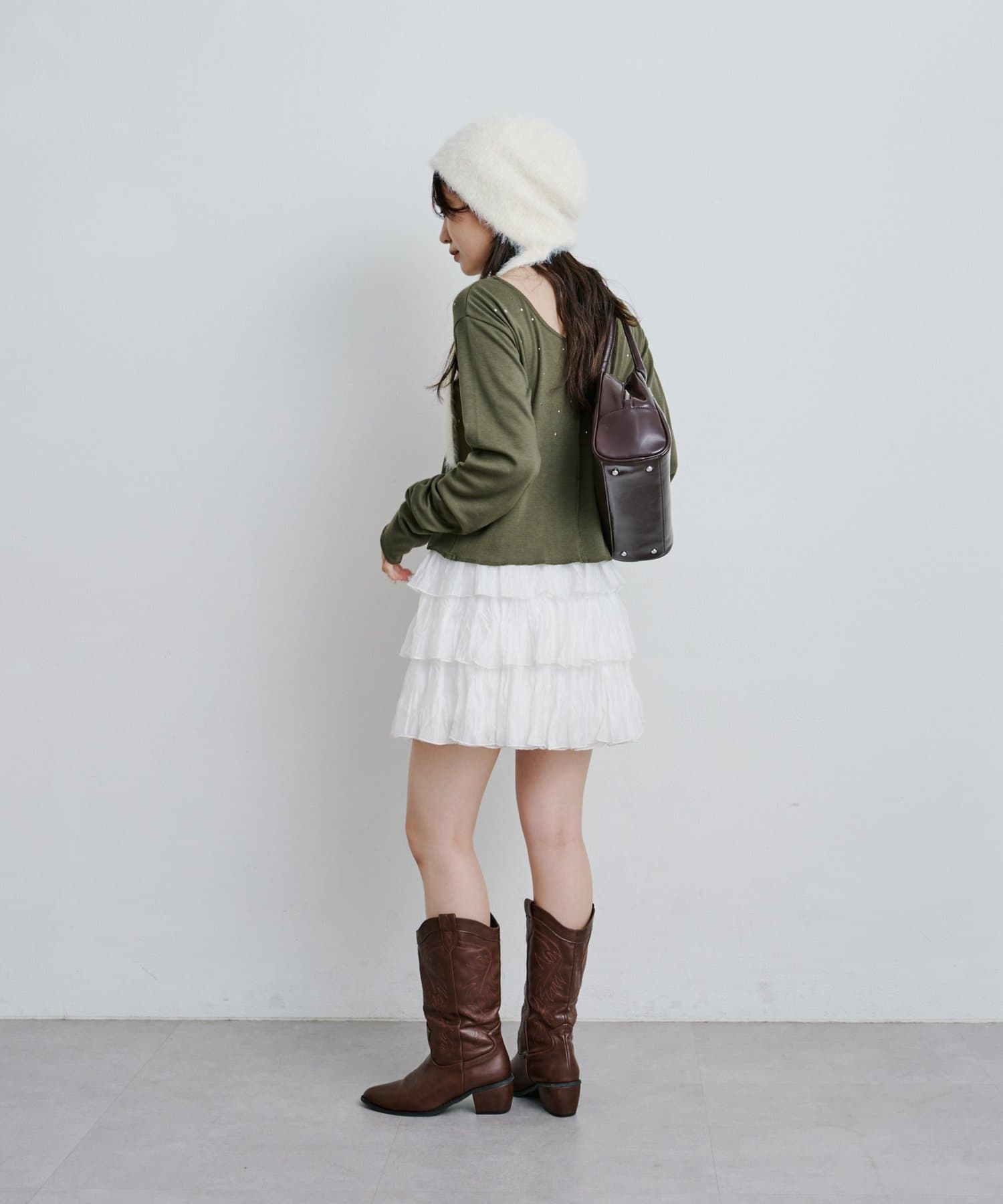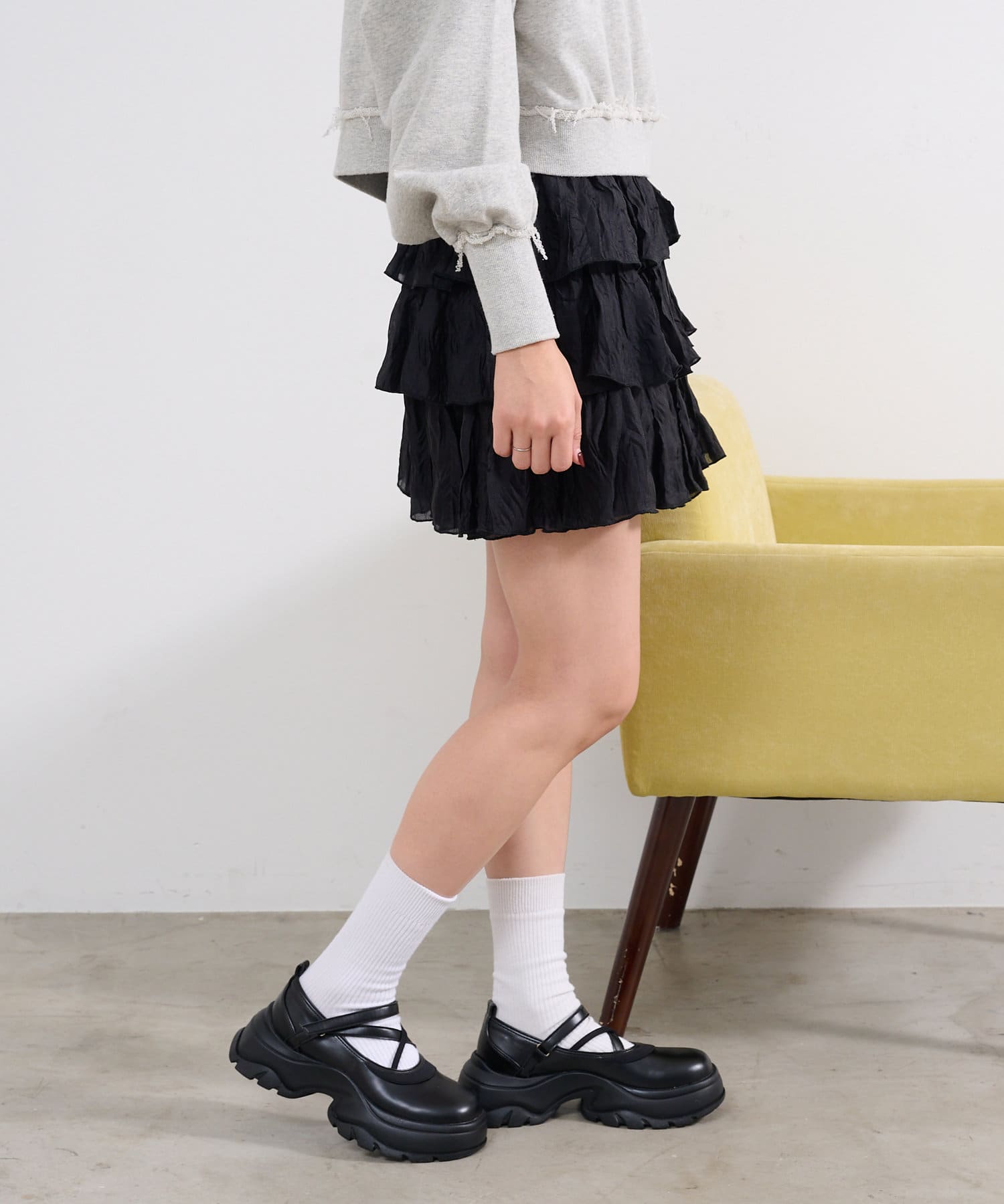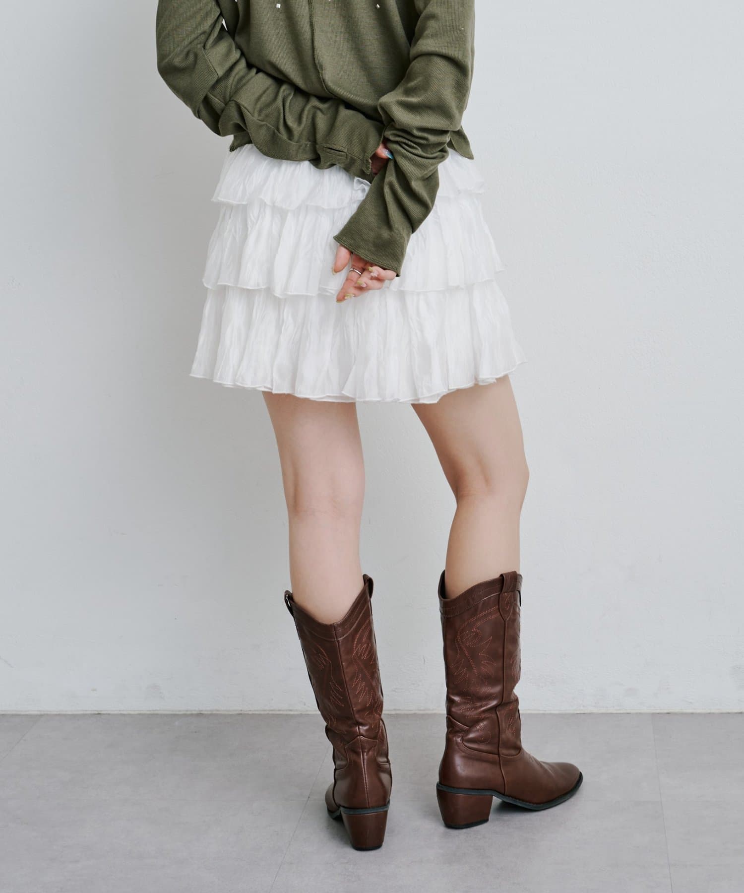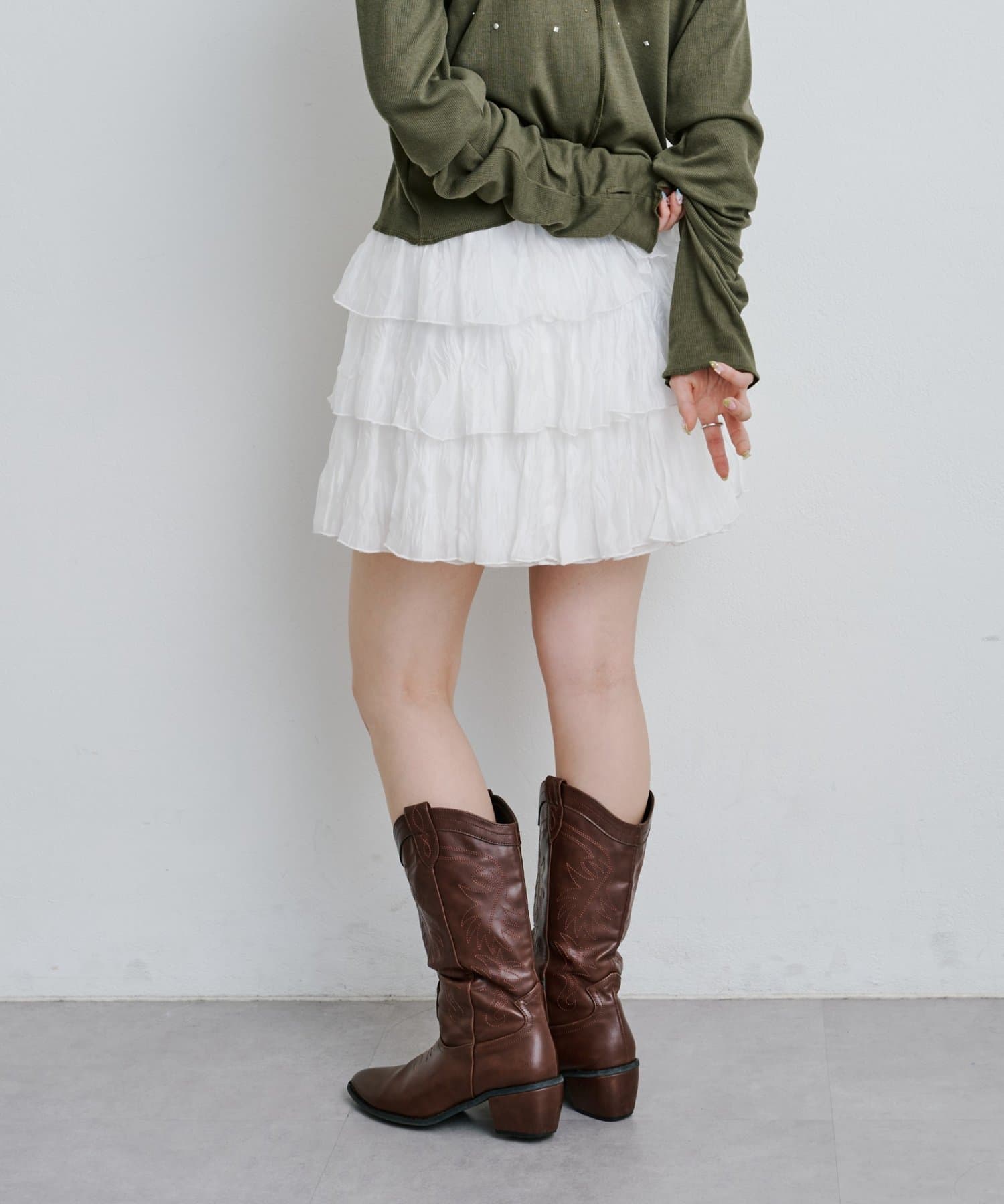 動きのあるシルエットが魅力的なワッシャーティアードミニスカート。