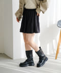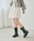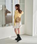 短めのミニ丈で足長効果も期待でき、カジュアルからフェミニンまで幅広いスタイルにマッチする万能なデザインです。