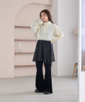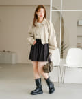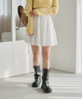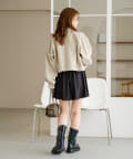 シンプルなニットやスウェットを合わせると、ラフさを演出しつつスカートのディテールを引き立ててくれます。