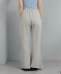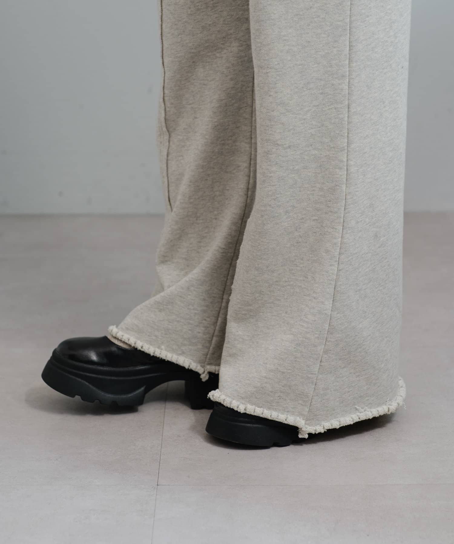 全体的にストレートに落ちるシルエットながら、裾に向かって広がるフレアデザインが特徴で脚長効果が期待できます。