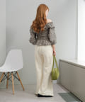 フリルブラウスやフリル付きのカットソーを合わせると、甘さとカジュアルさのバランスがちょうどよくこなれ感のあるフェミニンカジュアルに仕上がります。