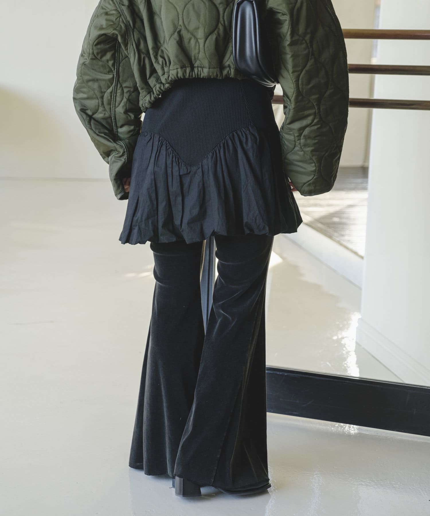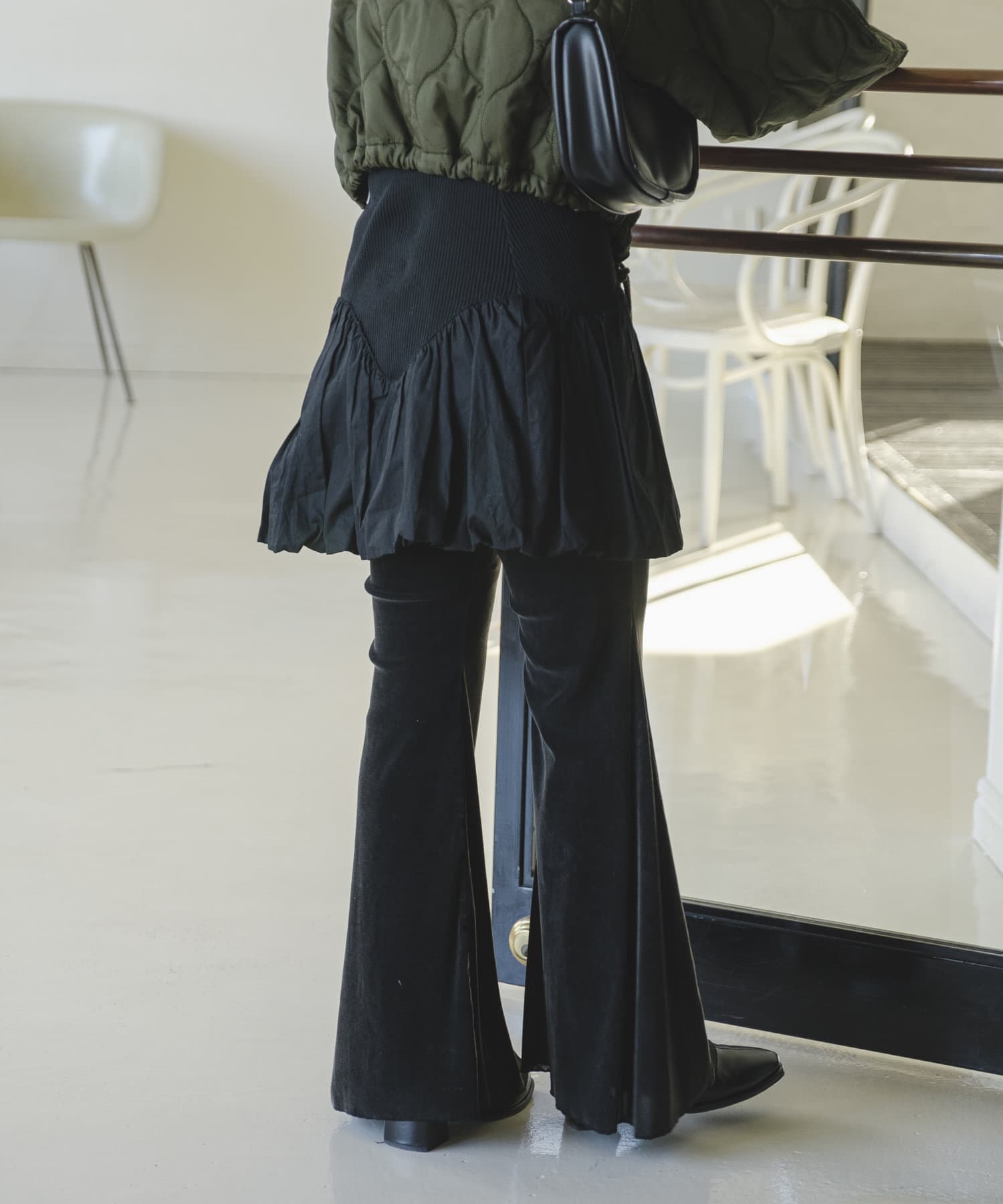 フレアシルエットが魅力のベロアチュール加工レギンス。