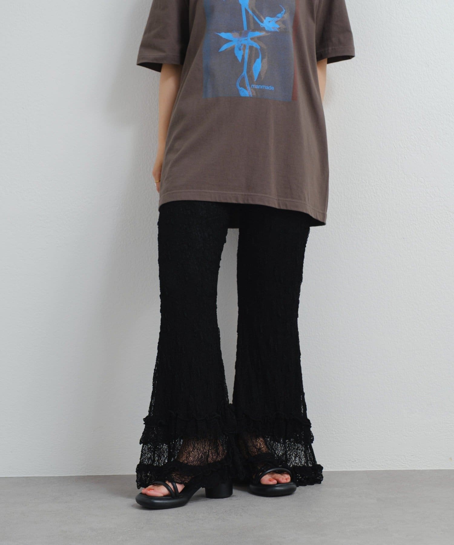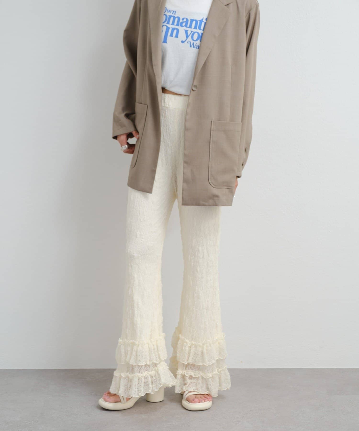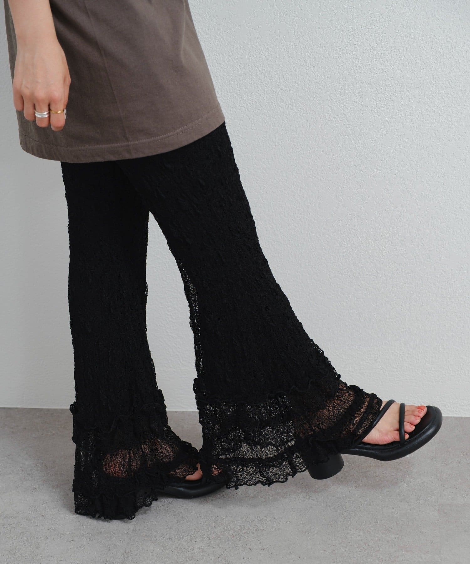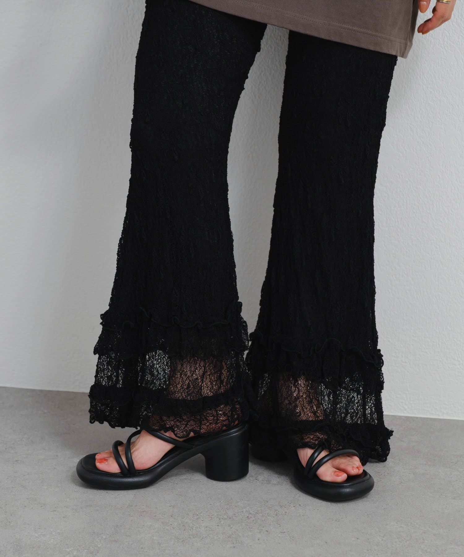 ロマンティックな足元を演出するレースフリルパンツ